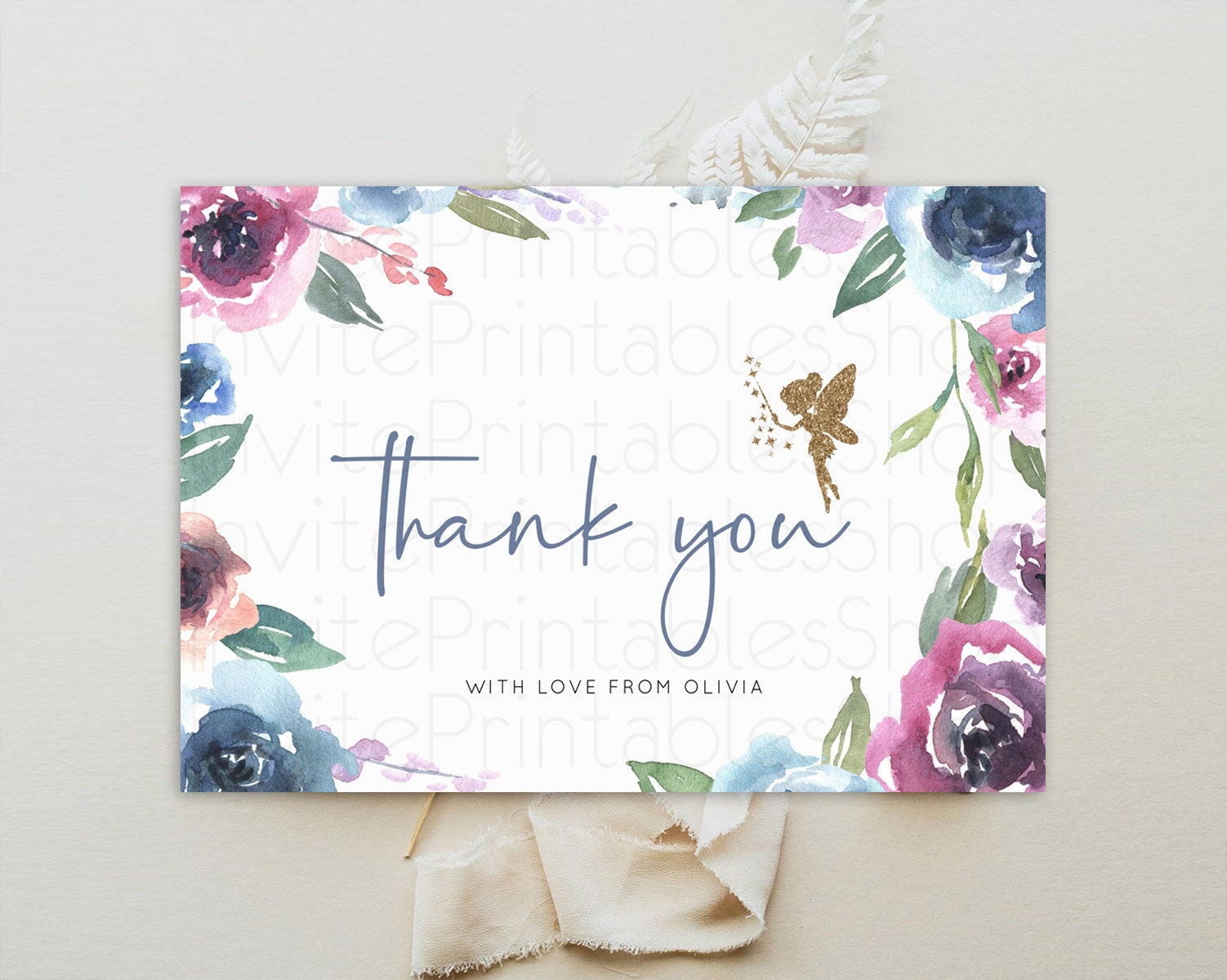 Fairy Thank You Fairy Thank You Card Enchanted Garden Pastel Butterfly Birthday Thank You Floral Secret Garden Teacher Thank You D10188