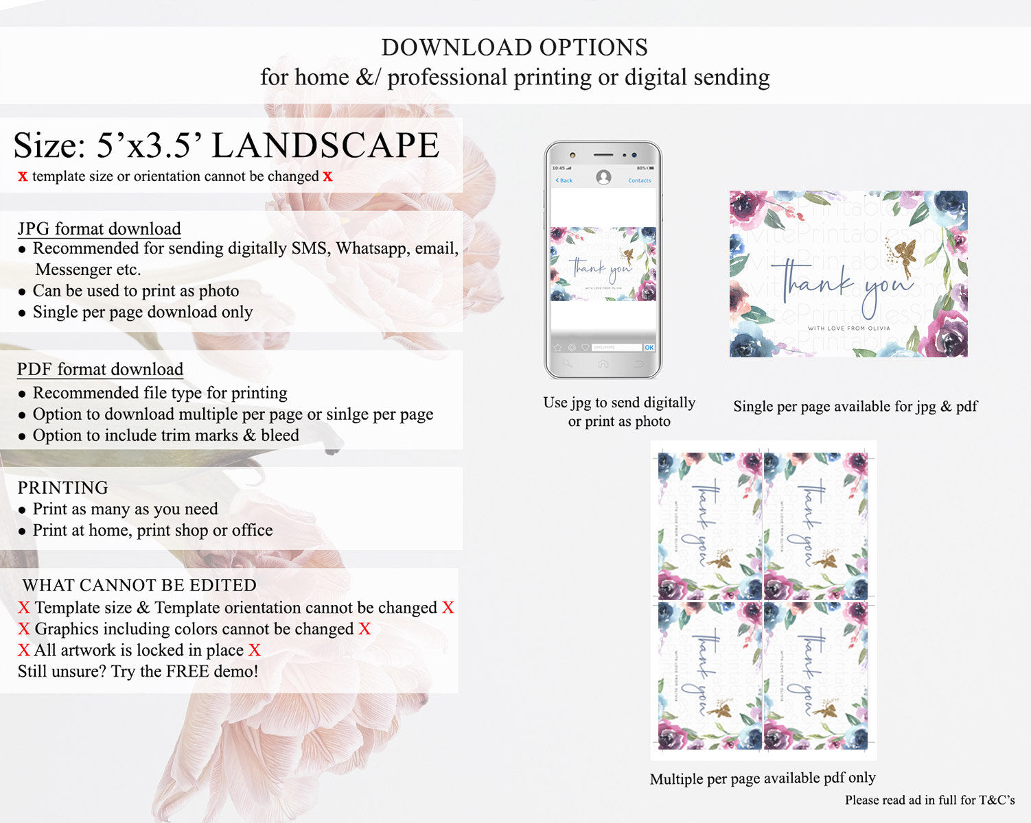 • Template size & orientation cannot be changed. Please use the demo link to confirm this product suits your needs.