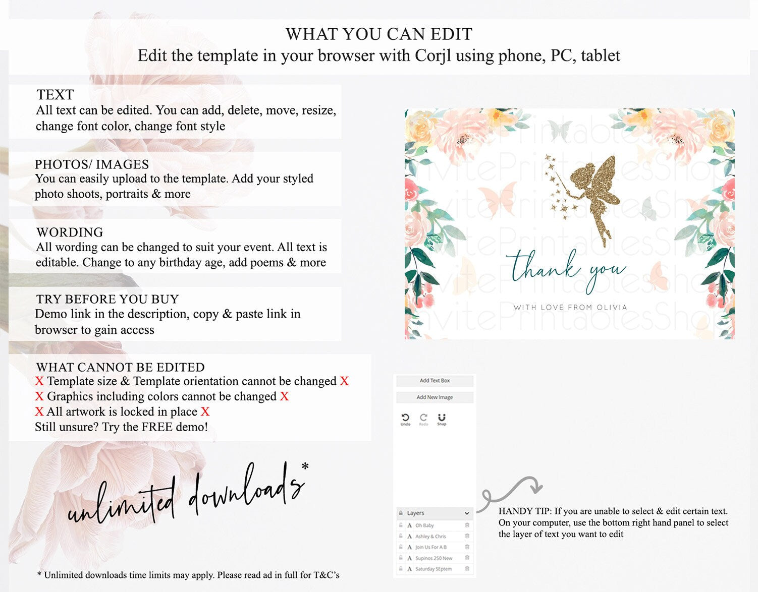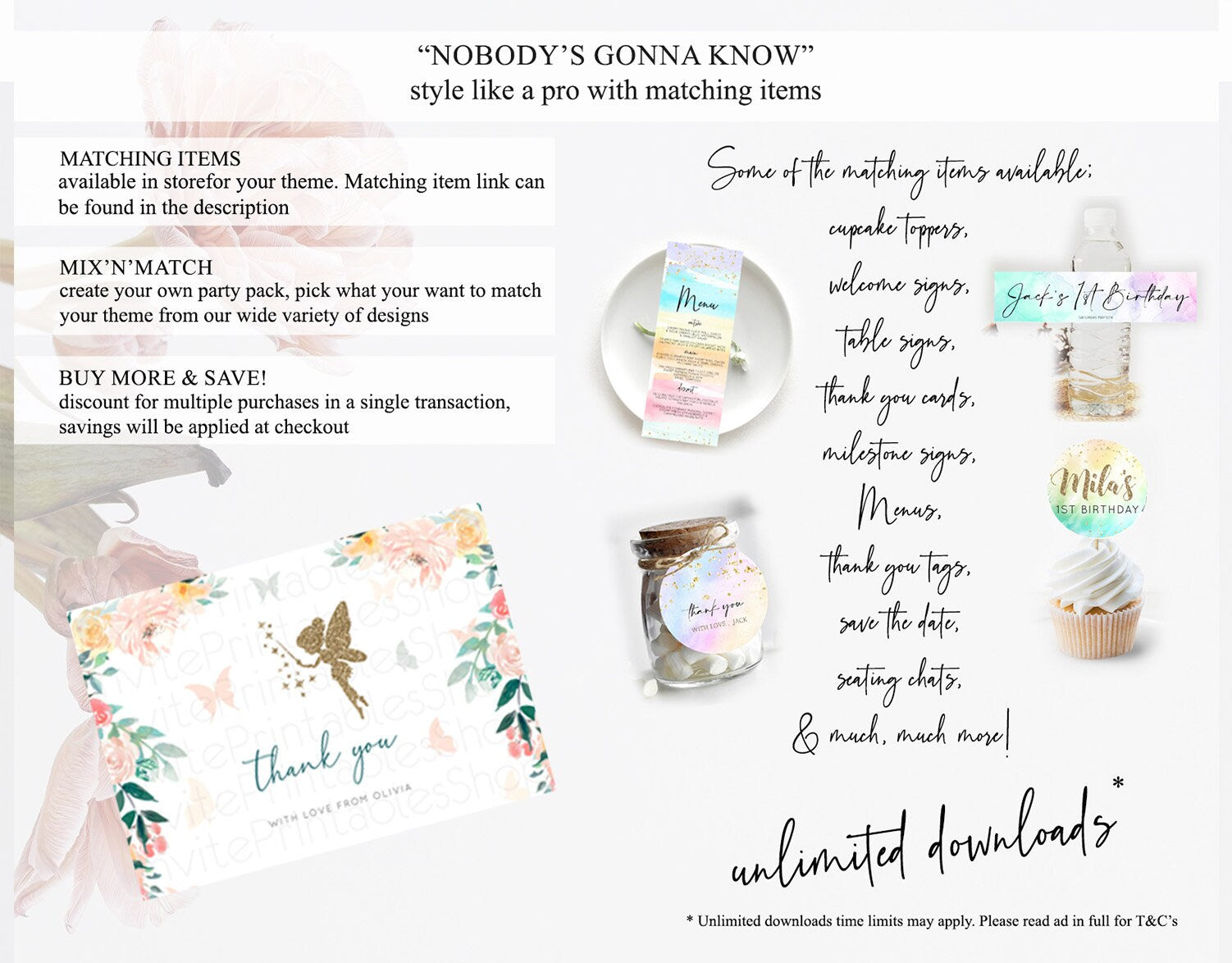 Fairy Thank You Fairy Thank You Card Enchanted Garden Pastel Butterfly Birthday Thank You Floral Secret Garden Teacher Thank You D10239