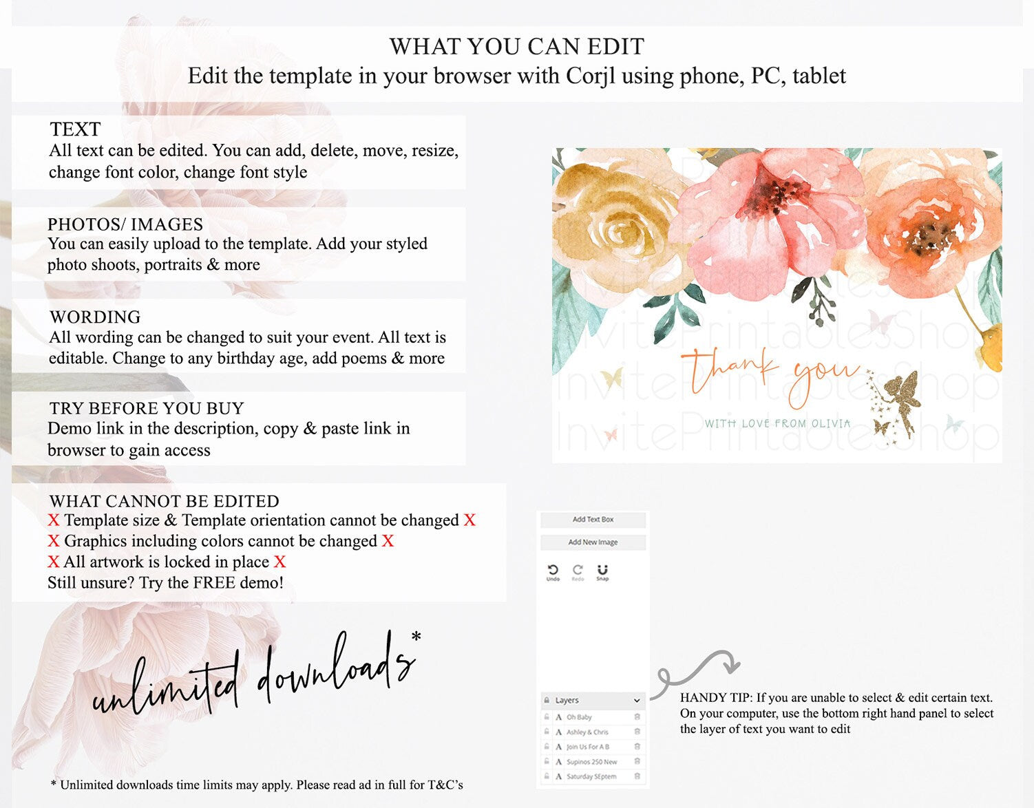 Fairy Thank You Fairy Thank You Card Enchanted Garden Pastel Butterfly Birthday Thank You Floral Secret Garden Teacher Thank You D10346