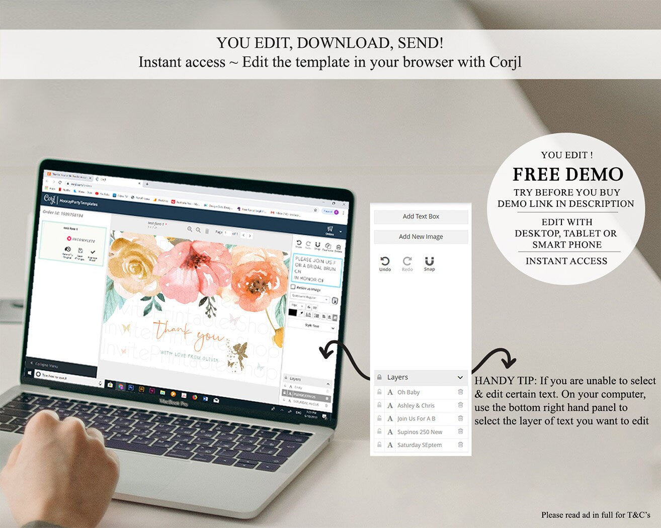 • After purchase, Corjl emails your editing link. Allow up to 15 minutes for delivery.
