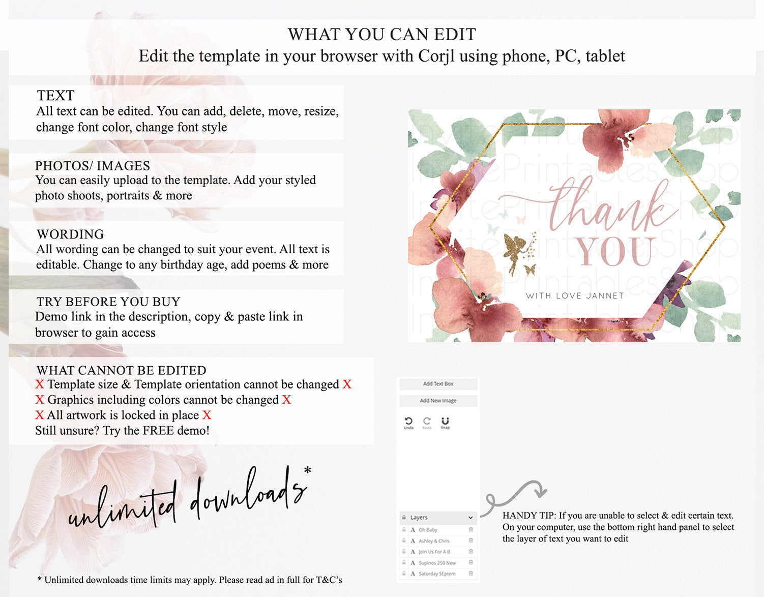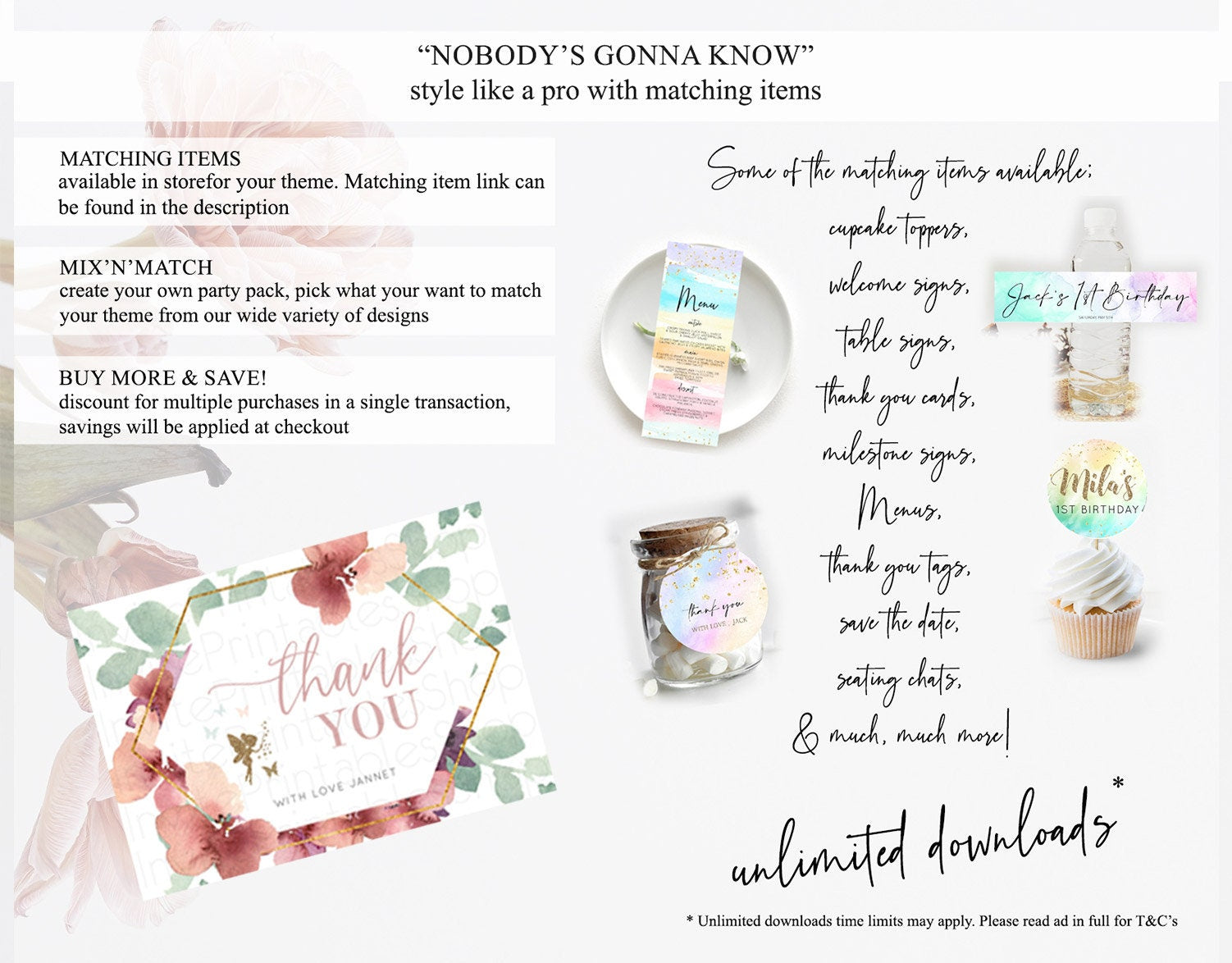 Fairy Thank You Fairy Thank You Card Enchanted Garden Pastel Butterfly Birthday Thank You Floral Secret Garden Teacher Thank You D10460