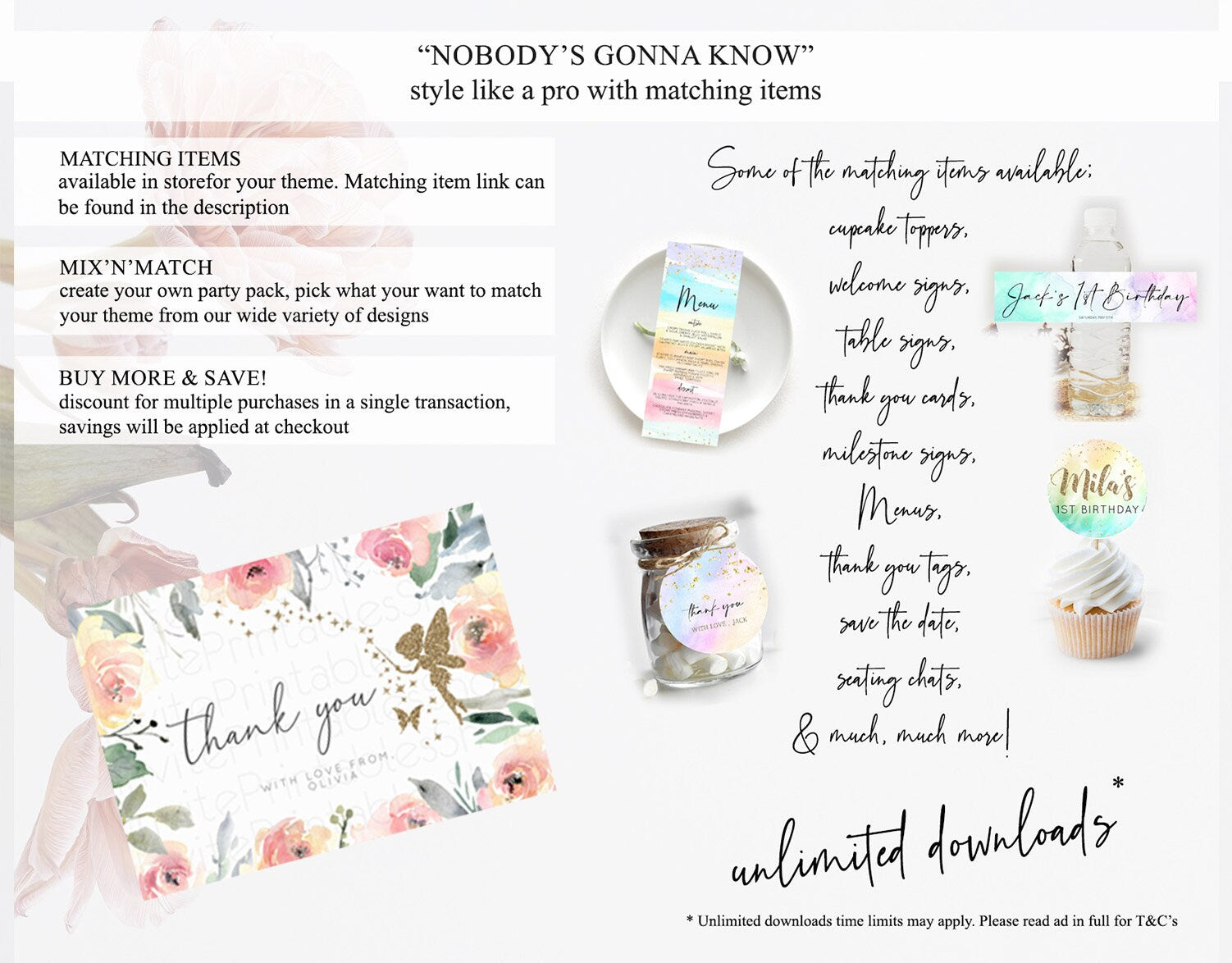 Fairy Thank You Fairy Thank You Card Enchanted Garden Pastel Butterfly Birthday Thank You Floral Secret Garden Teacher Thank You D10779