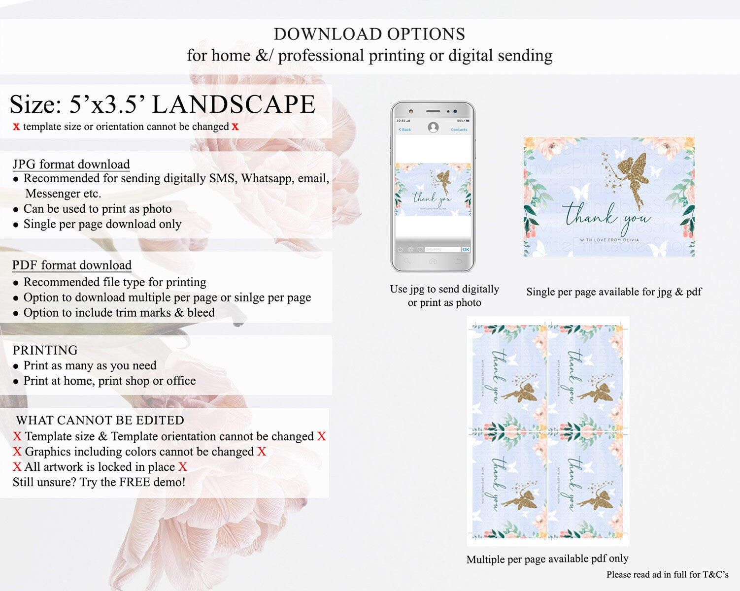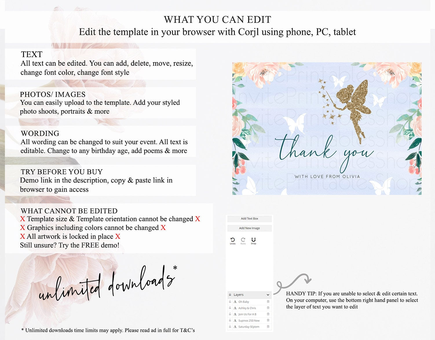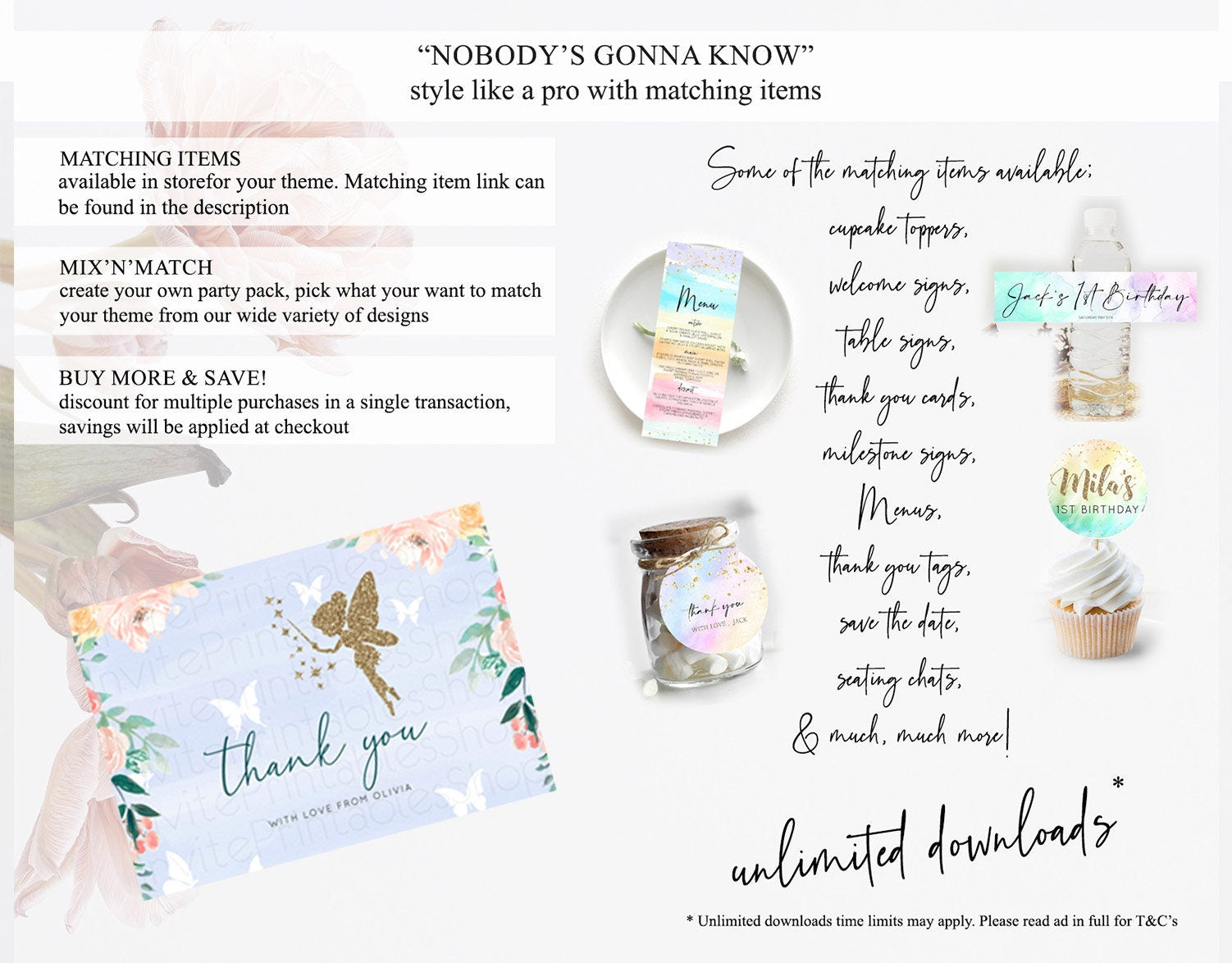 Fairy Thank You Fairy Thank You Card Enchanted Garden Pastel Butterfly Birthday Thank You Floral Secret Garden Teacher Thank You D10794