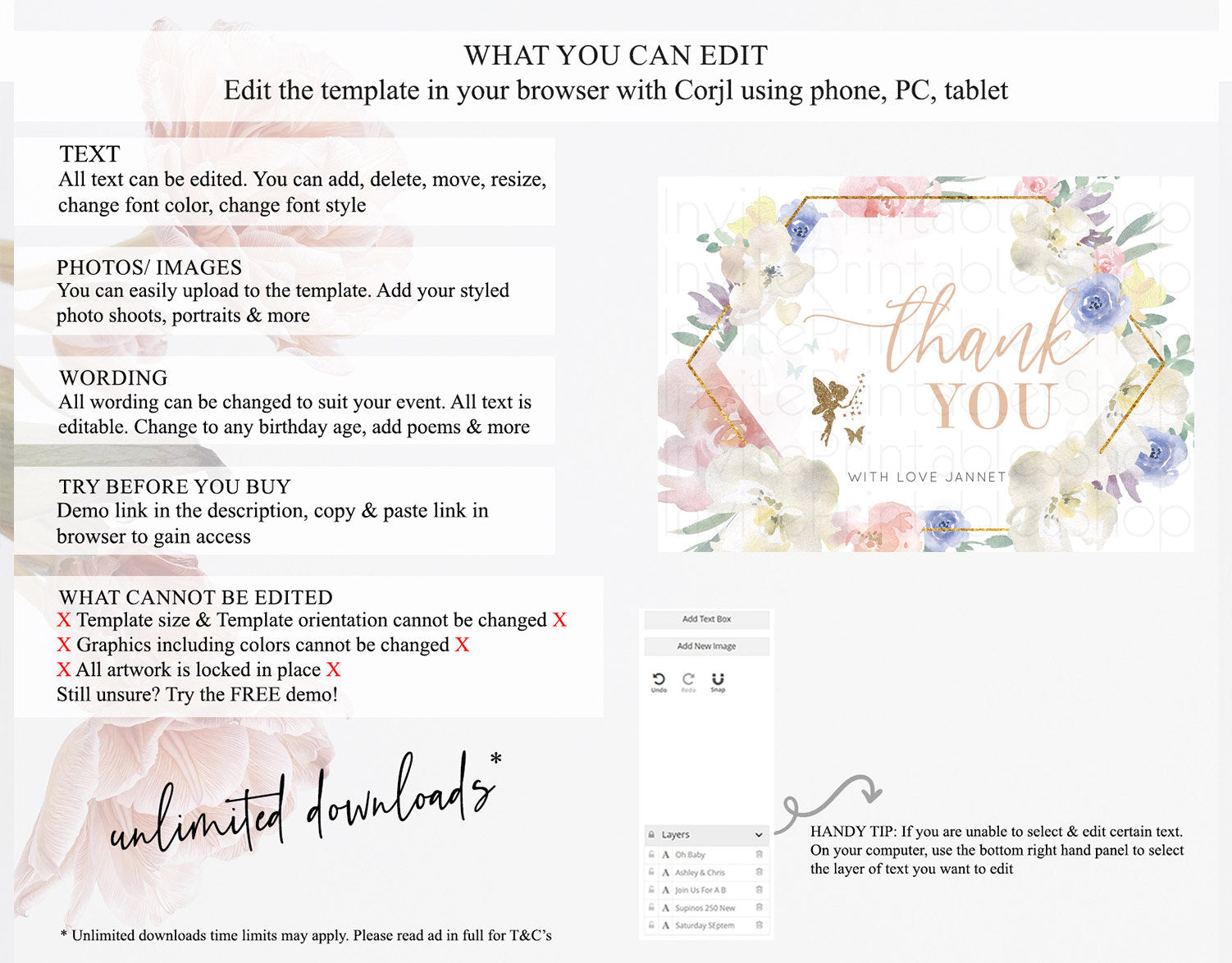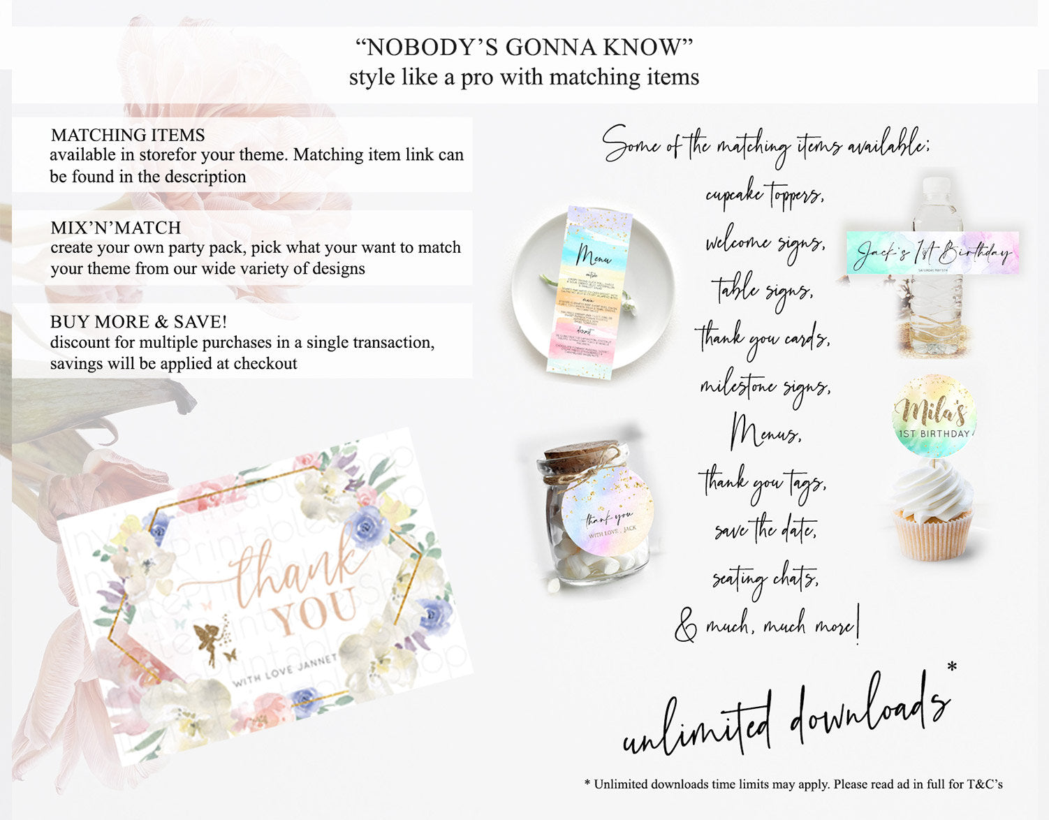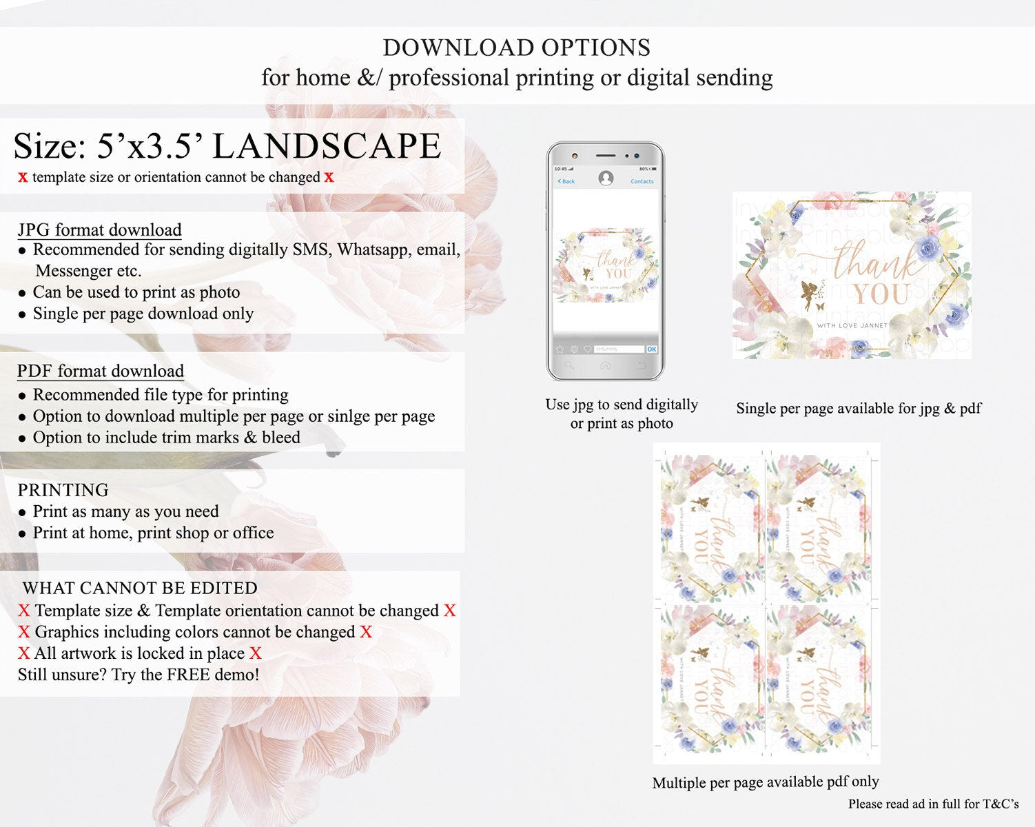 Fairy Thank You Fairy Thank You Card Enchanted Garden Pastel Butterfly Birthday Thank You Floral Secret Garden Teacher Thank You D10829