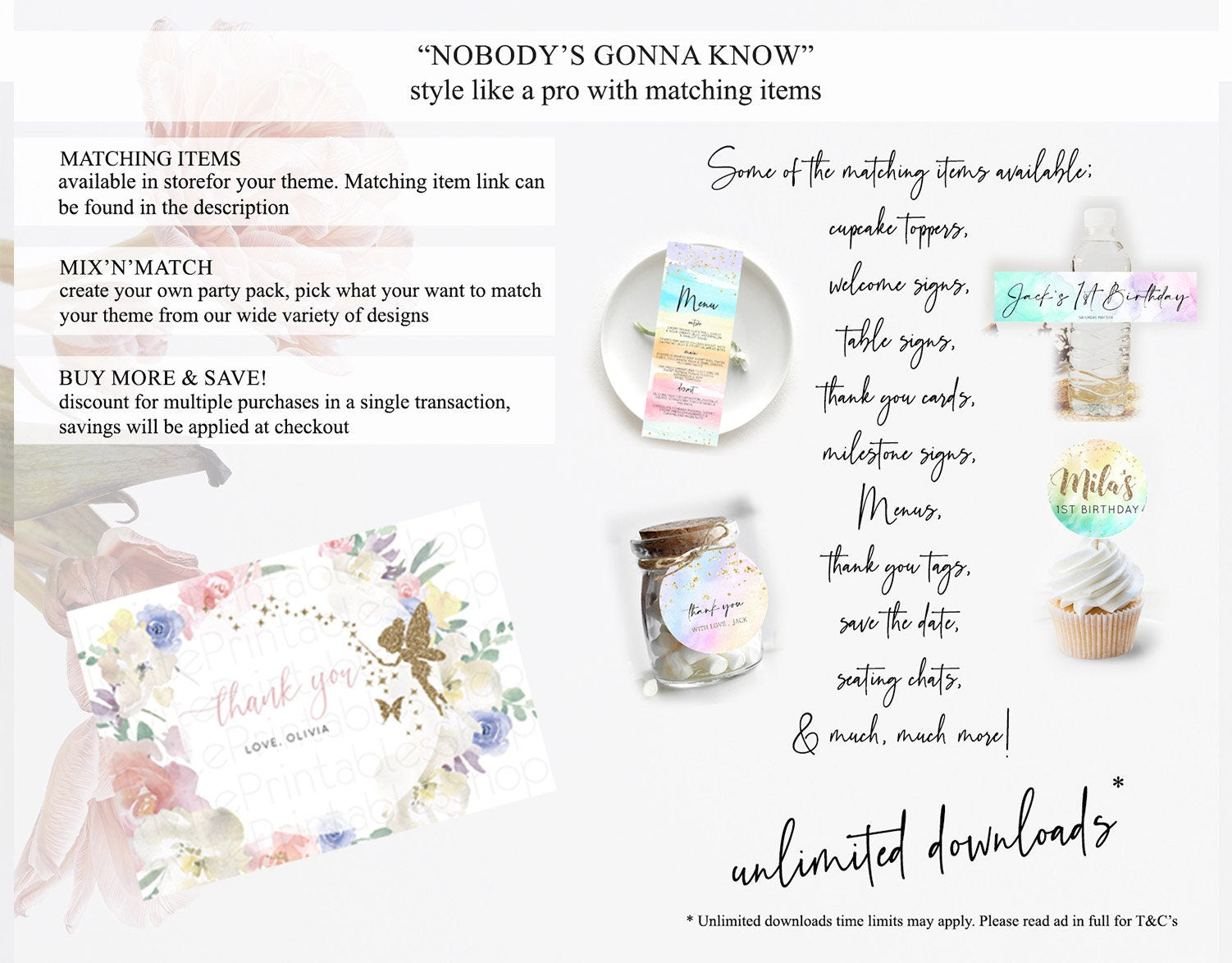 Fairy Thank You Fairy Thank You Card Enchanted Garden Pastel Butterfly Birthday Thank You Floral Secret Garden Teacher Thank You D10852