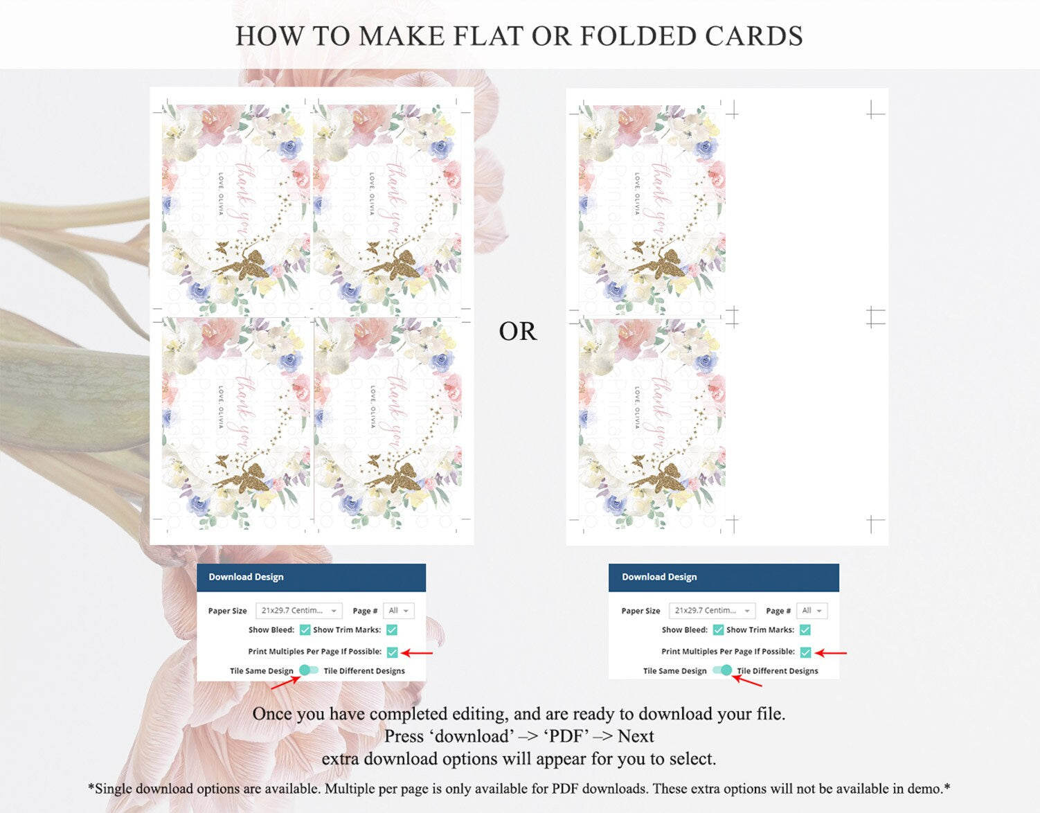 • Custom changes to artwork are not provided on existing templates.
