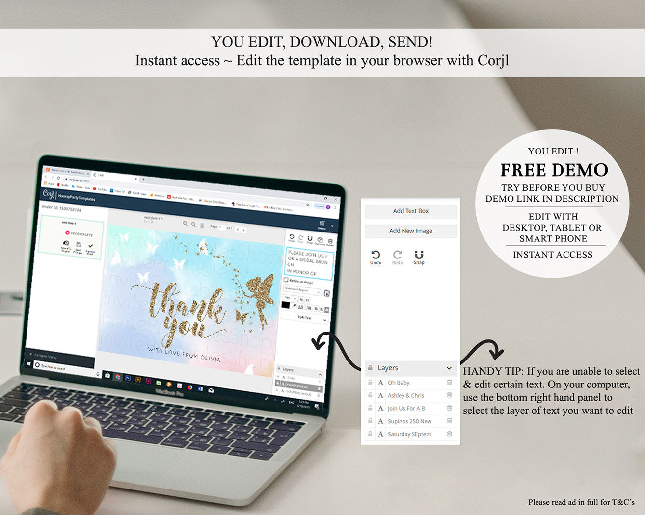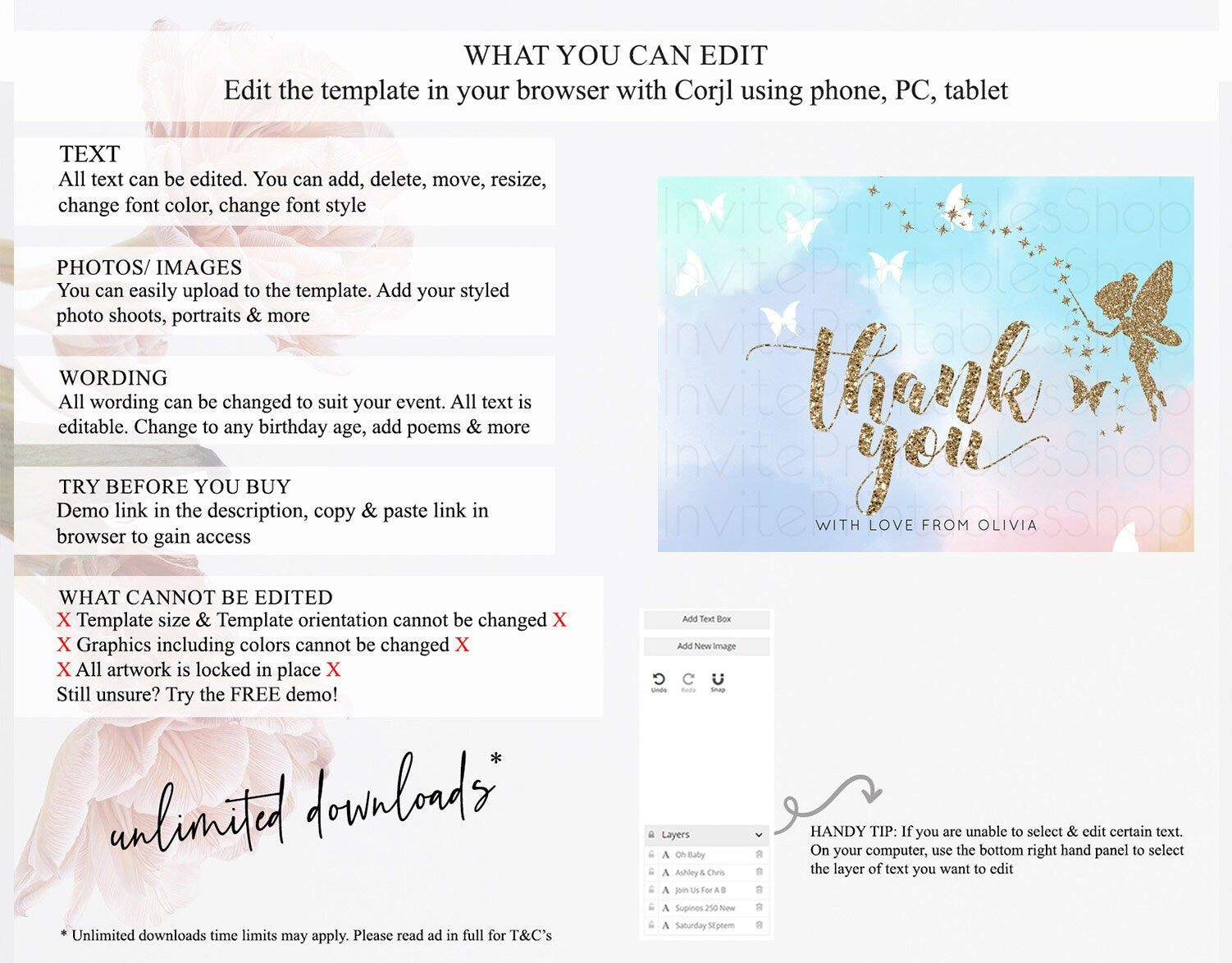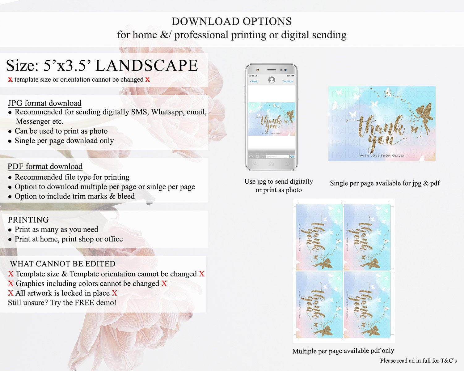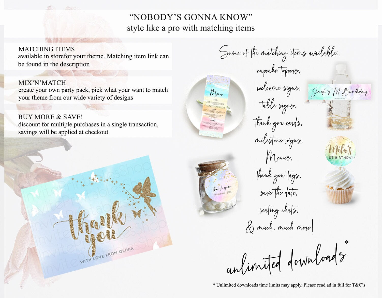 Fairy Thank You Fairy Thank You Card Enchanted Garden Pastel Butterfly Birthday Thank You Floral Secret Garden Teacher Thank You D10894