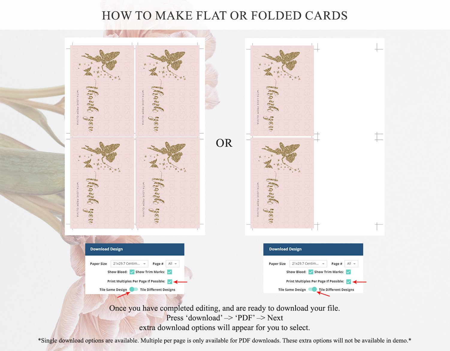 • Custom changes to artwork are not provided on existing templates.