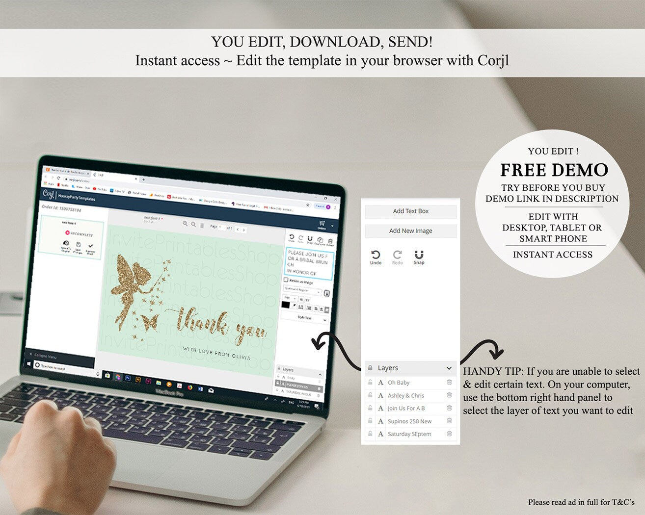 • After purchase, Corjl emails your editing link. Allow up to 15 minutes for delivery.