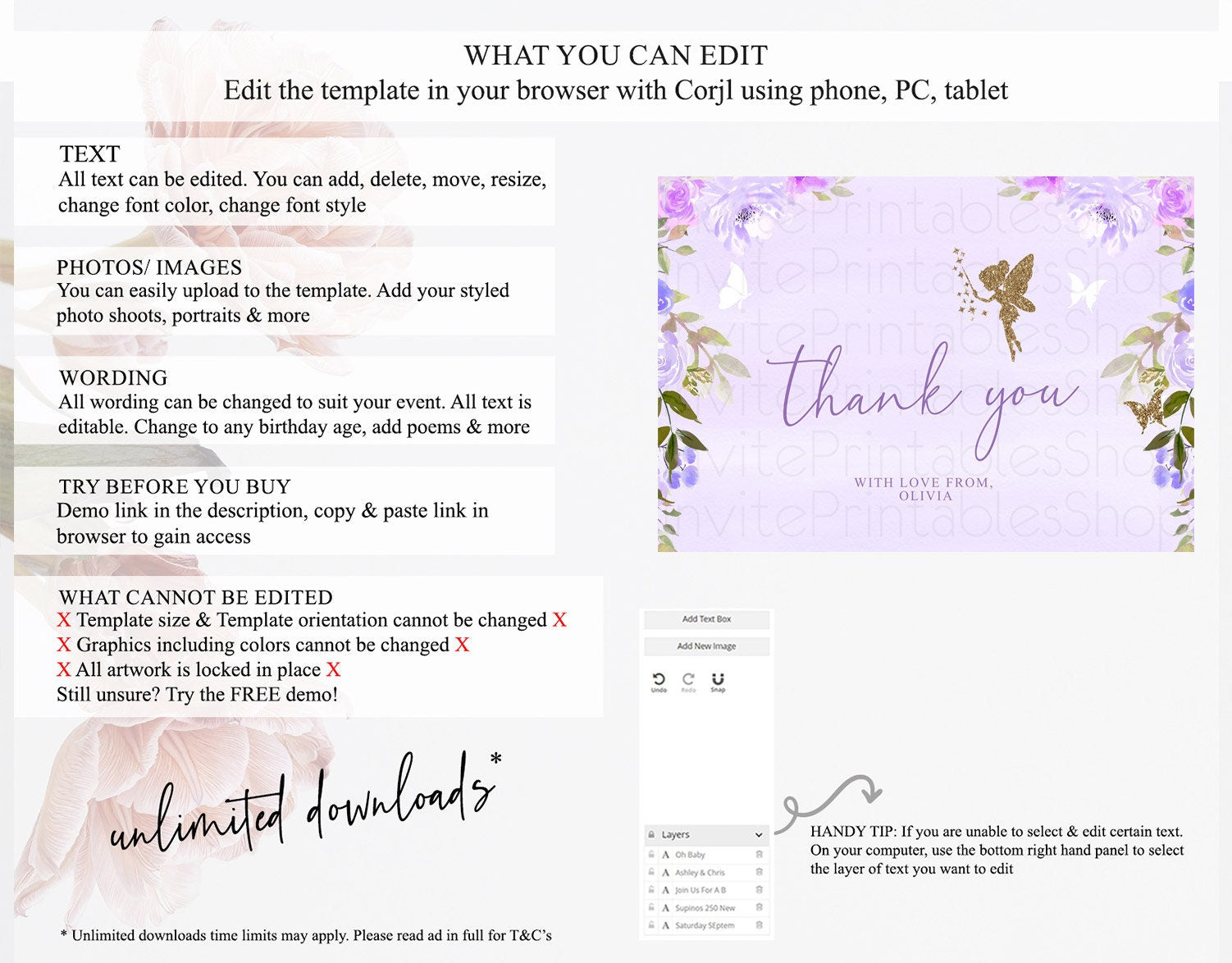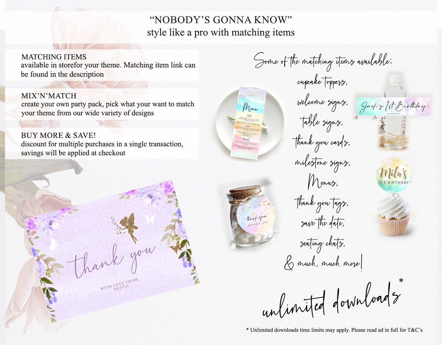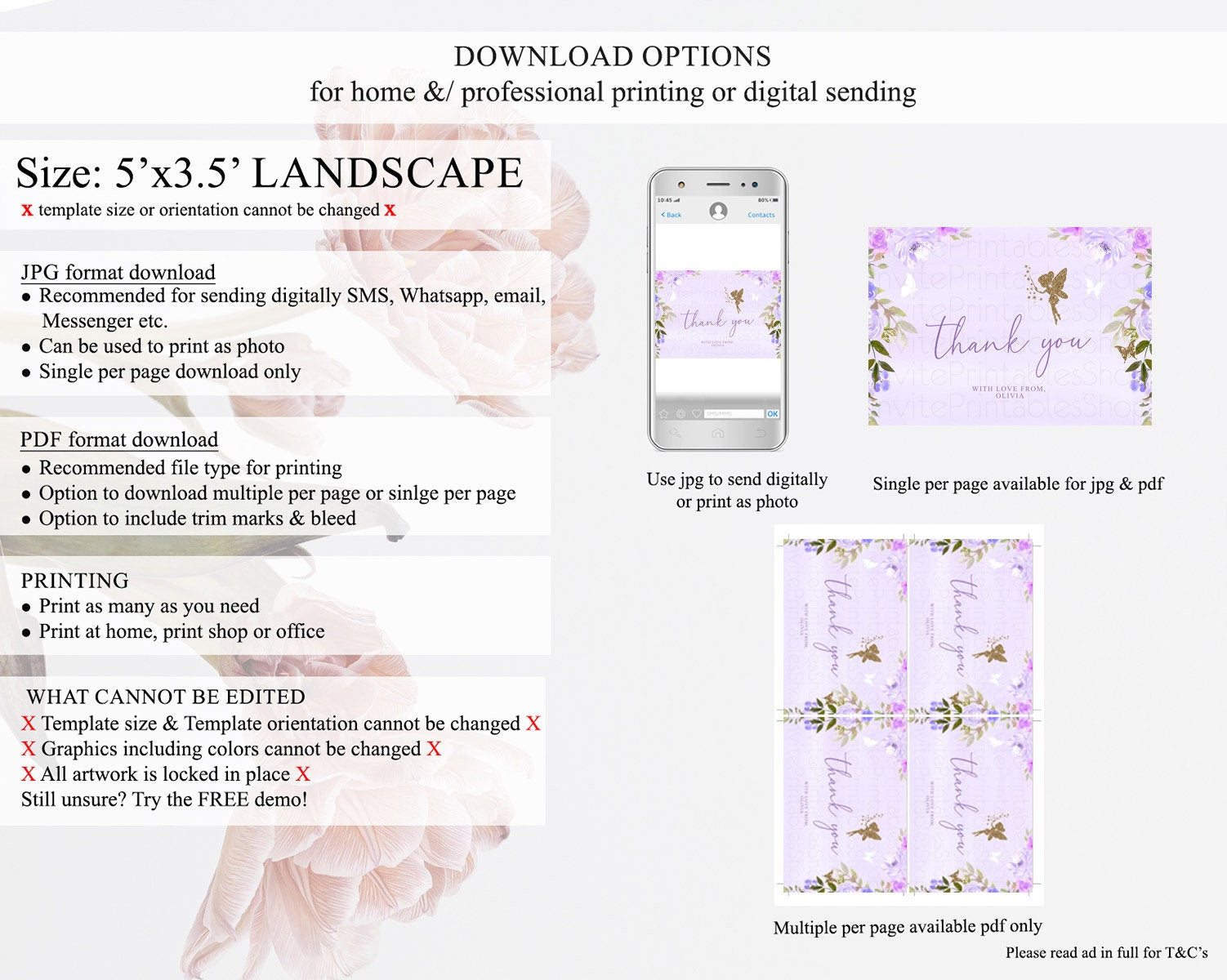 Fairy Thank You Fairy Thank You Card Enchanted Garden Pastel Butterfly Birthday Thank You Floral Secret Garden Teacher Thank You D10910