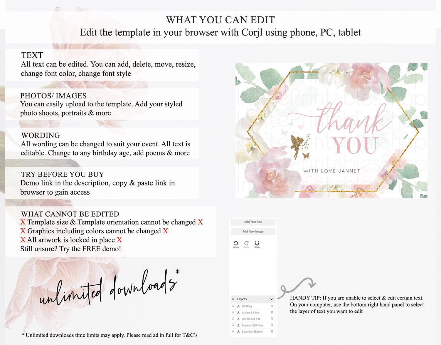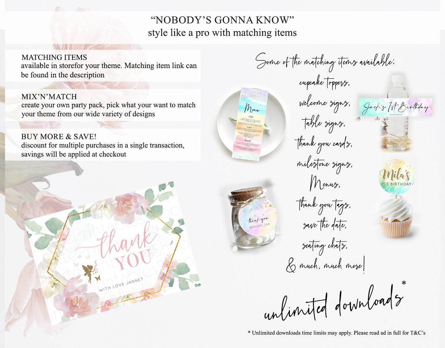 Fairy Thank You Fairy Thank You Card Enchanted Garden Pastel Butterfly Birthday Thank You Floral Secret Garden Teacher Thank You D10965