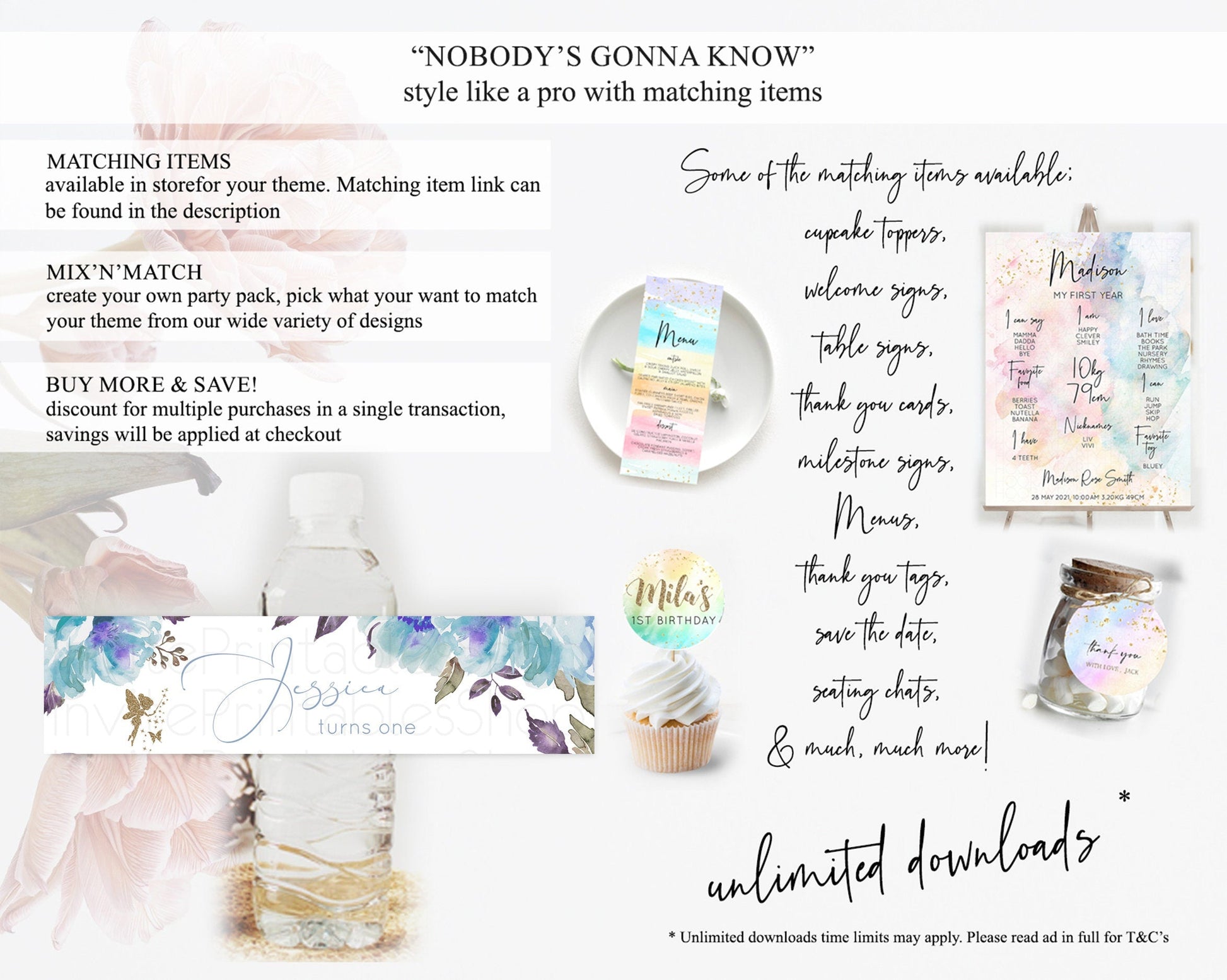 Fairy Water Label Enchanted Garden Pastel Floral Butterfly Party Decor Secret Garden Birthday Baptism Baby Shower Bridal Shower D10728