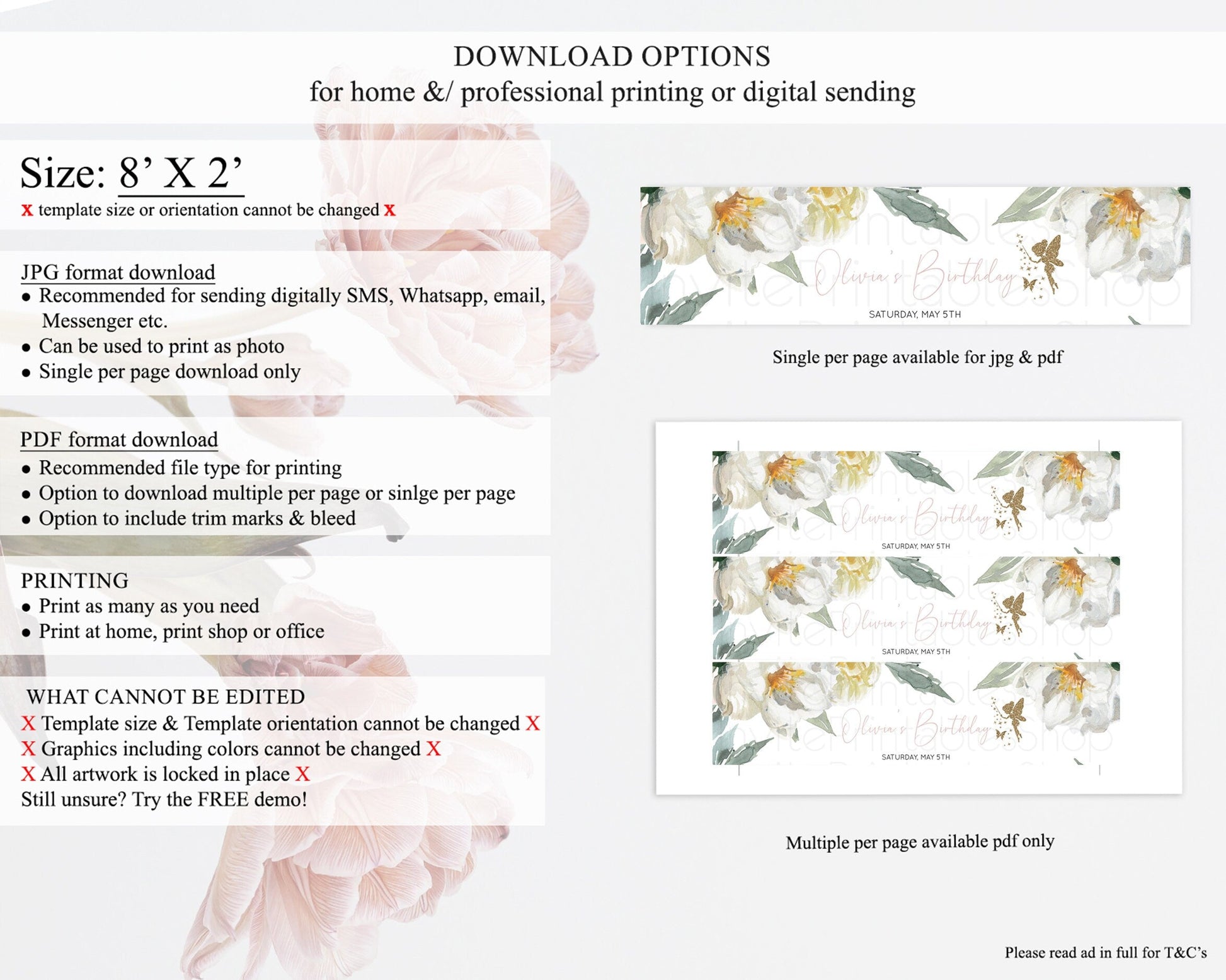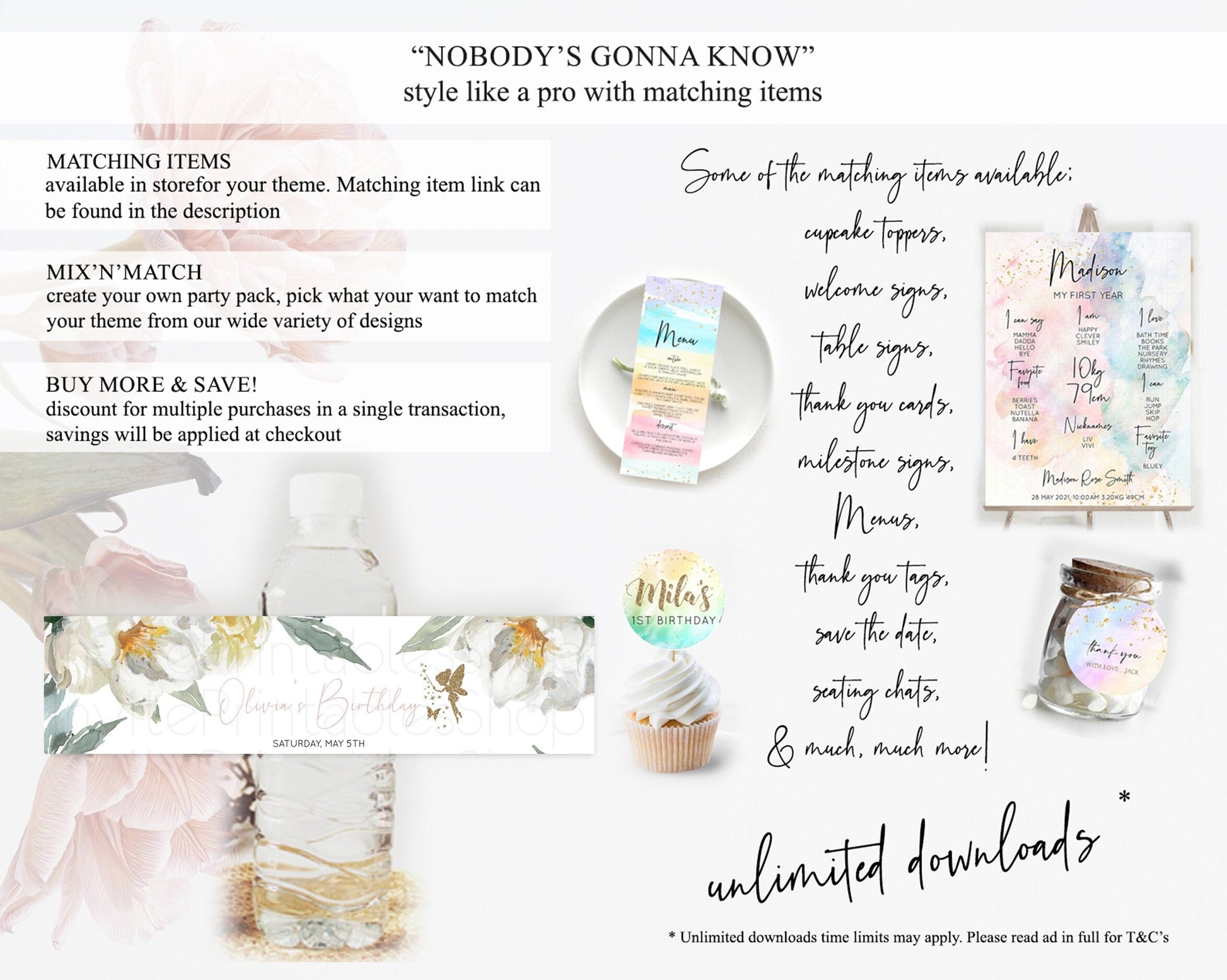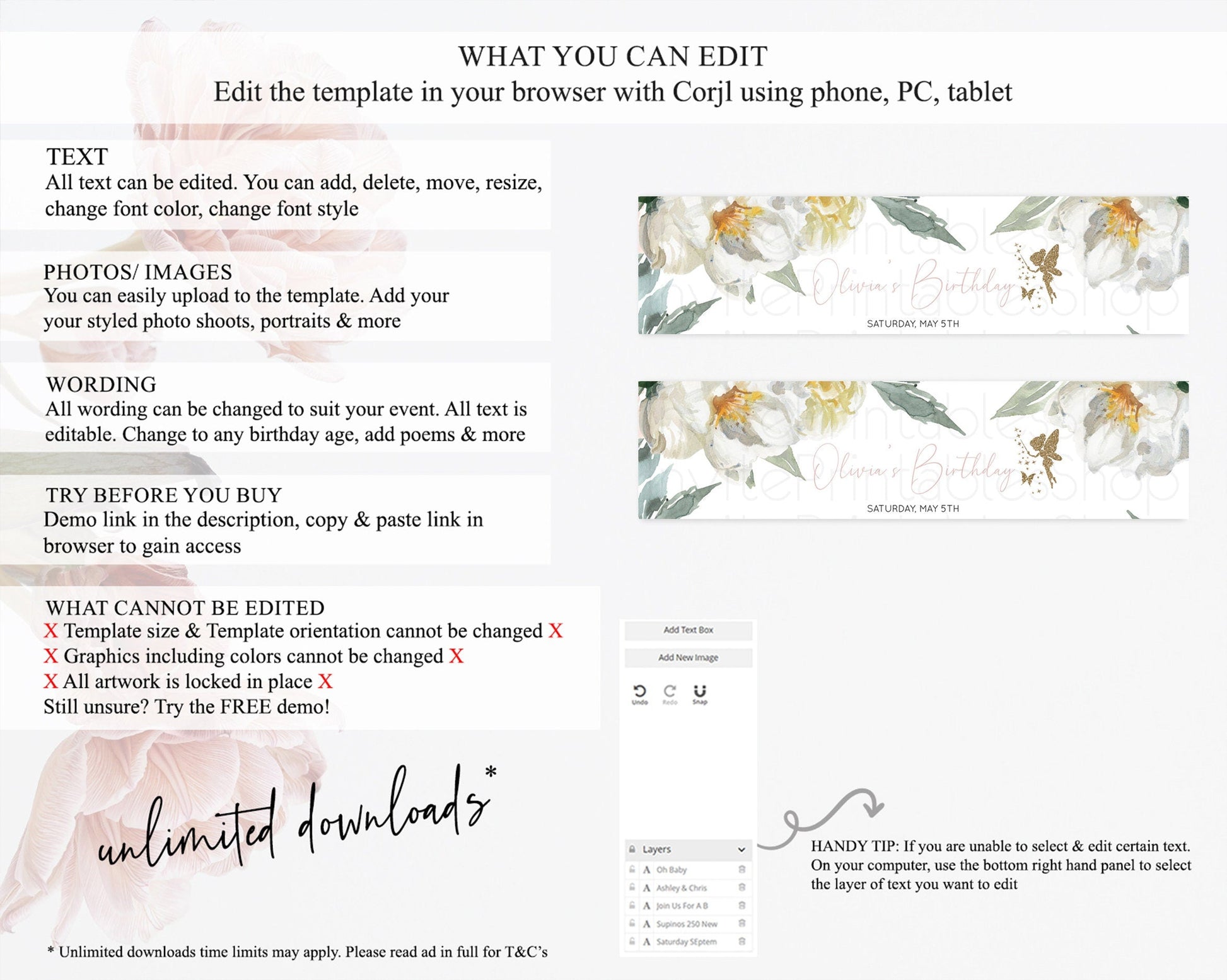 Fairy Water Label Enchanted Garden Pastel Floral Butterfly Party Decor Secret Garden Birthday Baptism Baby Shower Bridal Shower D10800