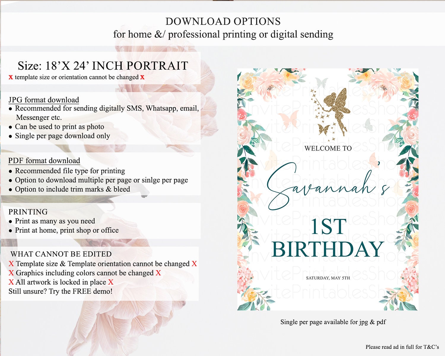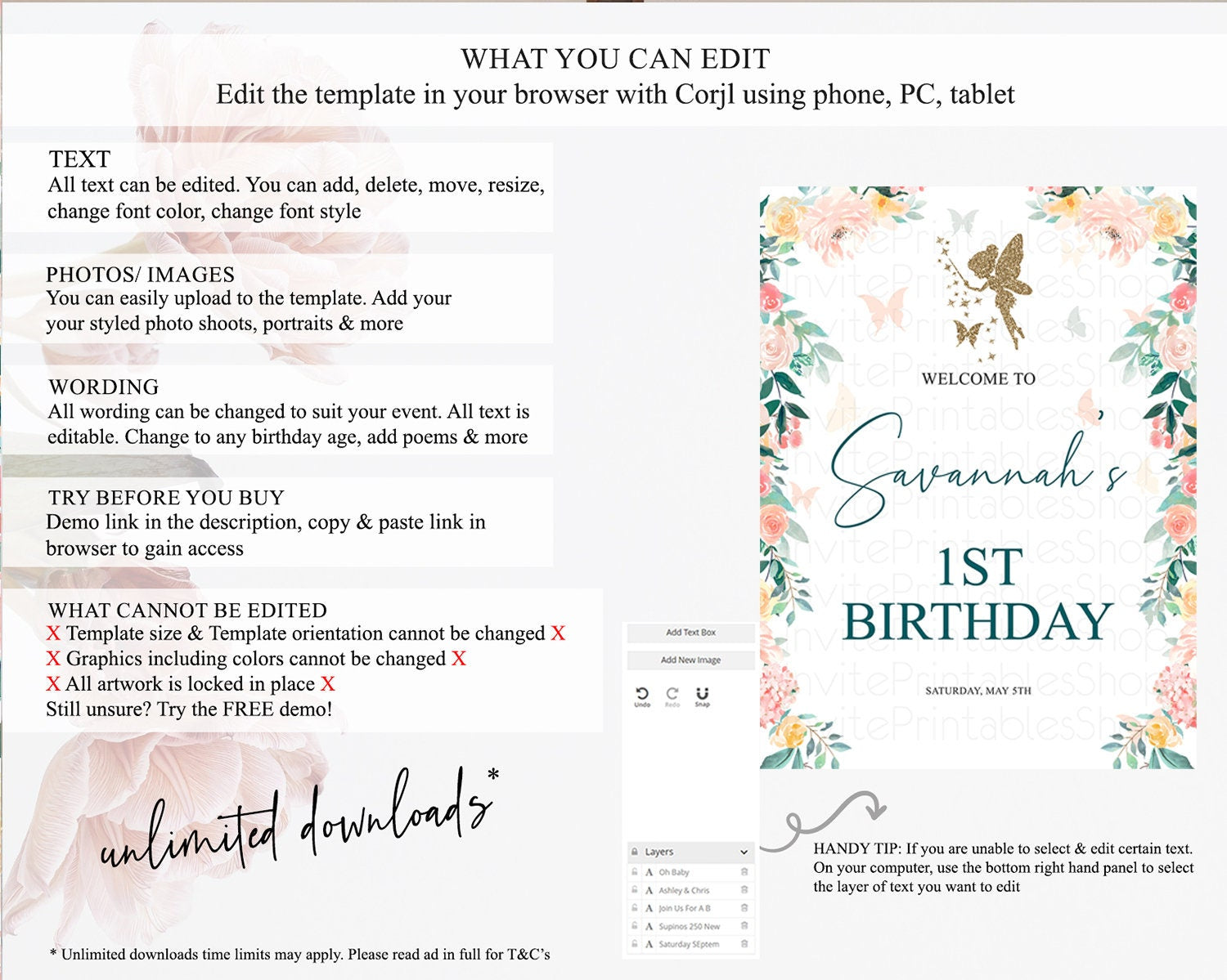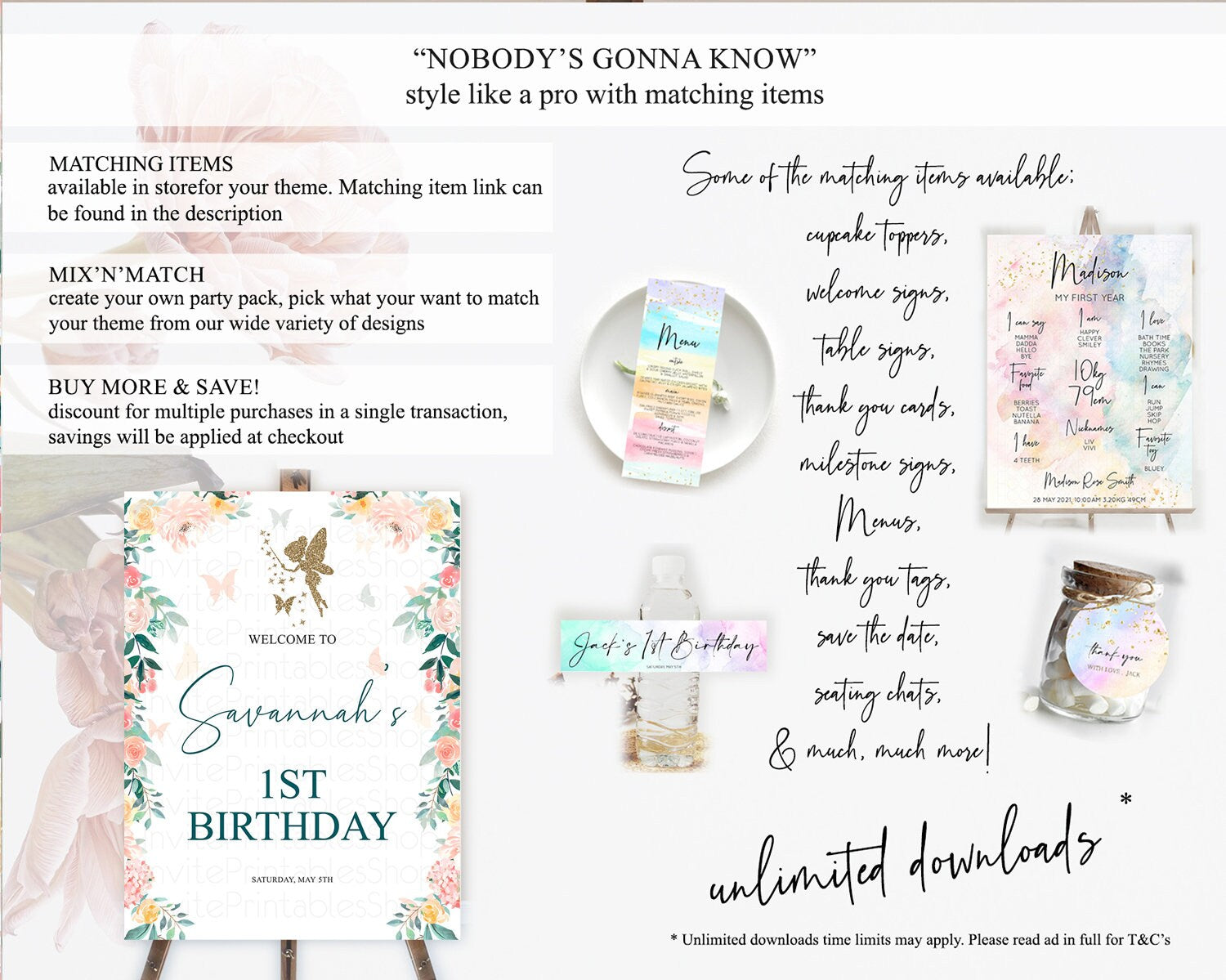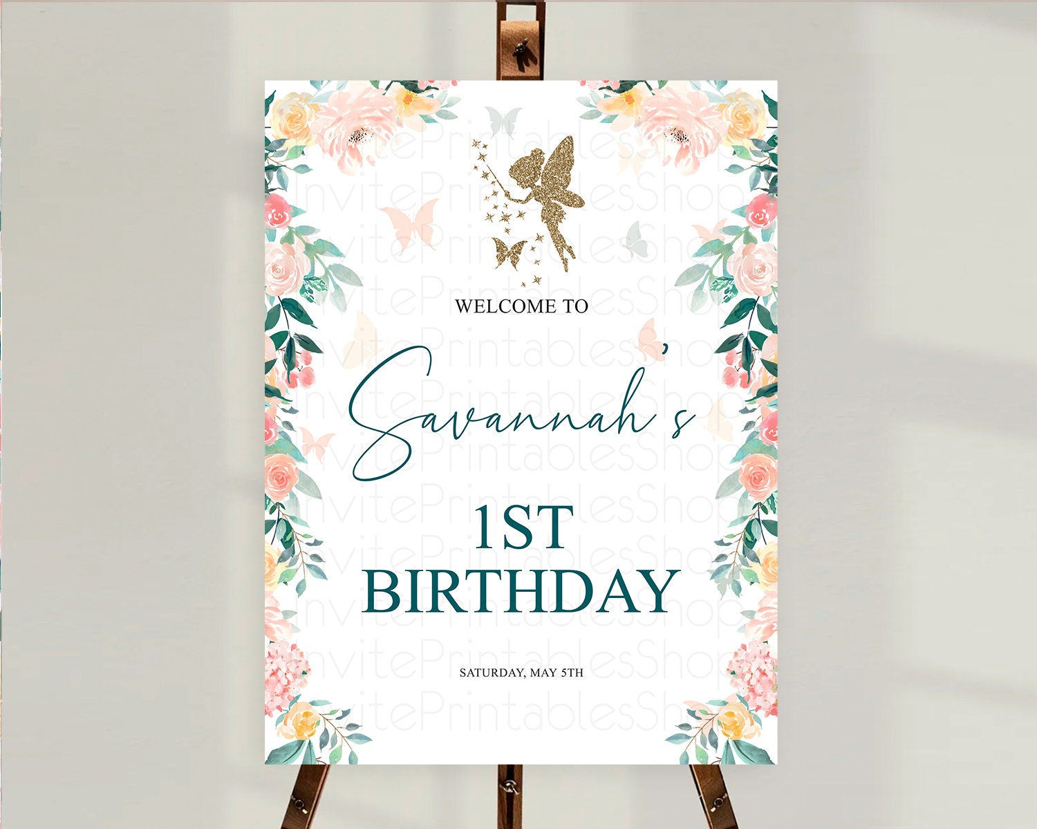 Fairy Welcome Sign Fairy Welcome Board Enchanted Garden Pastel Floral Butterfly Decor Secret Garden First Birthday Welcome Sign D10239