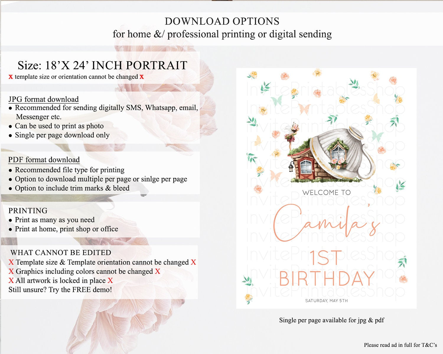 Fairy Welcome Sign Fairy Welcome Board Enchanted Garden Pastel Floral Butterfly Decor Secret Garden First Birthday Welcome Sign D10383