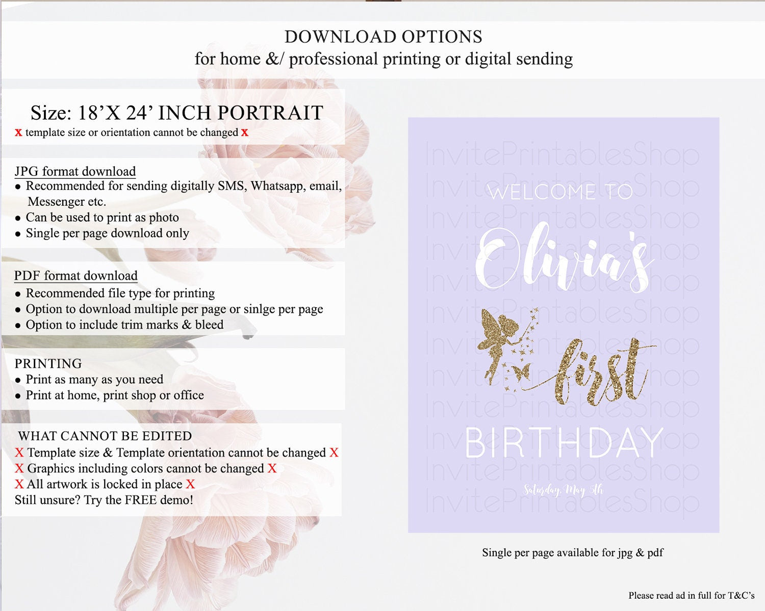 • Template size & orientation cannot be changed. Please use the demo link to confirm this product suits your needs.