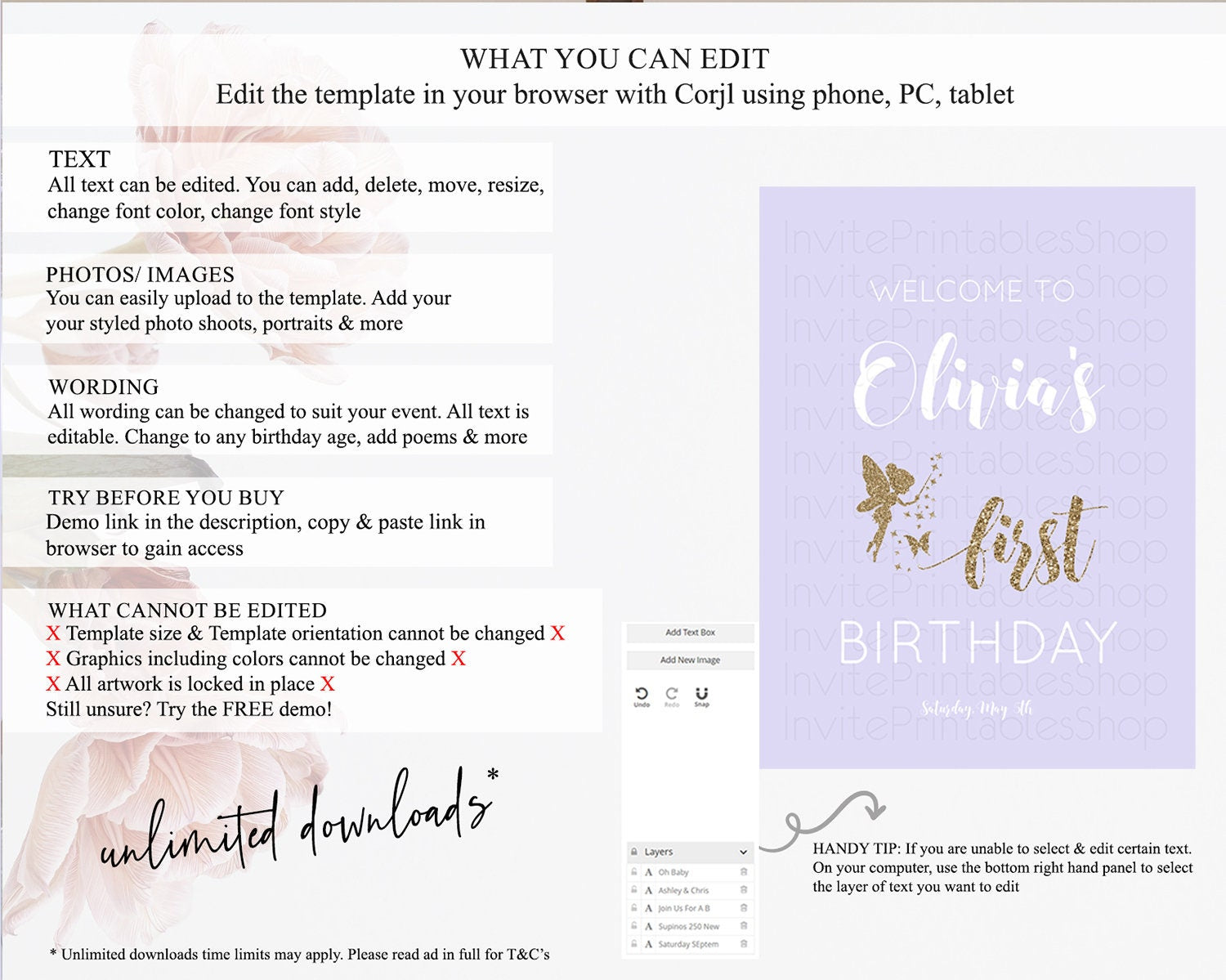 • After purchase, Corjl emails your editing link. Allow up to 15 minutes for delivery.