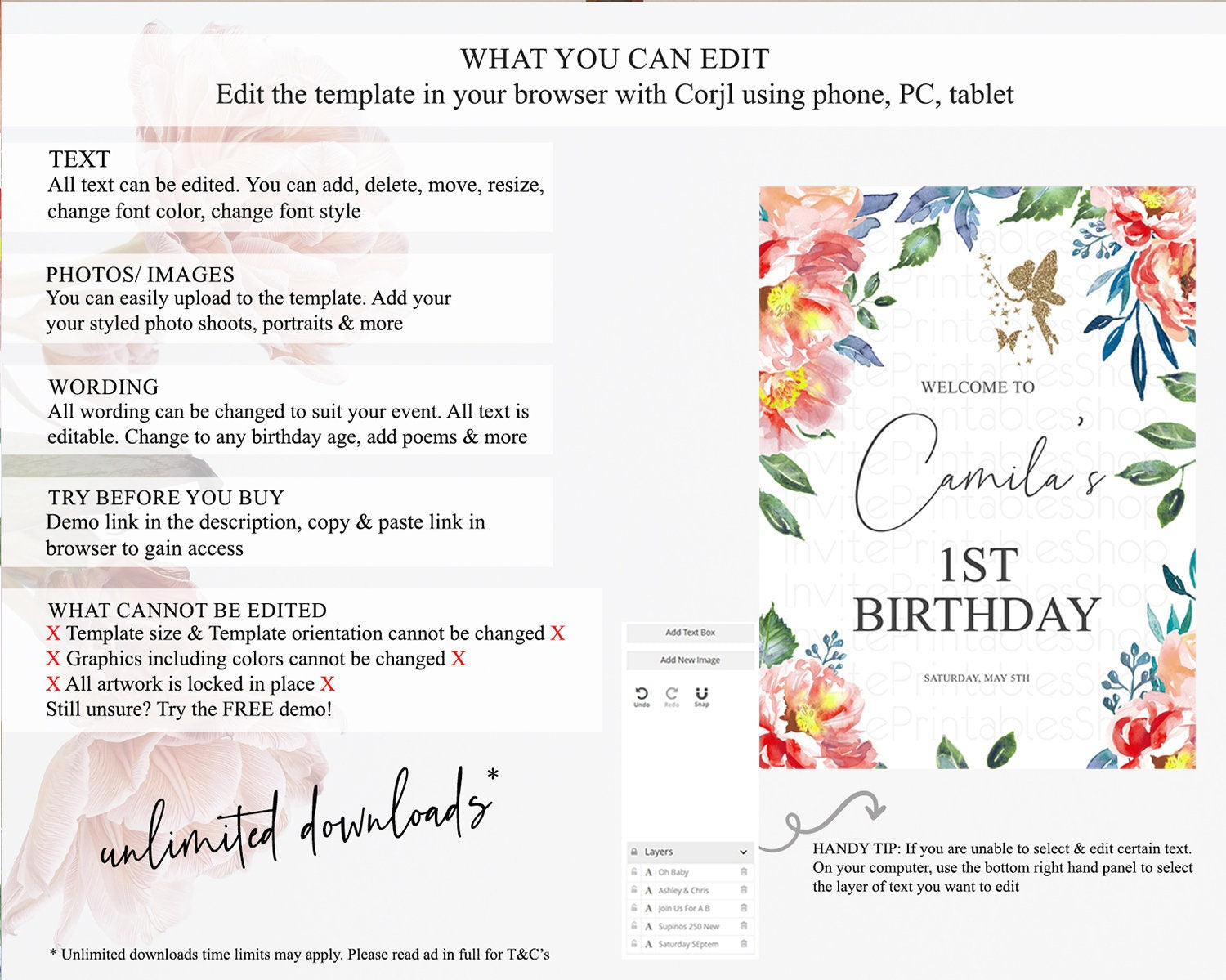• After purchase, Corjl emails your editing link. Allow up to 15 minutes for delivery.