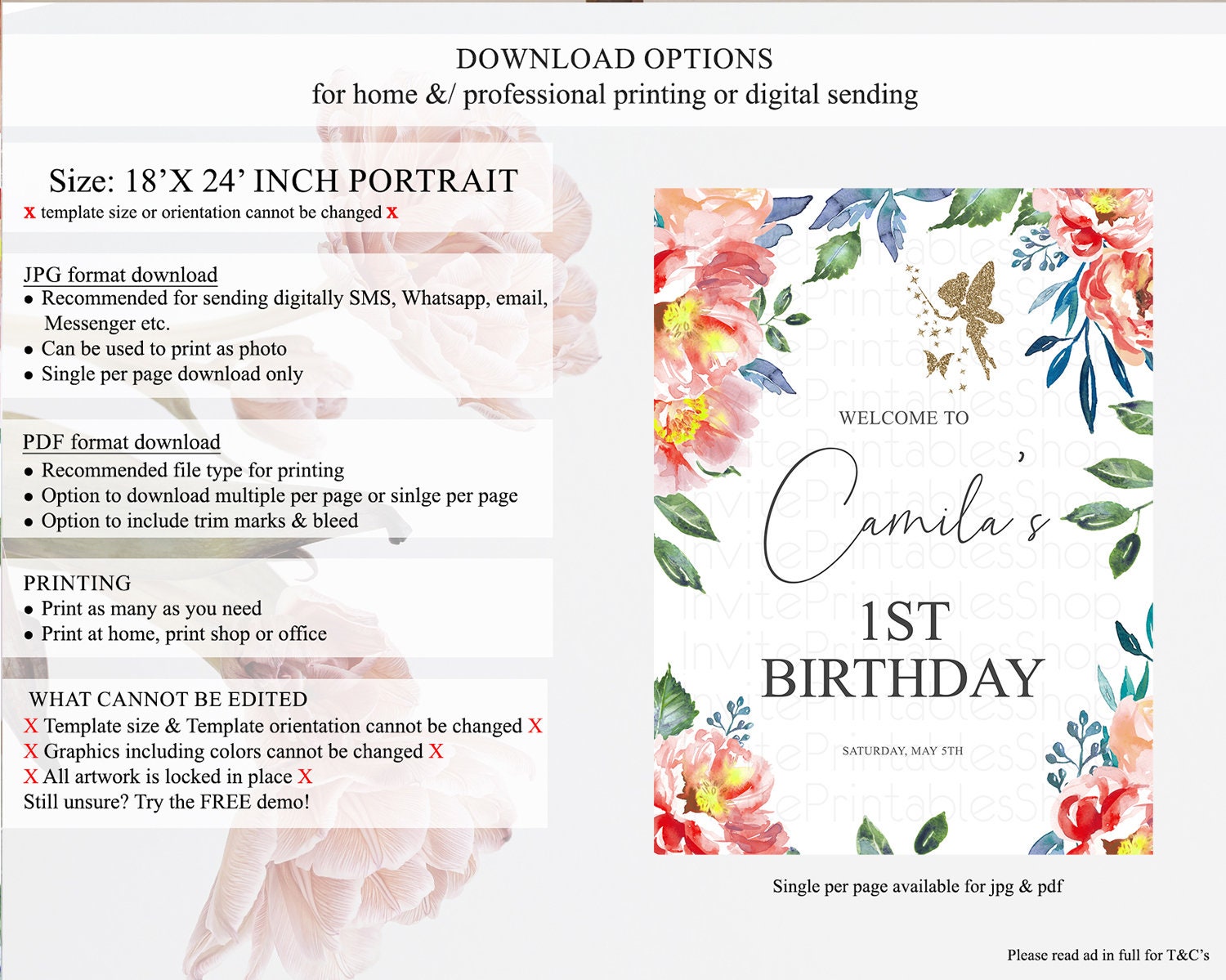 • Template size & orientation cannot be changed. Please use the demo link to confirm this product suits your needs.