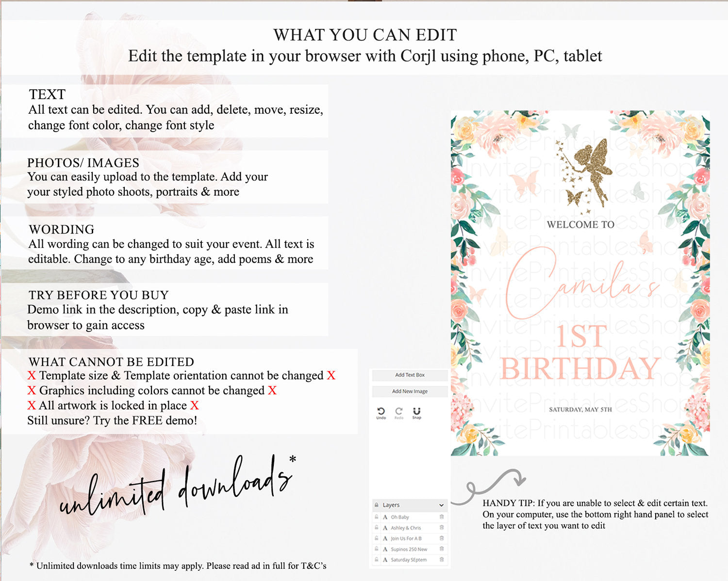 • After purchase, Corjl emails your editing link. Allow up to 15 minutes for delivery.