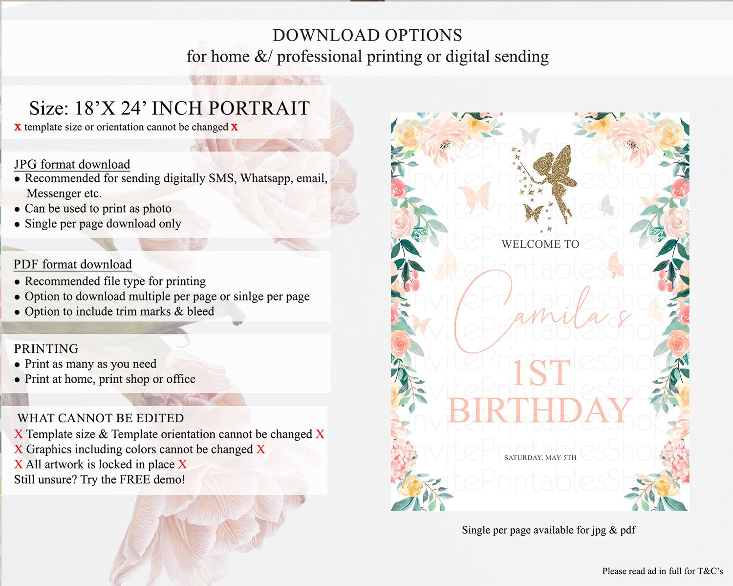 Fairy Welcome Sign Fairy Welcome Board Enchanted Garden Pastel Floral Butterfly Decor Secret Garden First Birthday Welcome Sign D10789