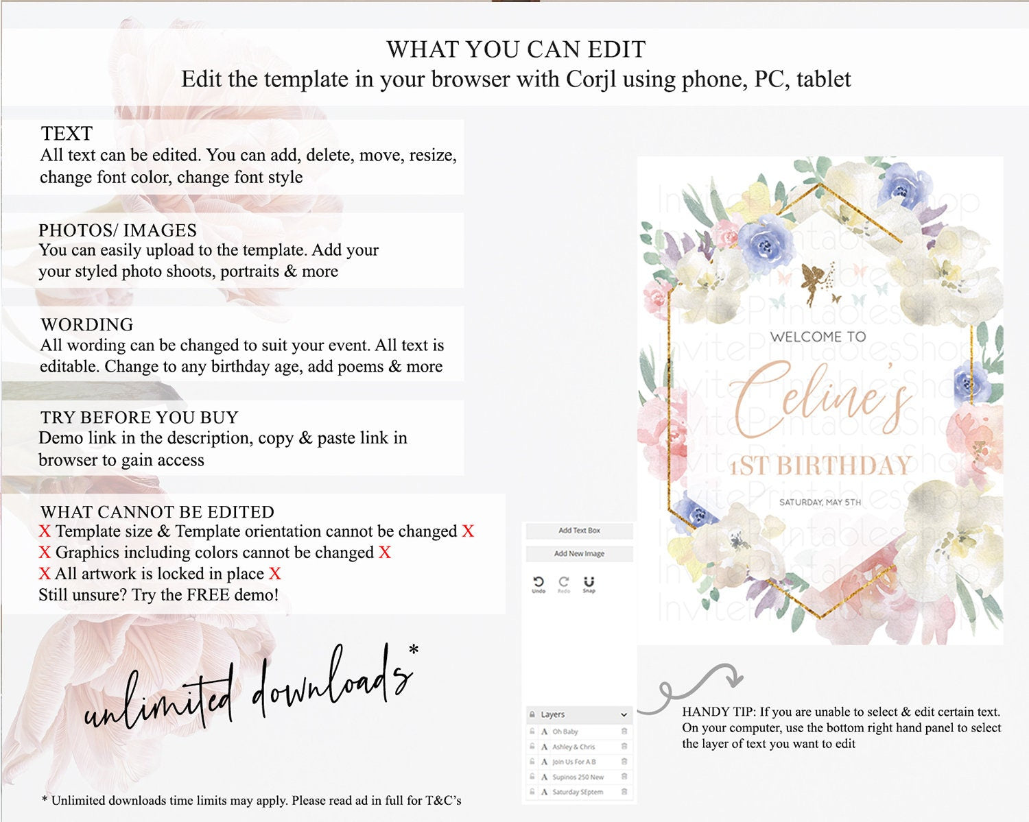 • After purchase, Corjl emails your editing link. Allow up to 15 minutes for delivery.