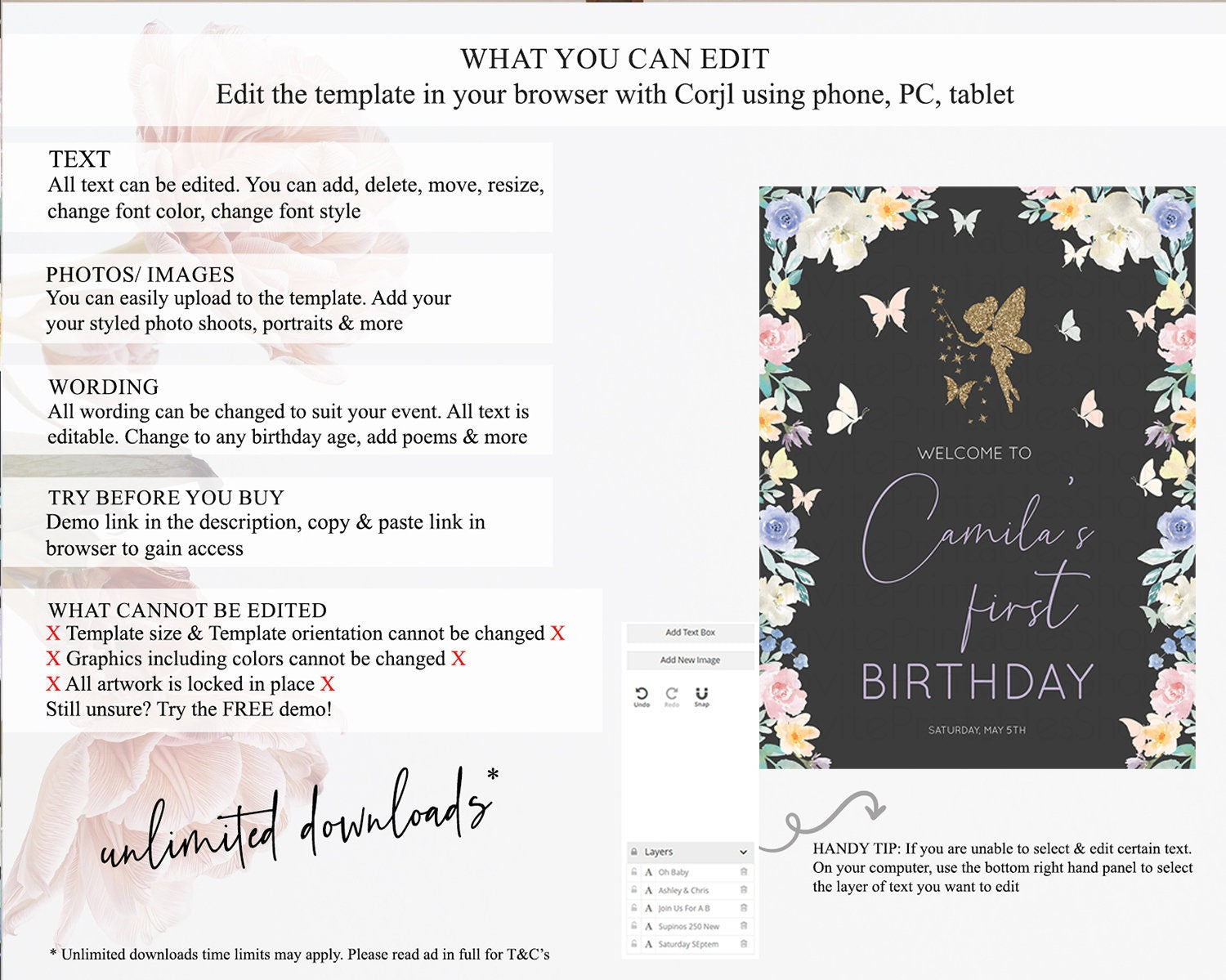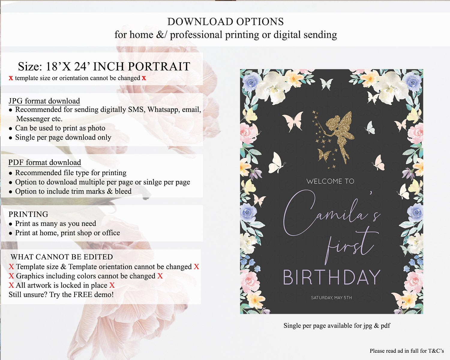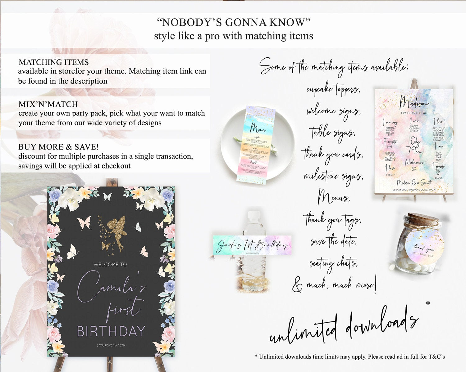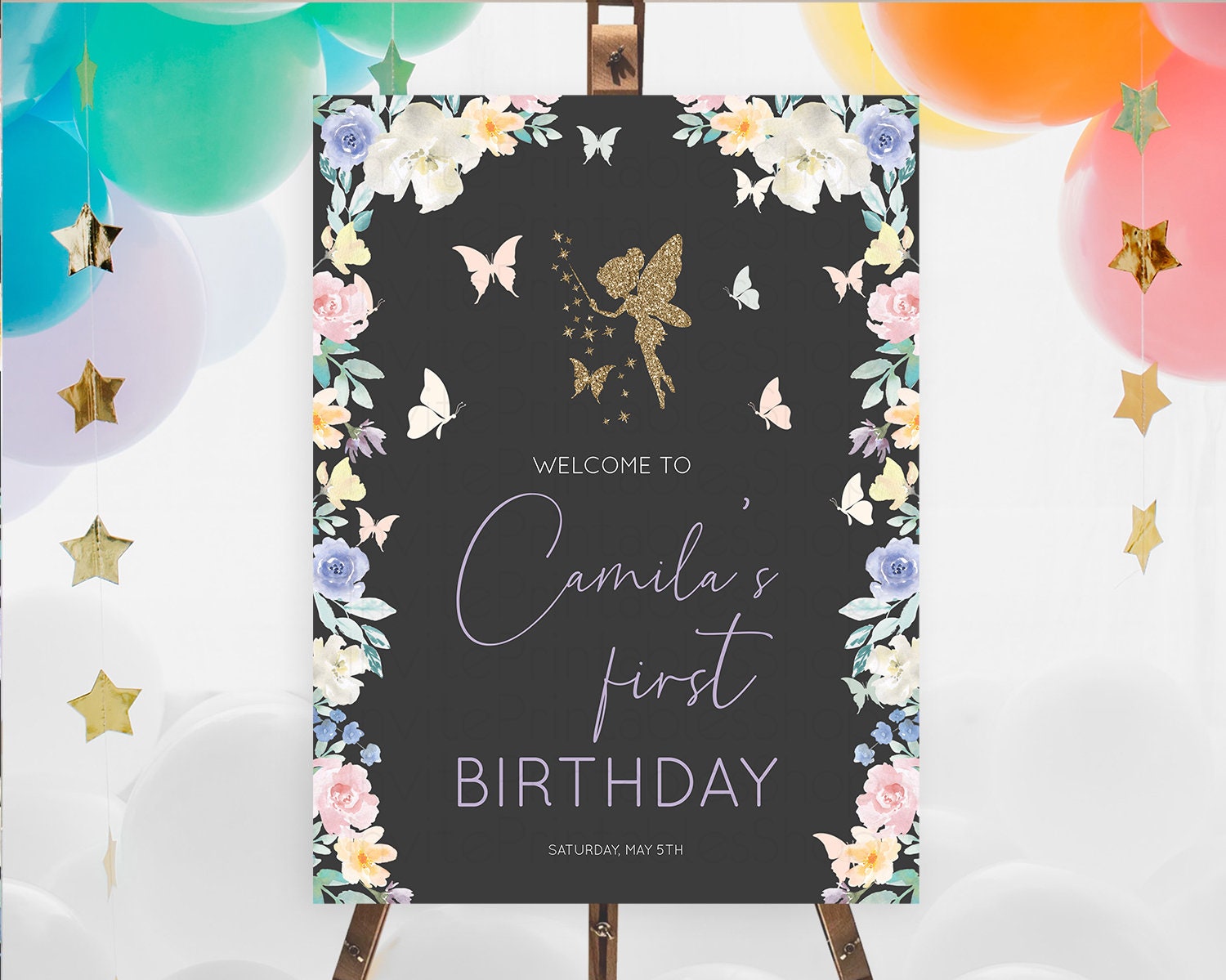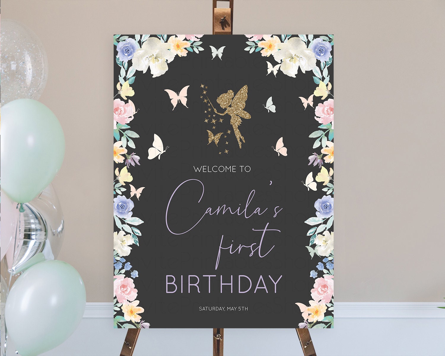 Fairy Welcome Sign Fairy Welcome Board Enchanted Garden Pastel Floral Butterfly Decor Secret Garden First Birthday Welcome Sign D10881