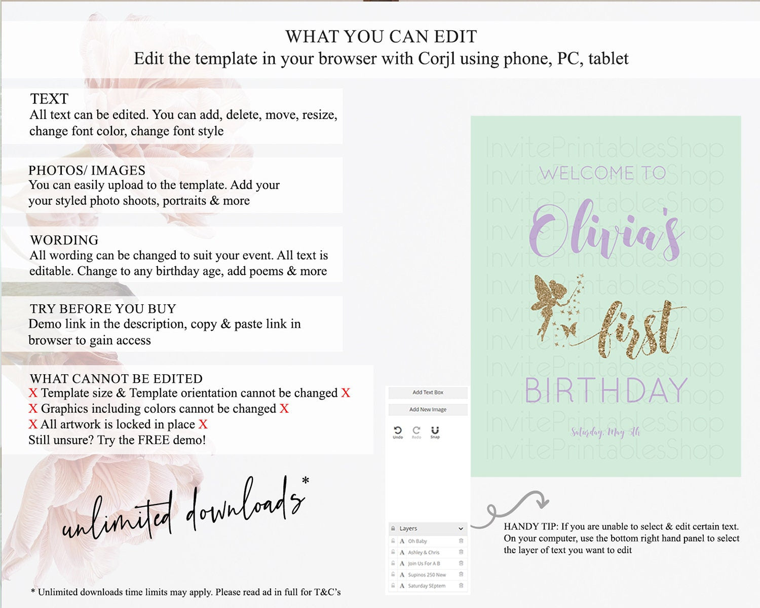 Fairy Welcome Sign Fairy Welcome Board Enchanted Garden Pastel Floral Butterfly Decor Secret Garden First Birthday Welcome Sign D10908