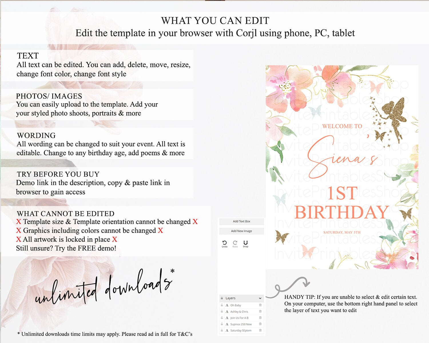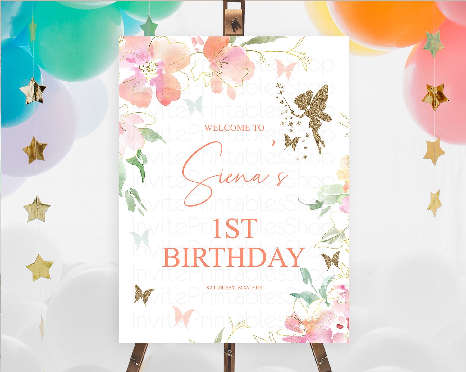 Fairy Welcome Sign Fairy Welcome Board Enchanted Garden Pastel Floral Butterfly Decor Secret Garden First Birthday Welcome Sign D10934