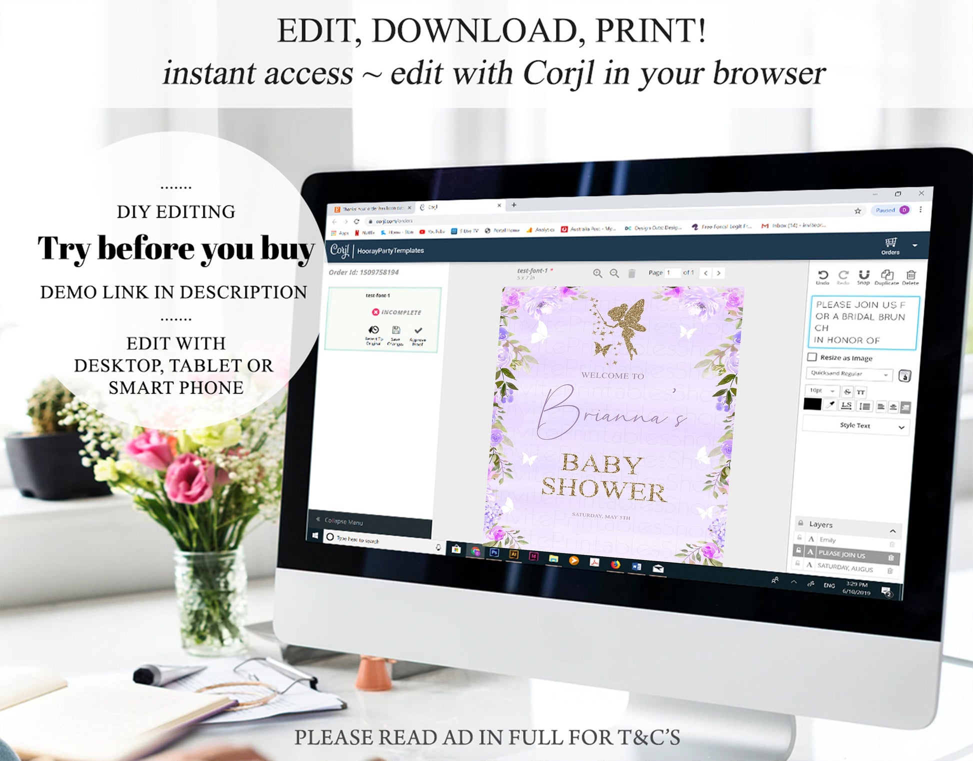 Fairy Welcome Sign Pastel Floral Welcome Sign Enchanted Garden Sign Secret Garden Sign Butterfly Colorful Floral Watercolor Purple Ombre 47