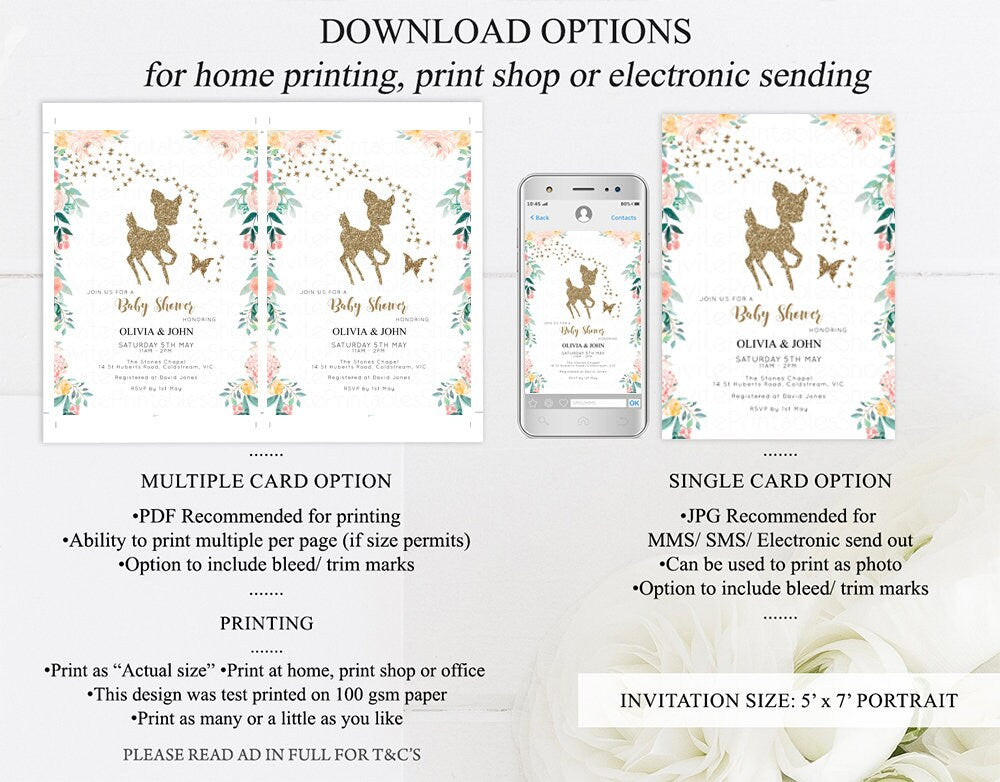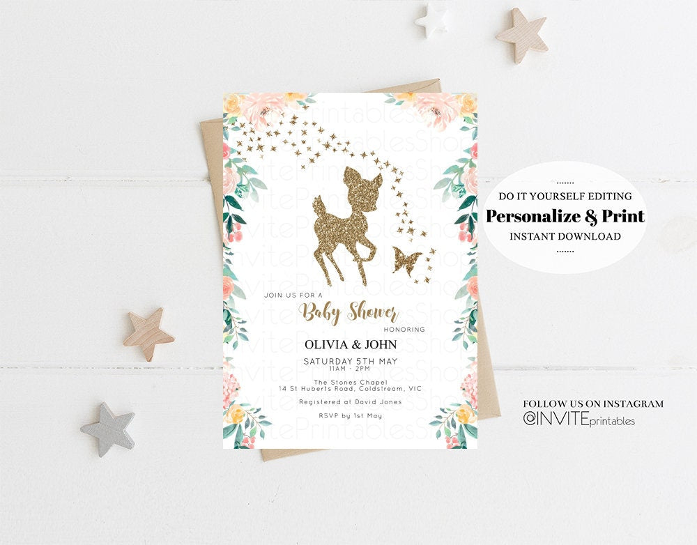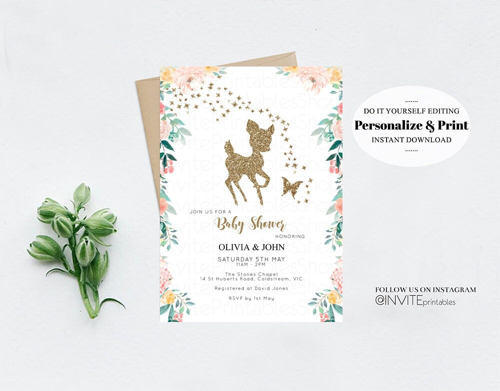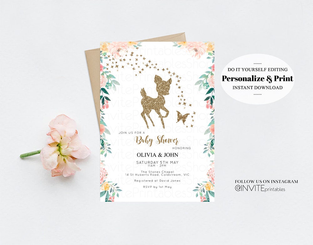 Fawn Baby Shower Invite Deer Baby Shower Invite Deer Invite Deer Party Invite Pastel Floral Invite Glitter Invite Garden Party Invite