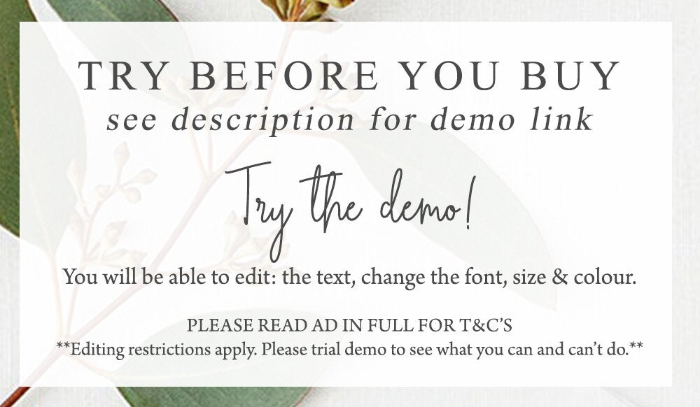• Template size & orientation cannot be changed. Please use the demo link to confirm this product suits your needs.