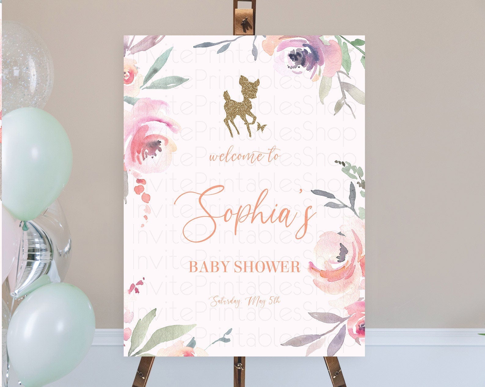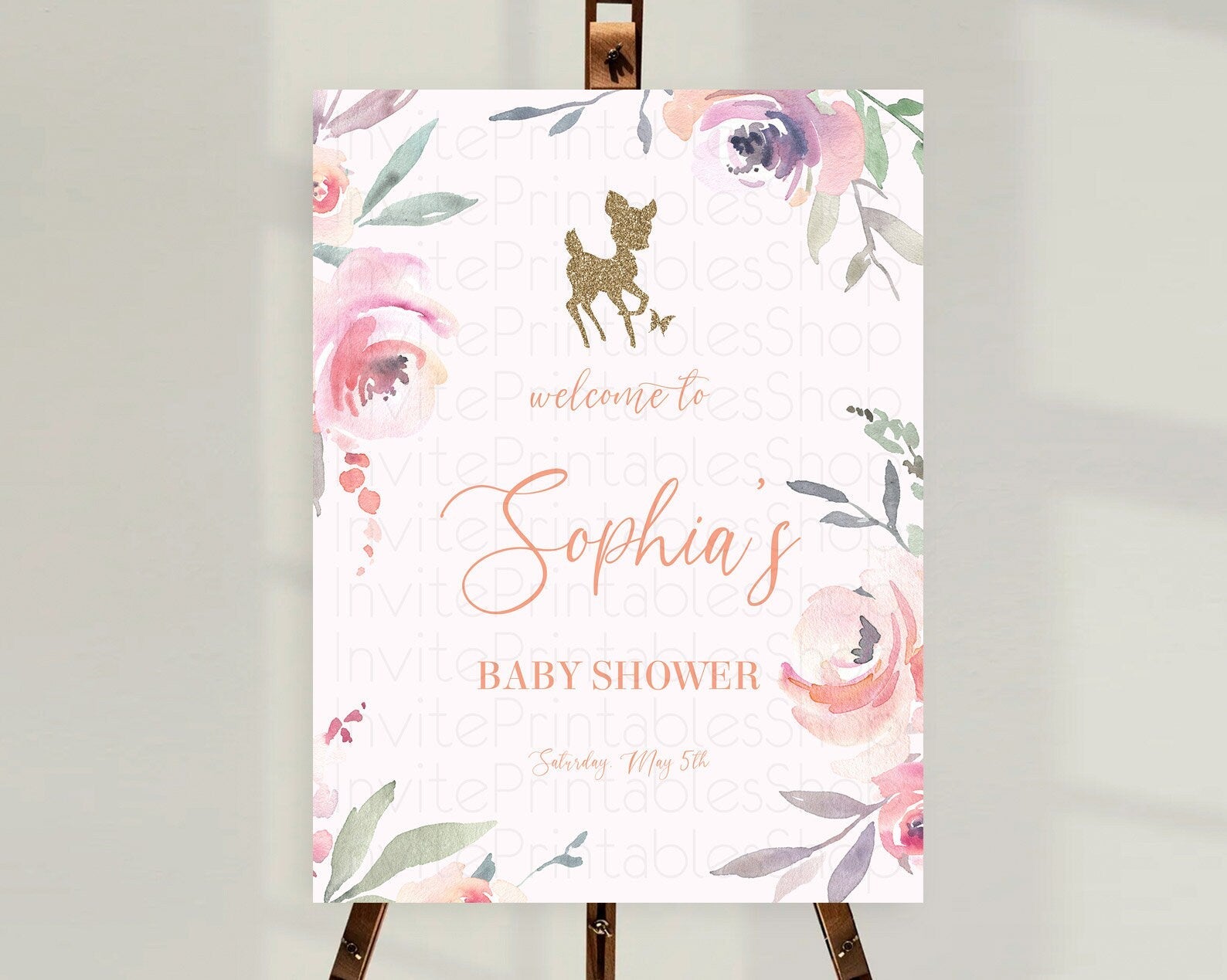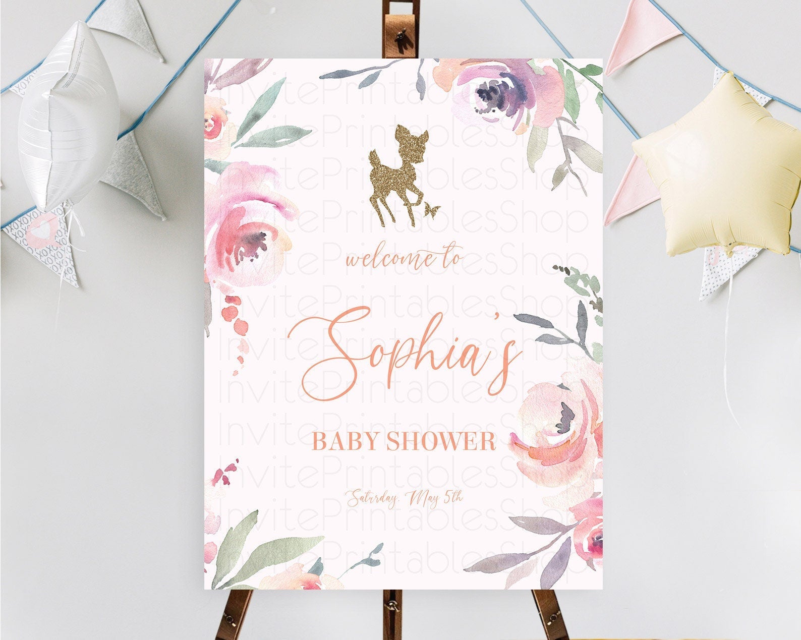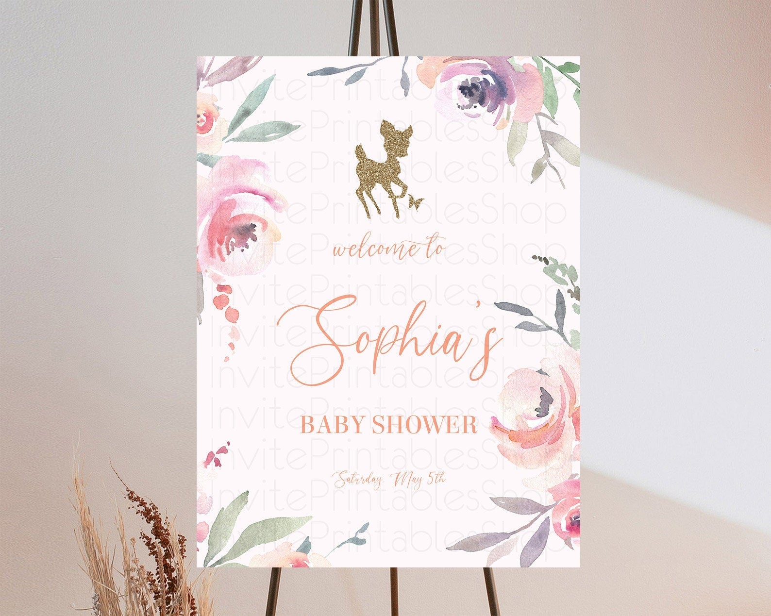 Fawn Baby Shower Welcome Sign Deer Welcome Board Floral Deer Welcome Poster Enchanted Forest Butterfly Pastel Floral Welcome Sign D10196