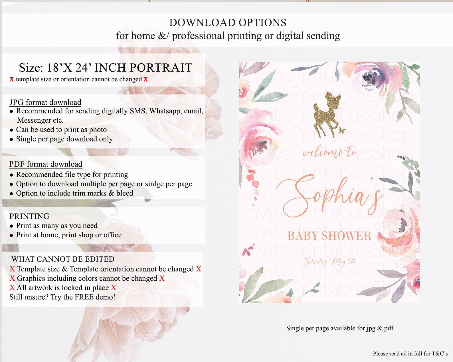 • Template size & orientation cannot be changed. Please use the demo link to confirm this product suits your needs.