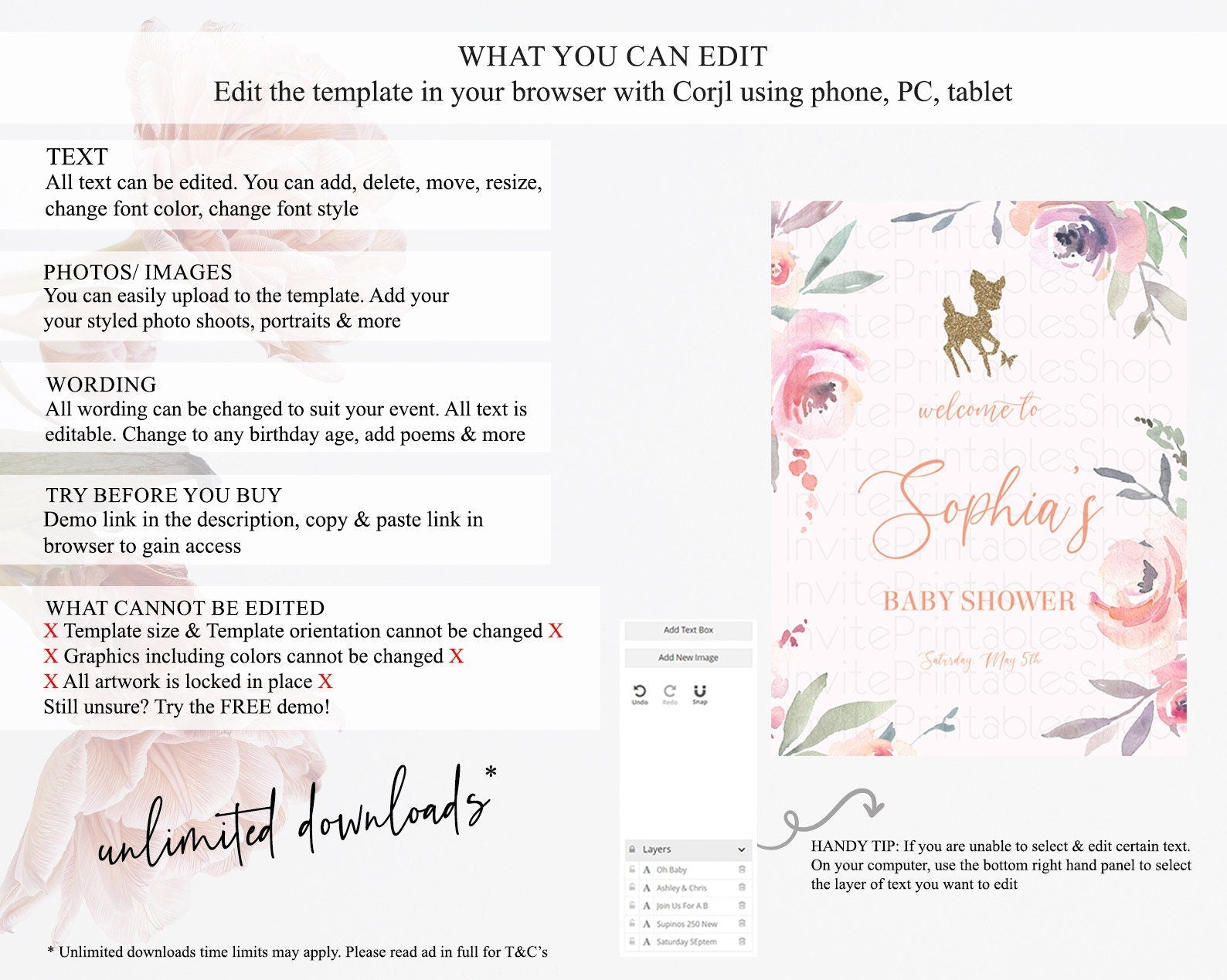 • After purchase, Corjl emails your editing link. Allow up to 15 minutes for delivery.