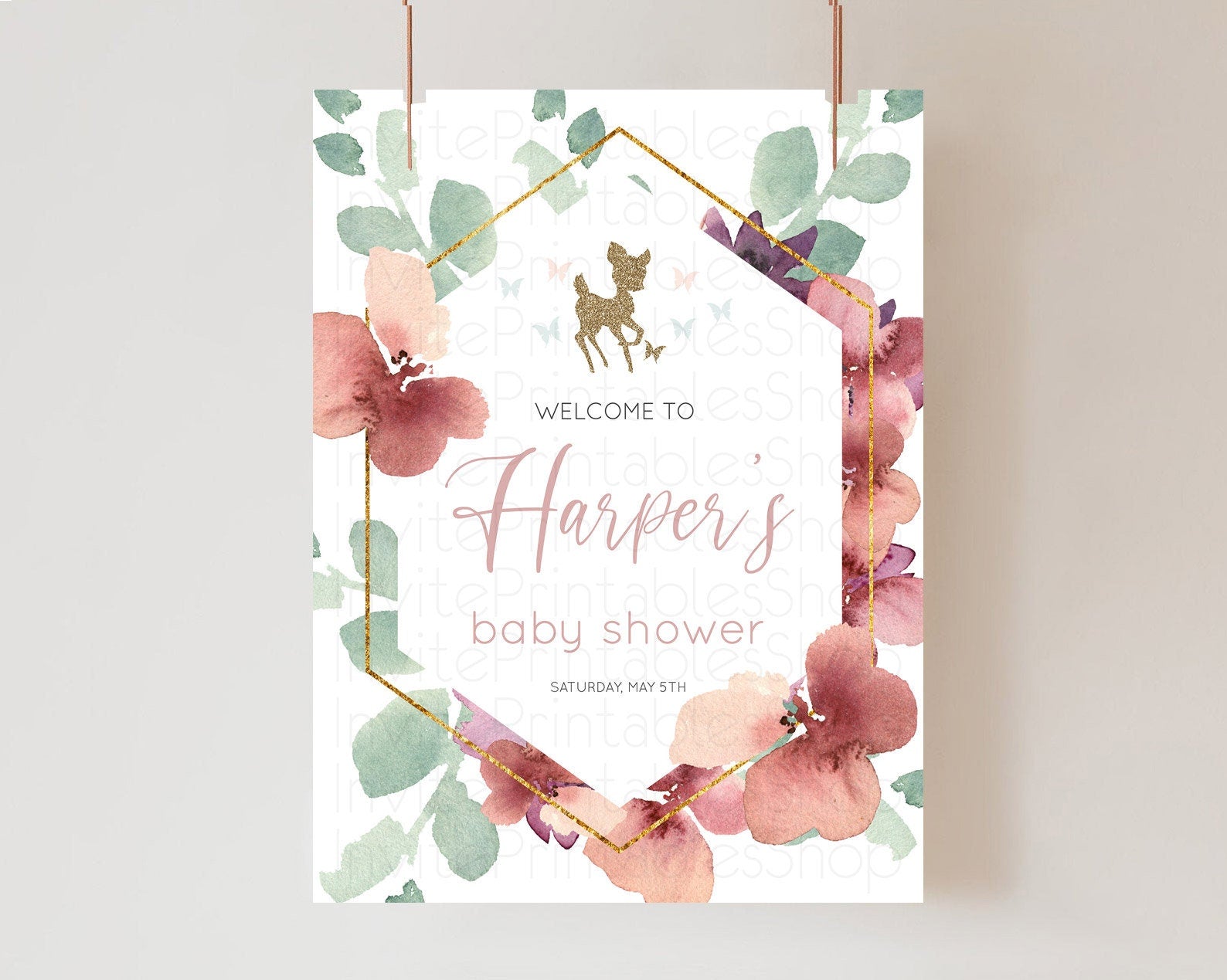 Fawn Baby Shower Welcome Sign Deer Welcome Board Floral Deer Welcome Poster Enchanted Forest Butterfly Pastel Floral Welcome Sign D10459
