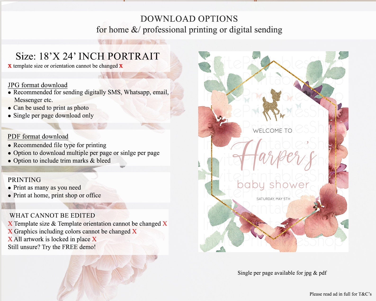 • Template size & orientation cannot be changed. Please use the demo link to confirm this product suits your needs.