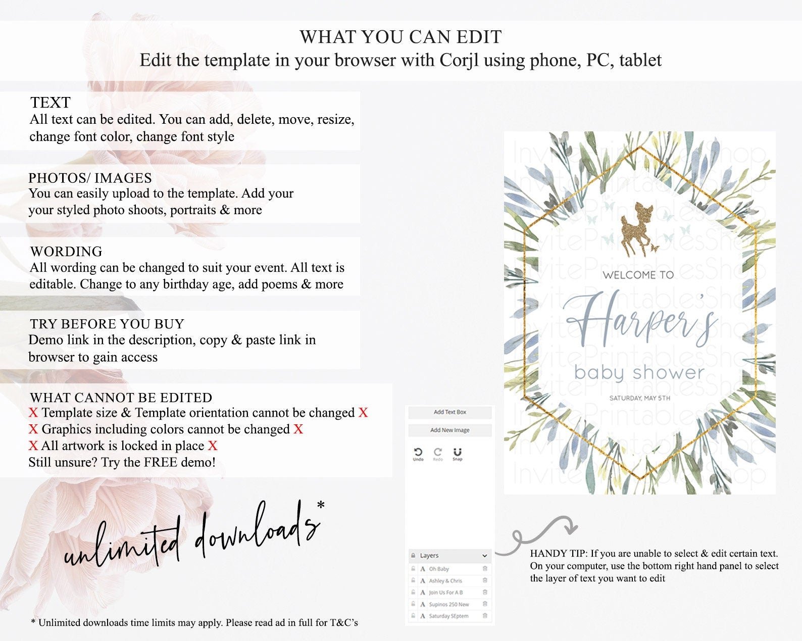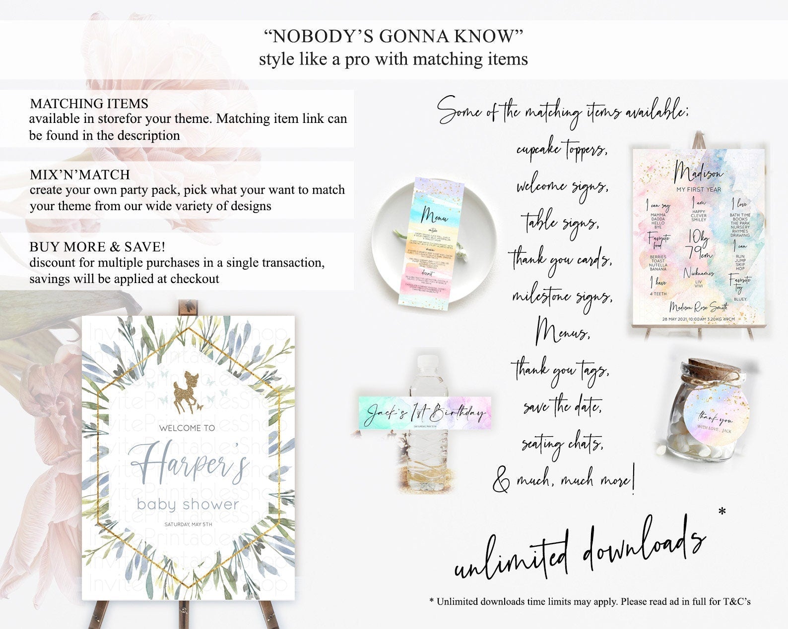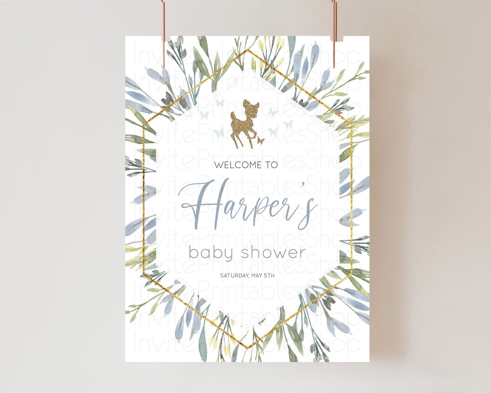 Fawn Baby Shower Welcome Sign Deer Welcome Board Floral Deer Welcome Poster Enchanted Forest Butterfly Pastel Floral Welcome Sign D10534