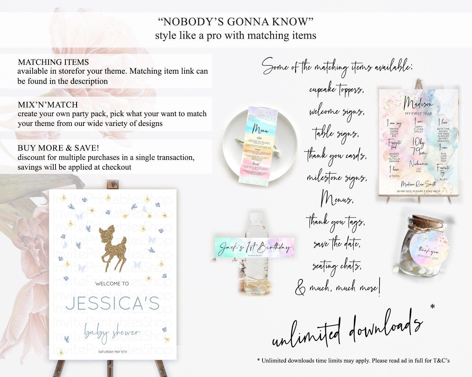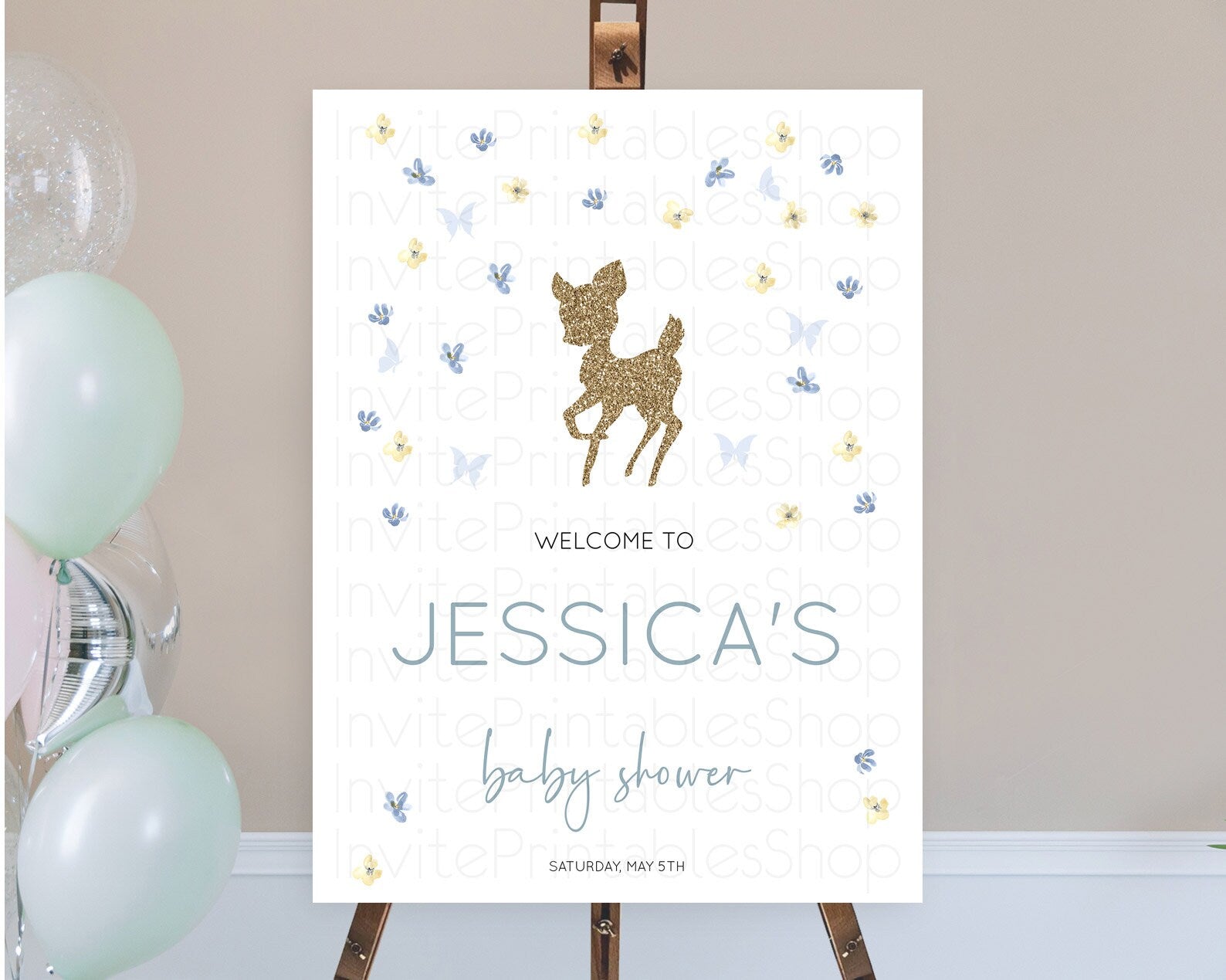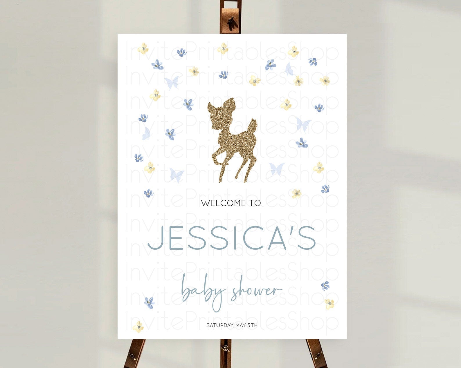 Fawn Baby Shower Welcome Sign Deer Welcome Board Floral Deer Welcome Poster Enchanted Forest Butterfly Pastel Floral Welcome Sign D10864