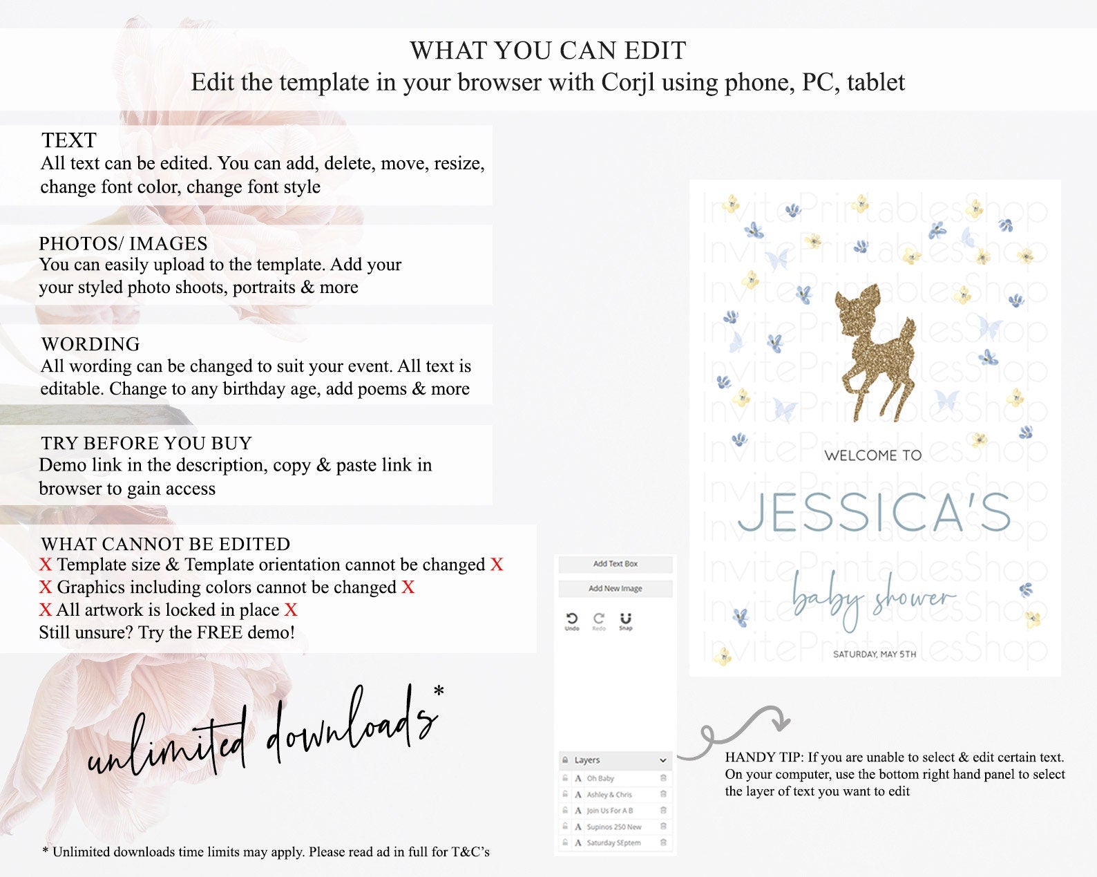 • After purchase, Corjl emails your editing link. Allow up to 15 minutes for delivery.