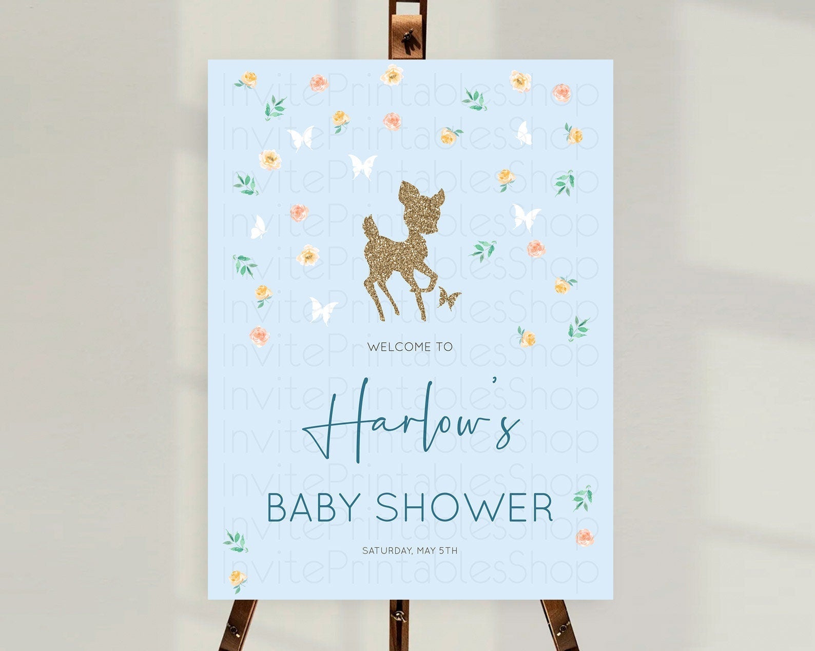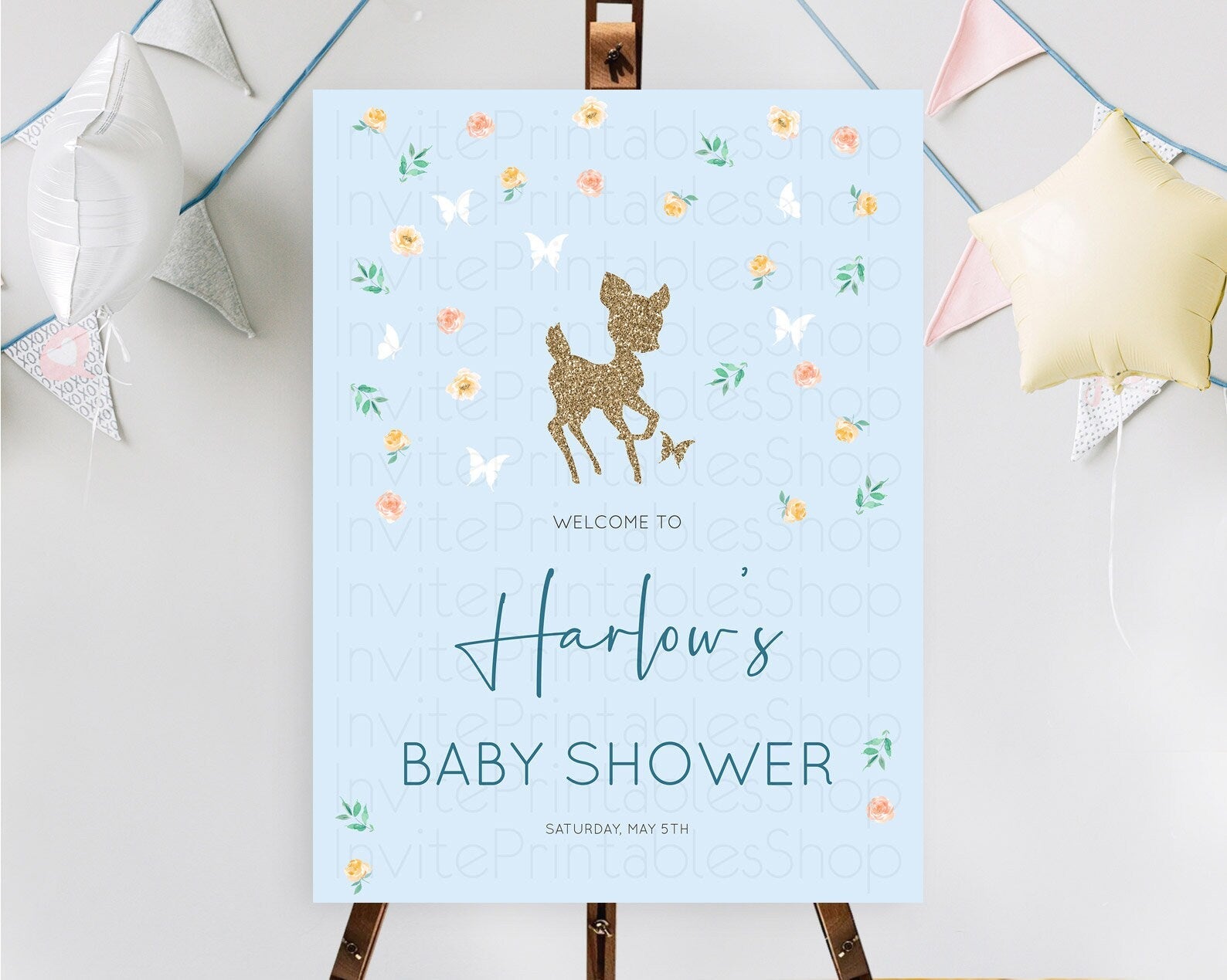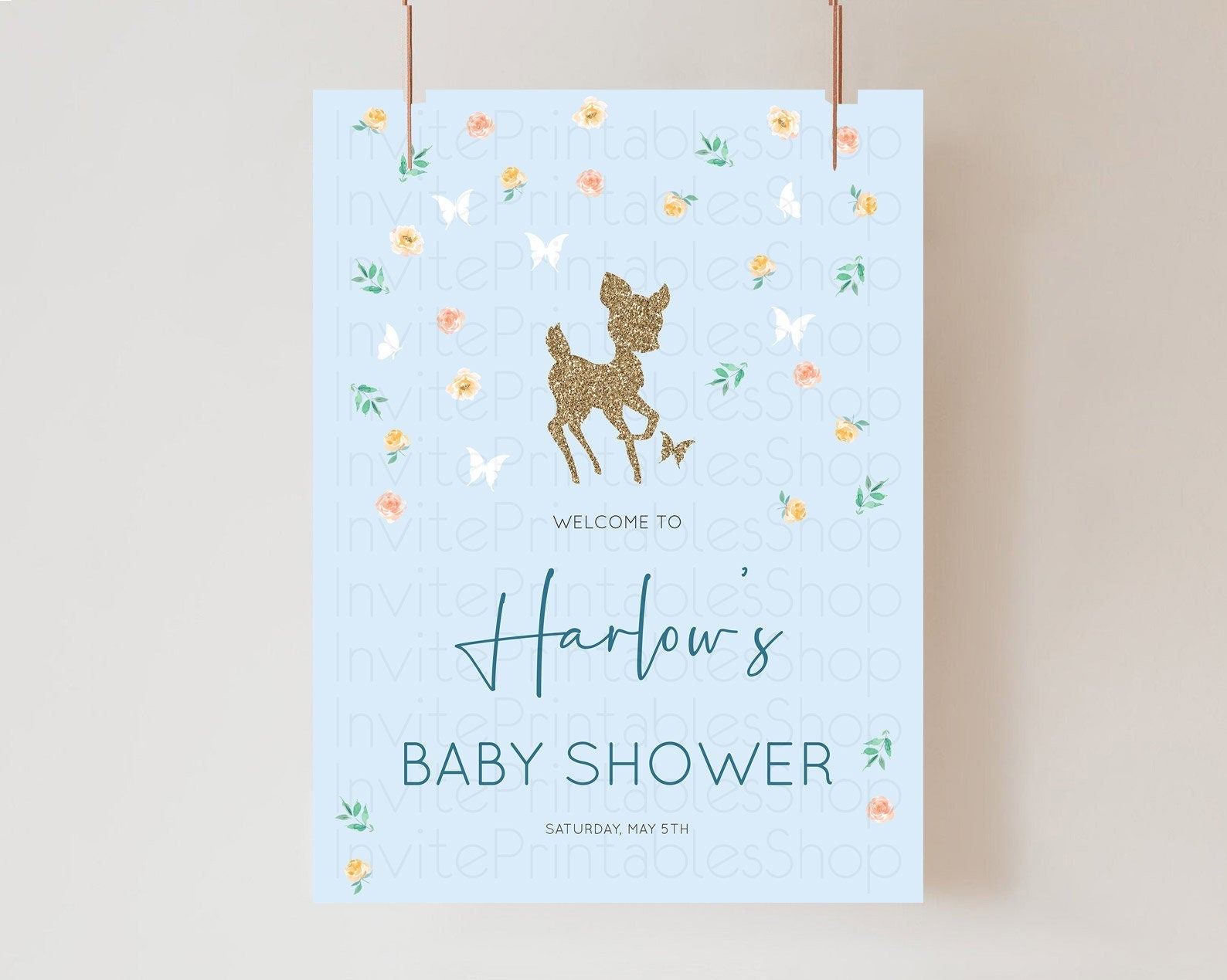 Fawn Baby Shower Welcome Sign Deer Welcome Board Floral Deer Welcome Poster Enchanted Forest Butterfly Pastel Floral Welcome Sign D10902
