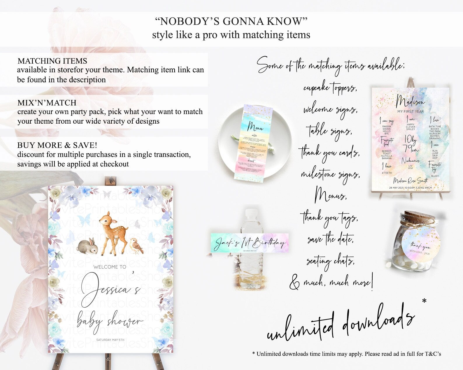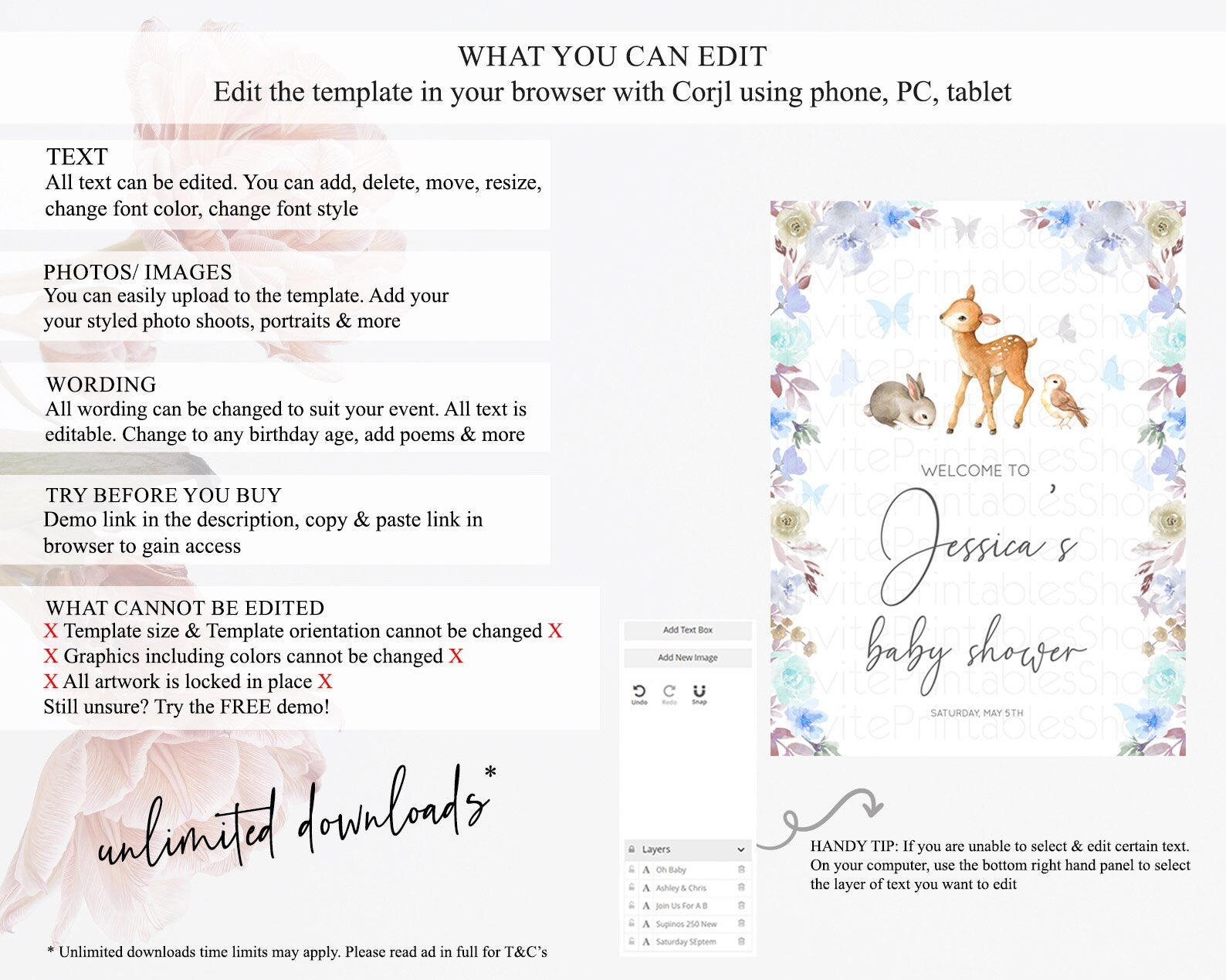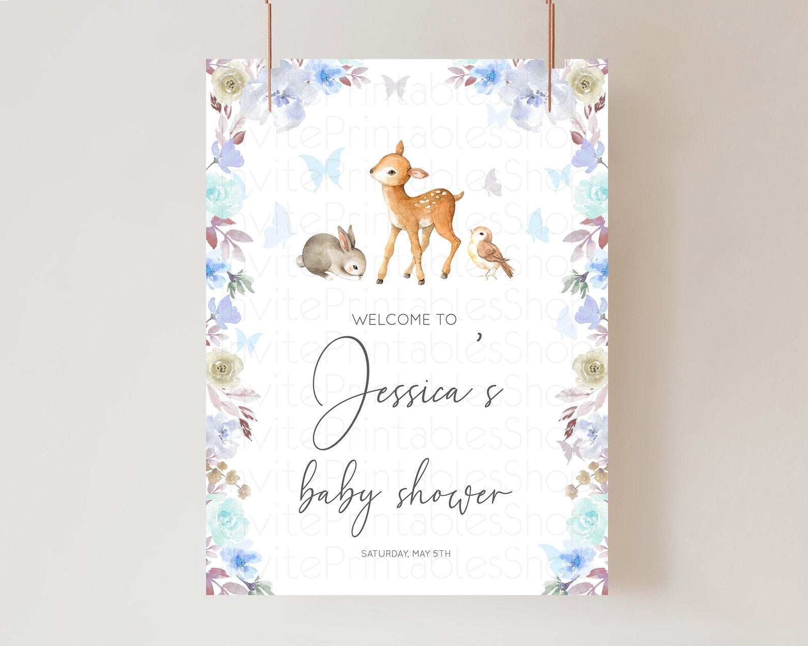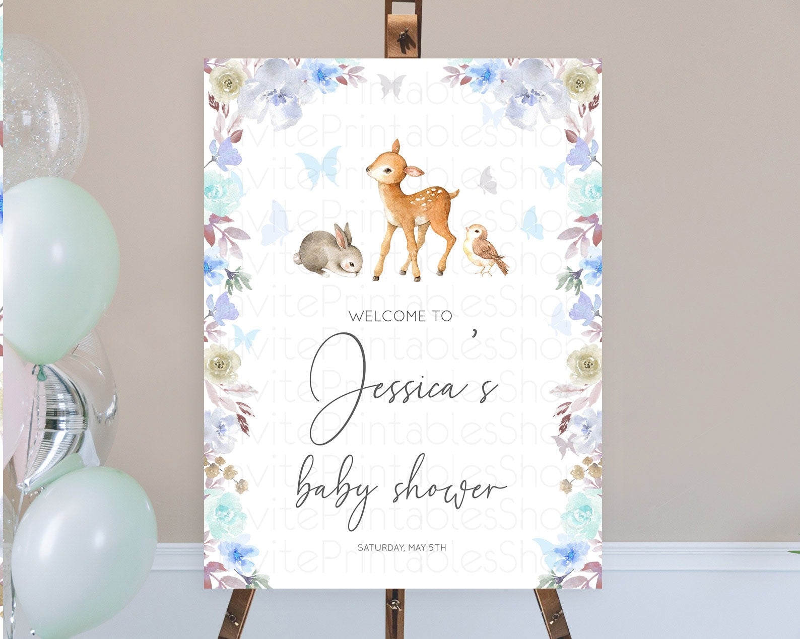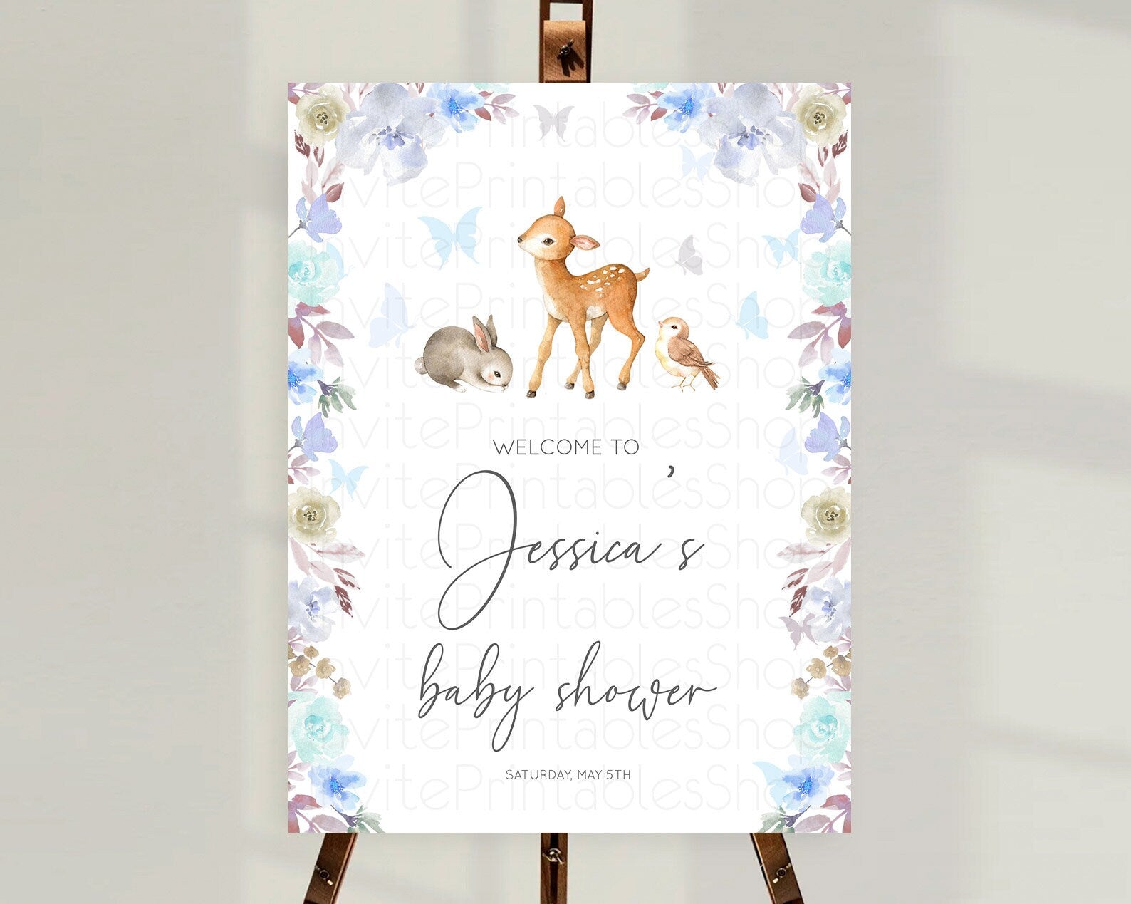 Fawn Baby Shower Welcome Sign Deer Welcome Board Floral Deer Welcome Poster Enchanted Forest Butterfly Pastel Floral Welcome Sign D10929