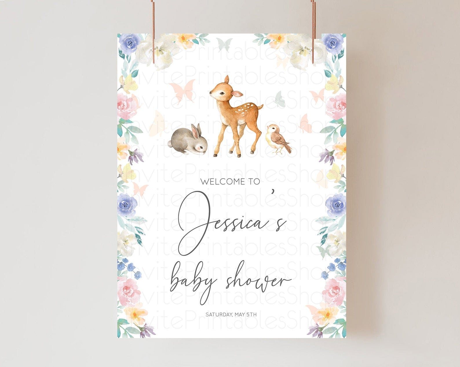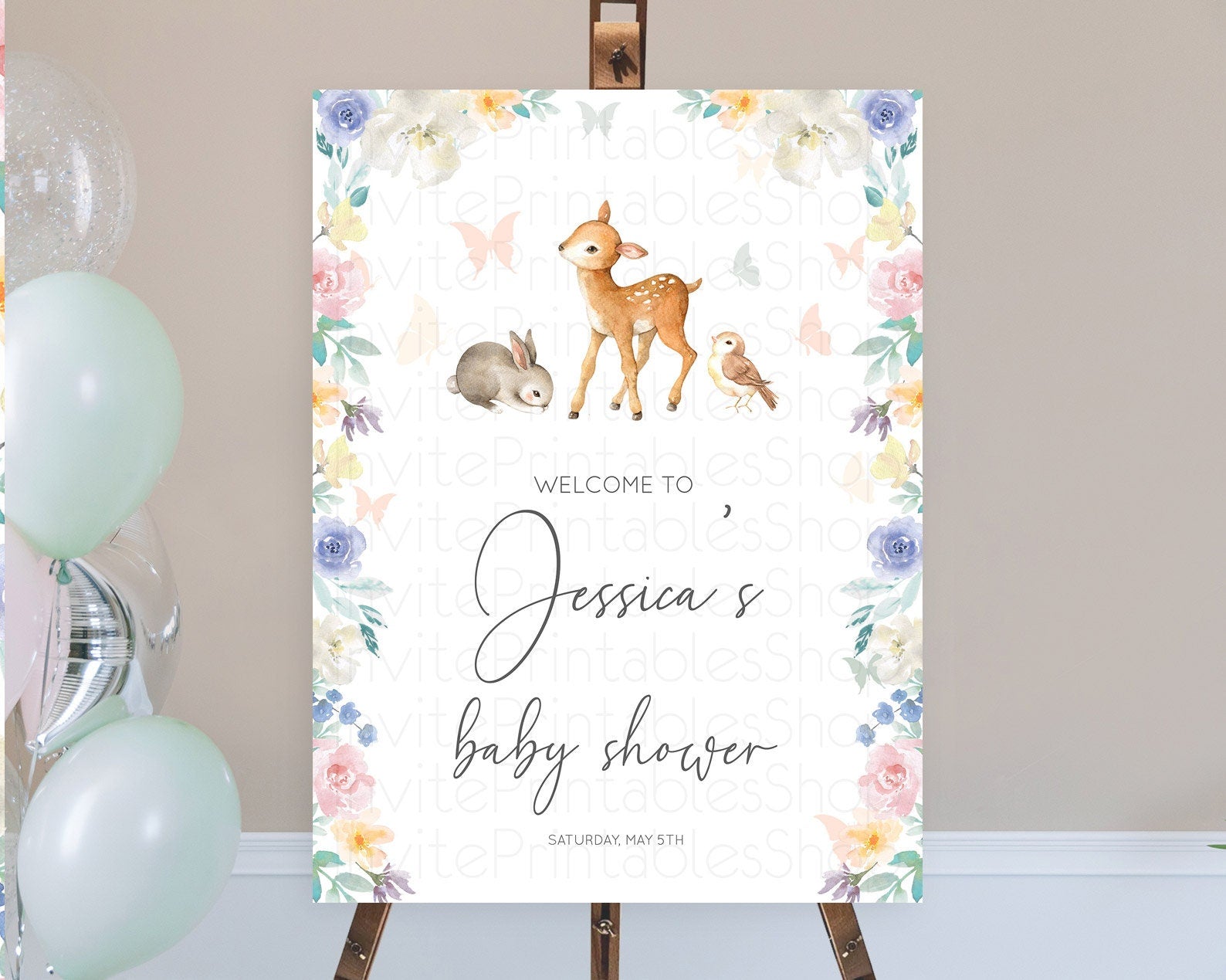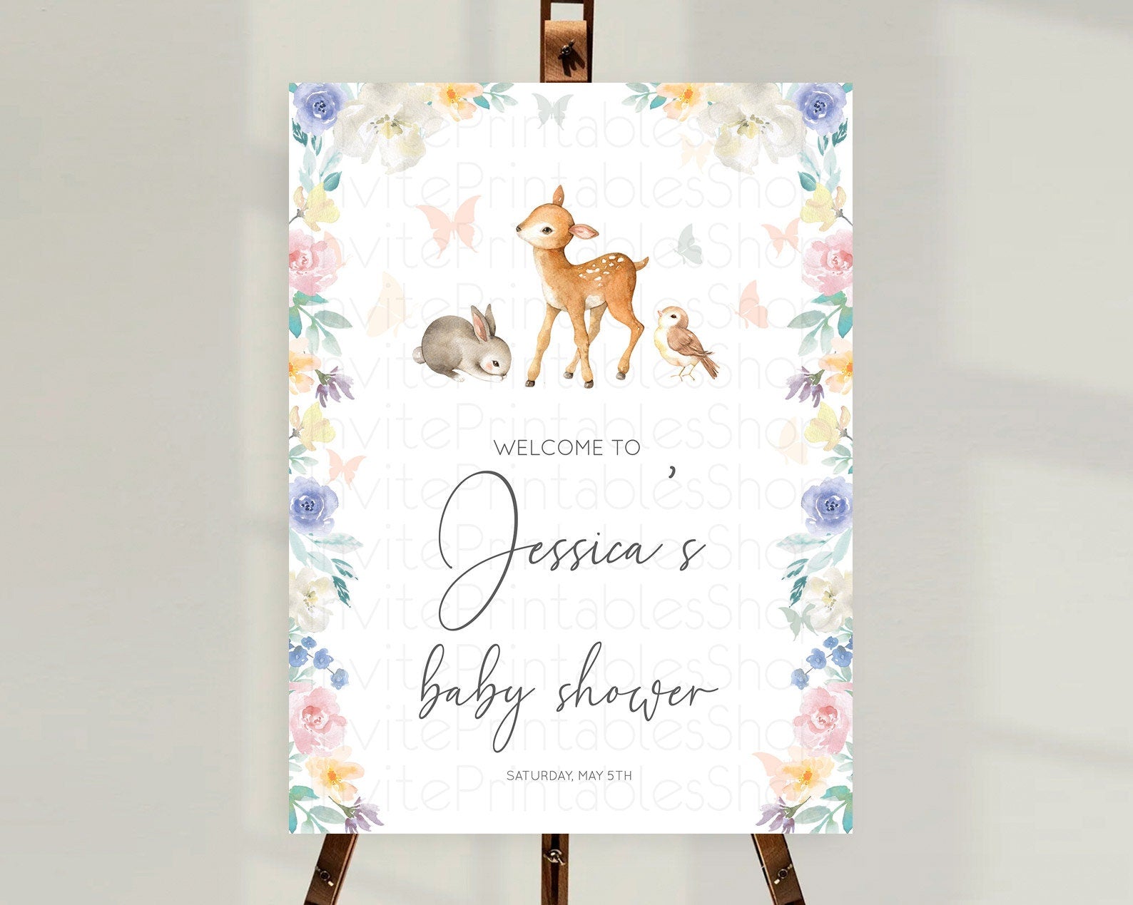 Fawn Baby Shower Welcome Sign Deer Welcome Board Floral Deer Welcome Poster Enchanted Forest Butterfly Pastel Floral Welcome Sign D10930