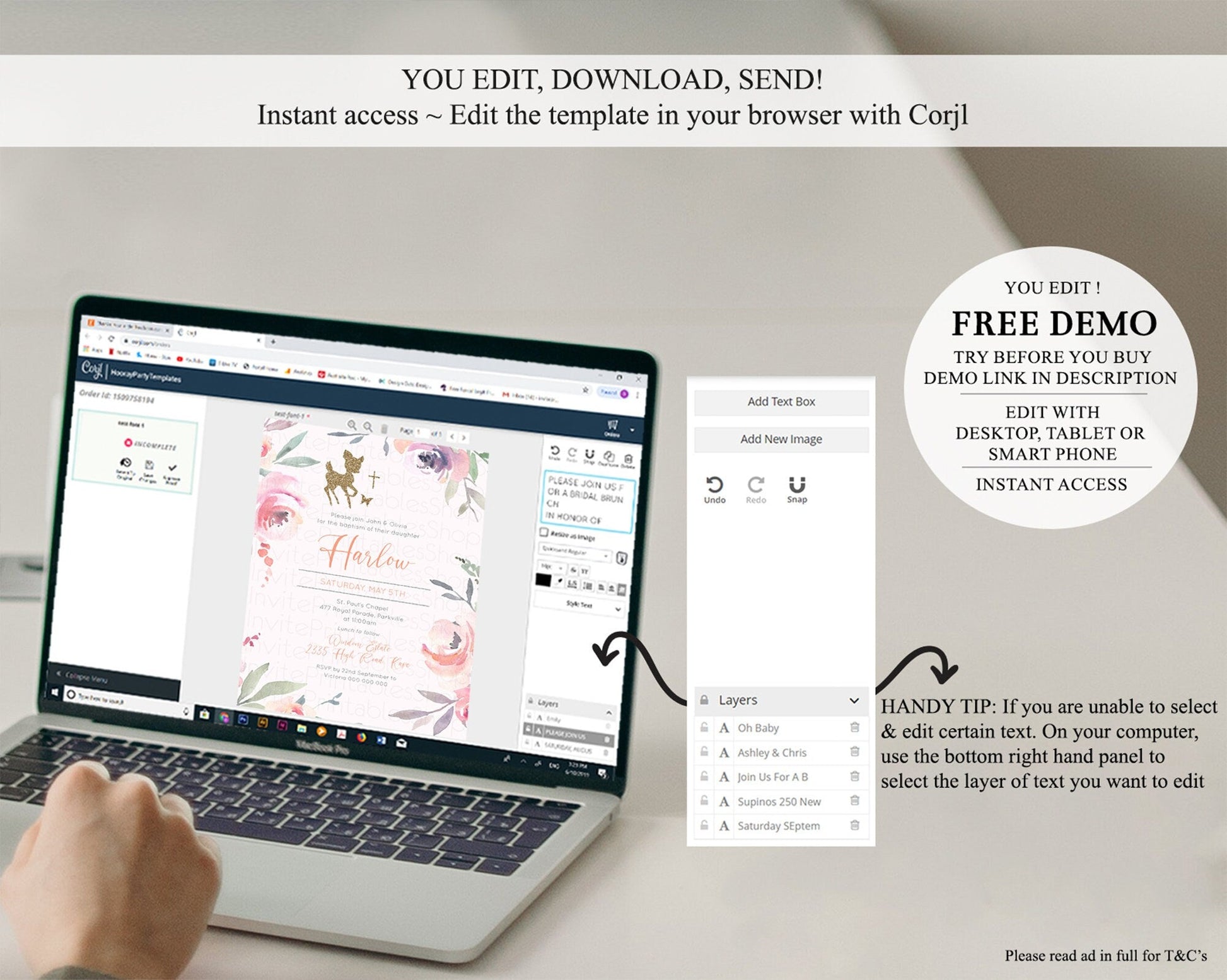 • After purchase, Corjl emails your editing link. Allow up to 15 minutes for delivery.