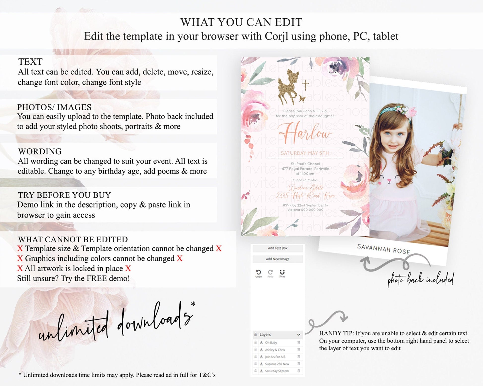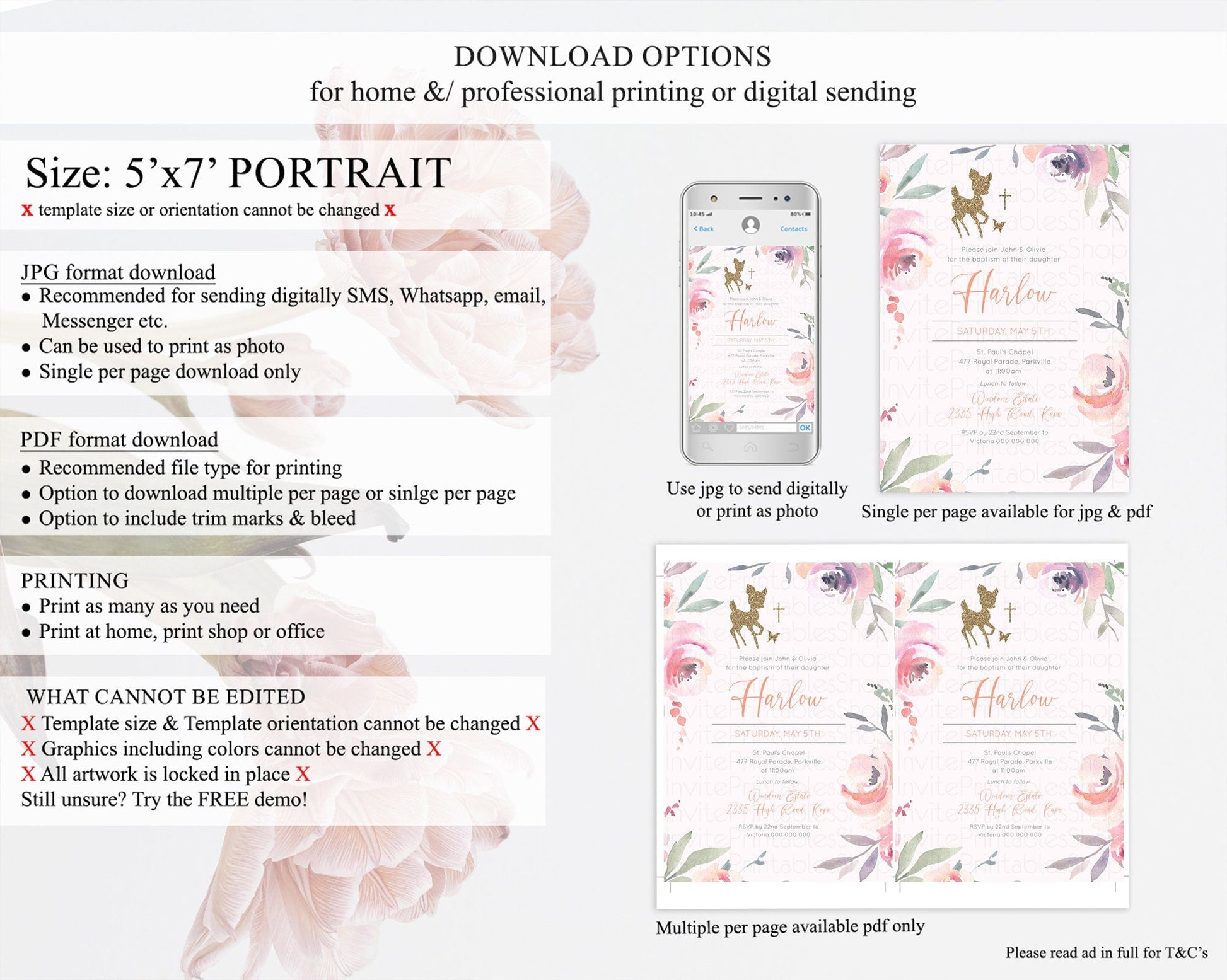 • Template size & orientation cannot be changed. Please use the demo link to confirm this product suits your needs.
