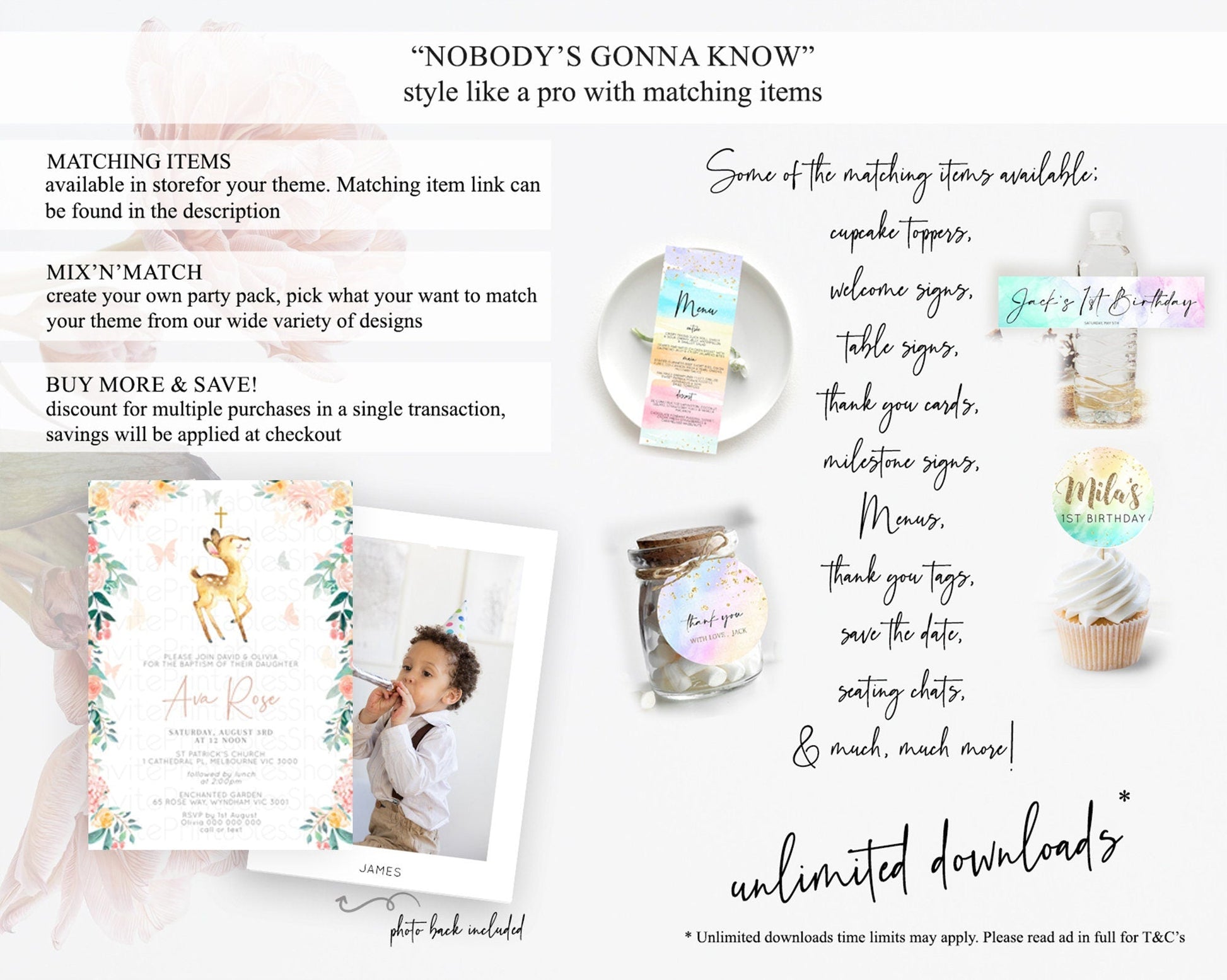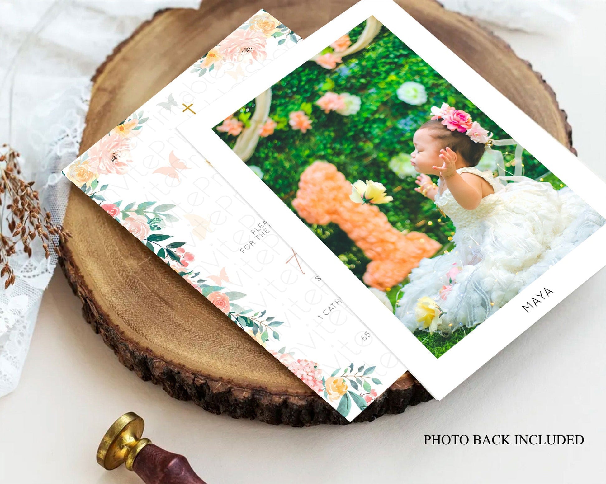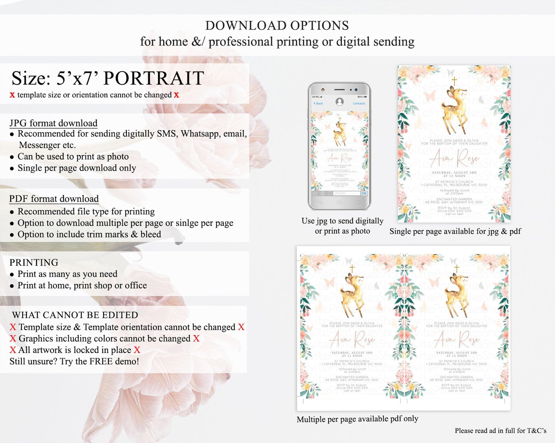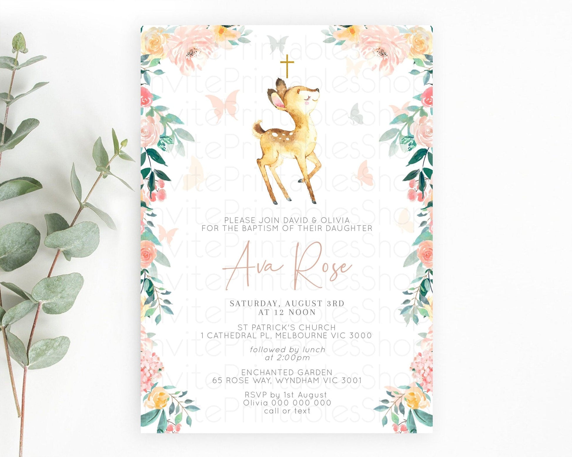 Fawn Baptism Invitation Deer Baptism 1st Birthday Invitation Enchanted Forest Christening Invitation Pastel Garden Butterfly Floral D10753