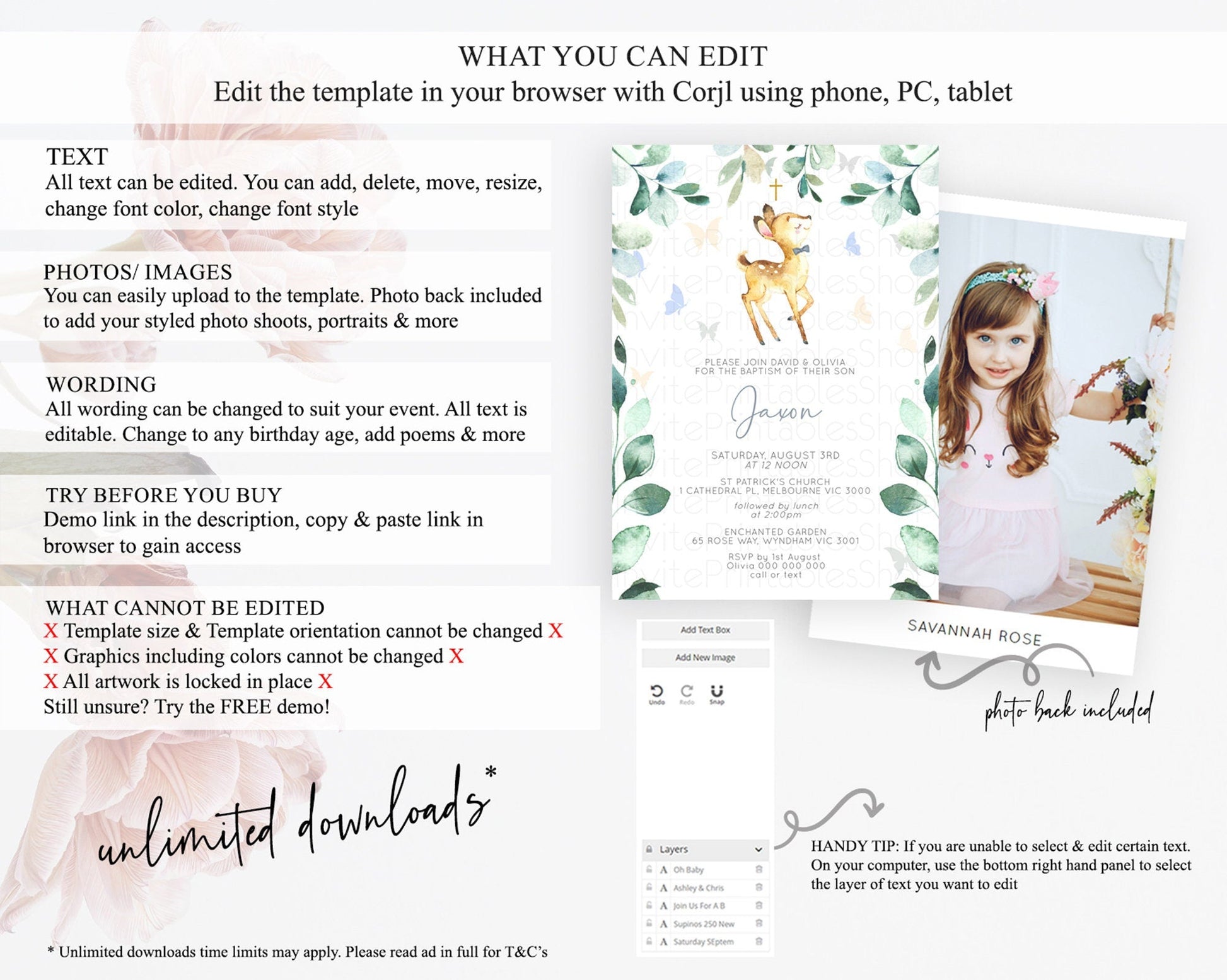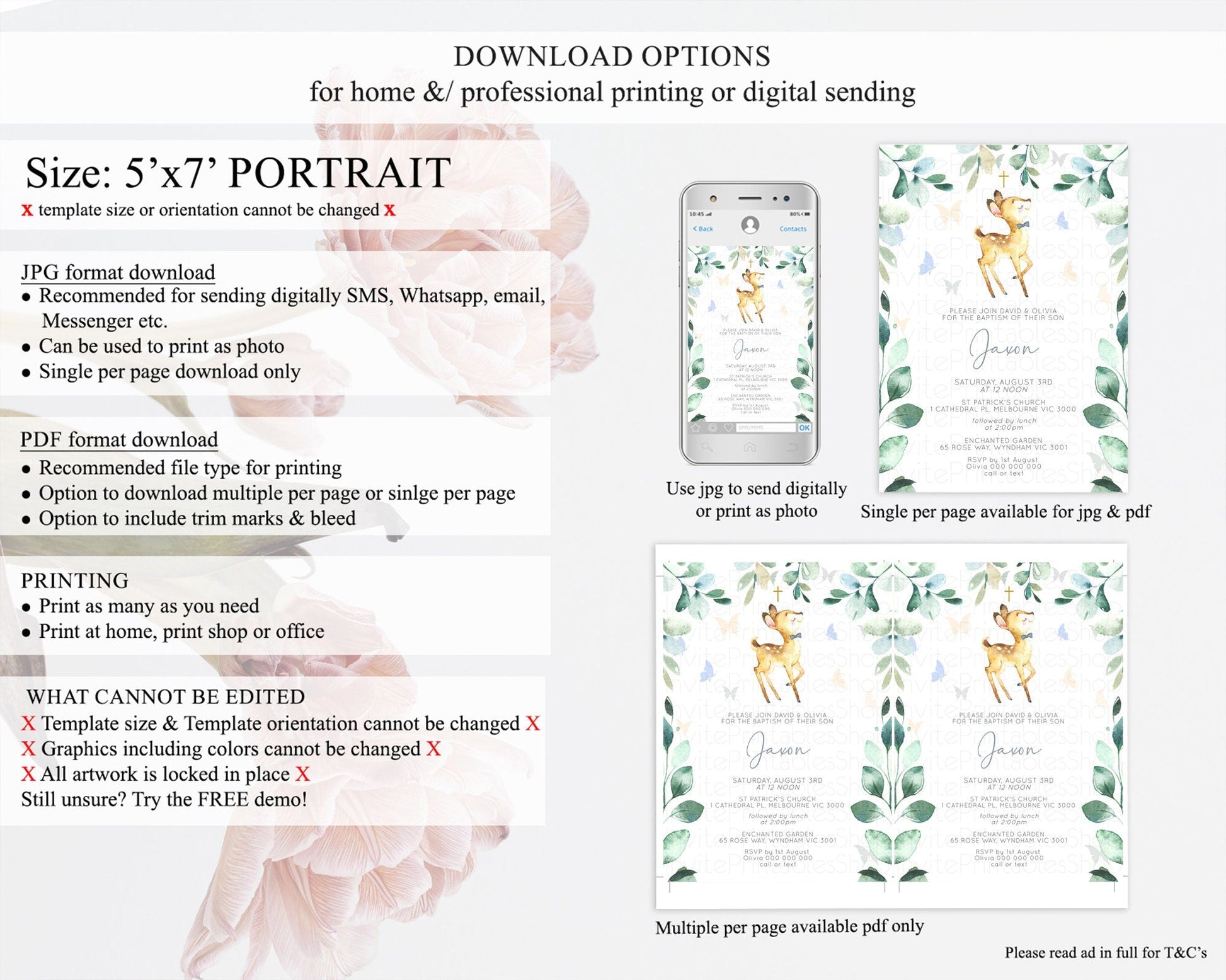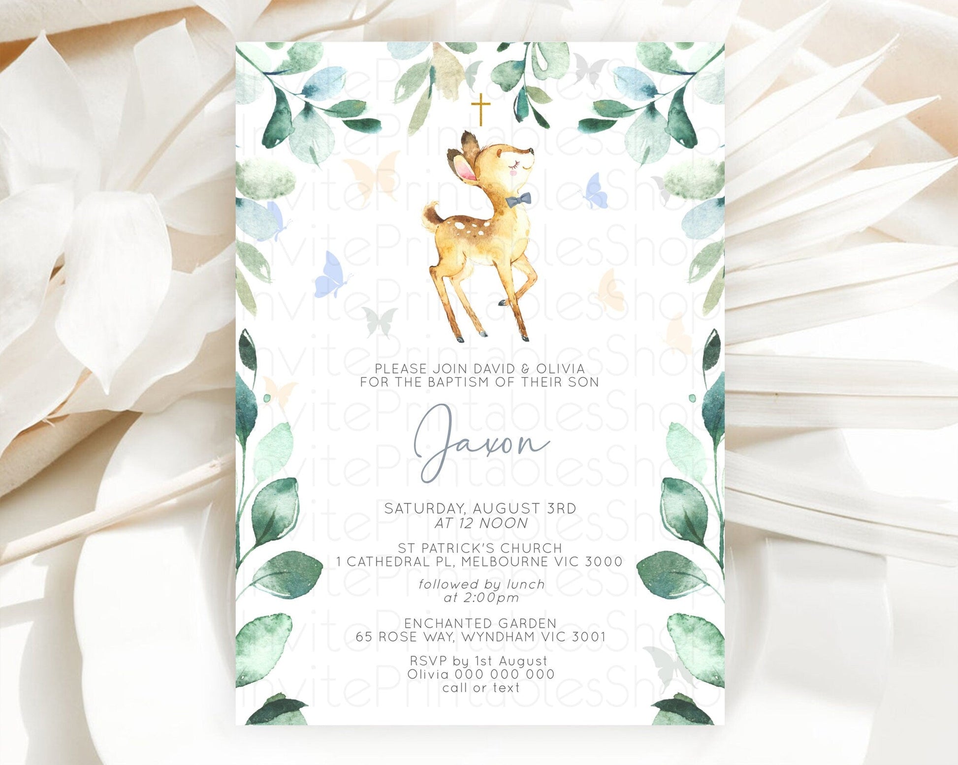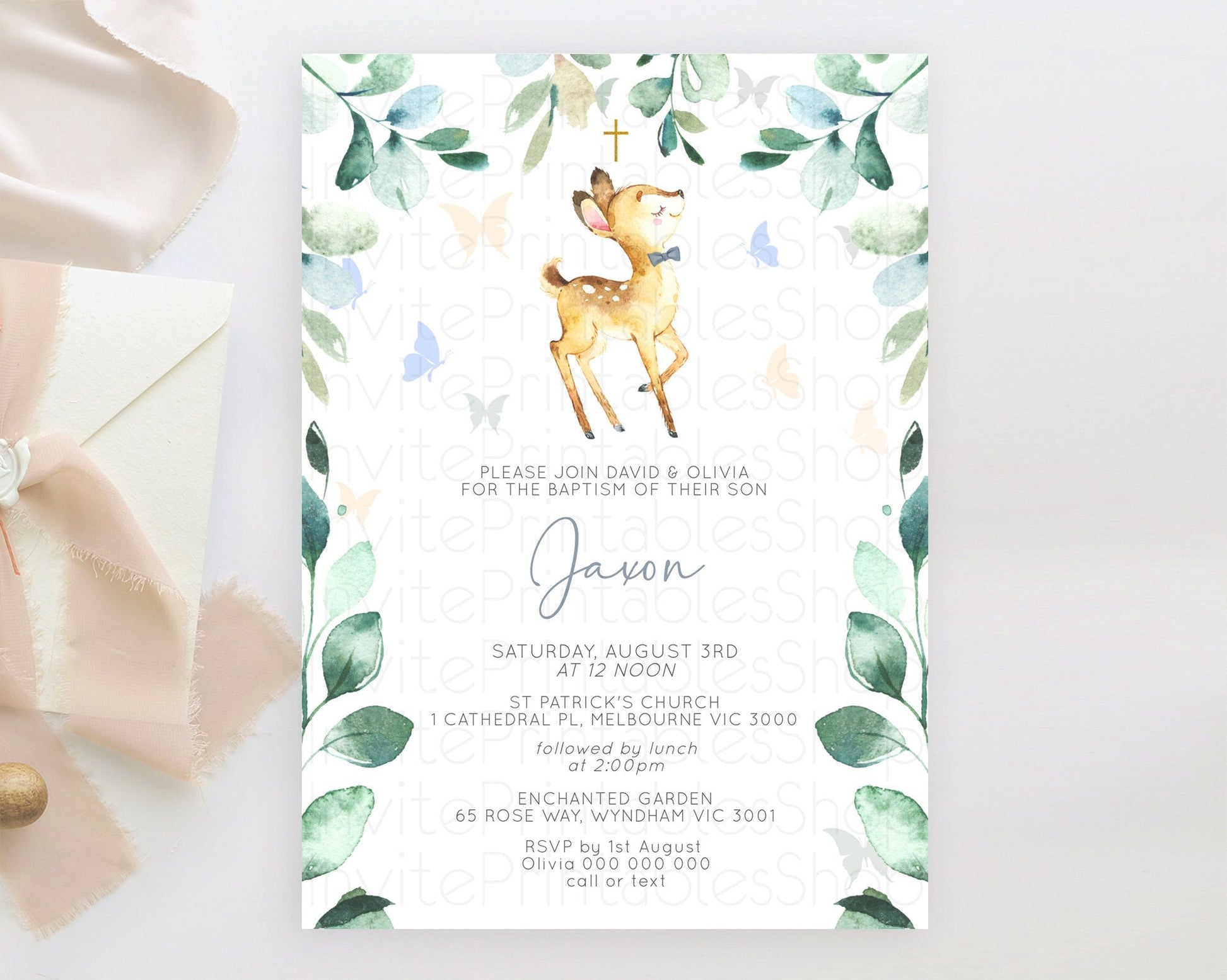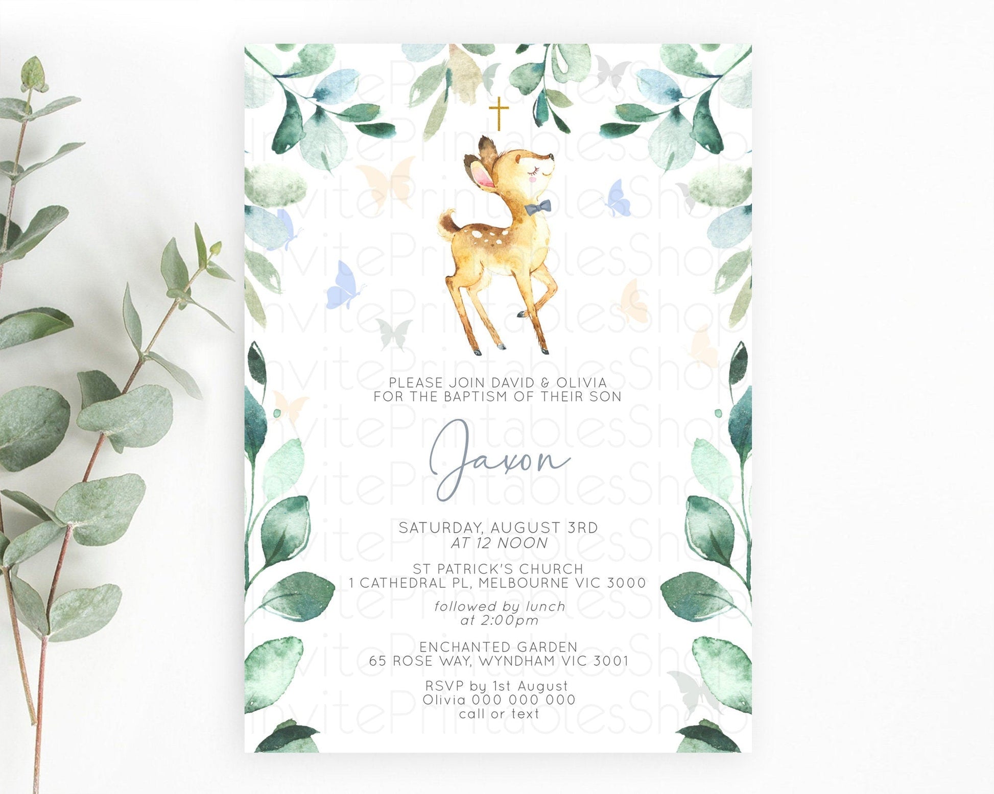 Fawn Baptism Invitation Deer Baptism 1st Birthday Invitation Enchanted Forest Christening Invitation Pastel Garden Butterfly Floral D10767