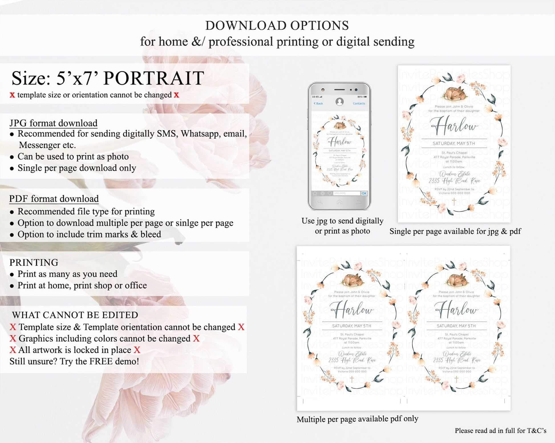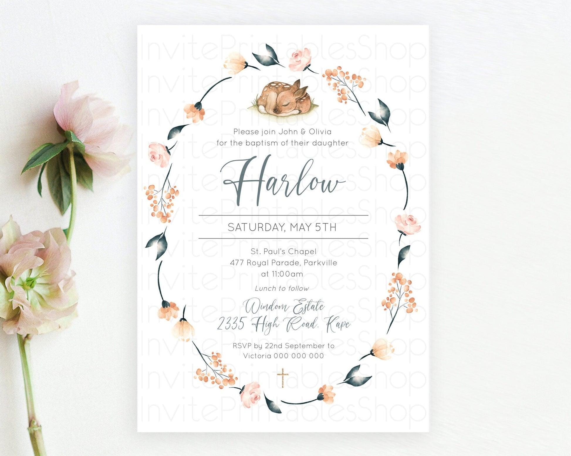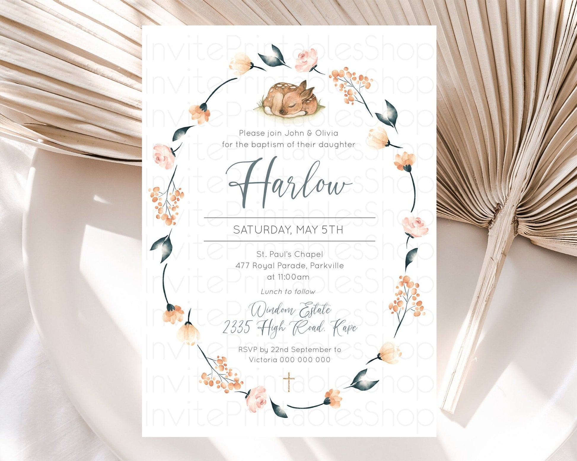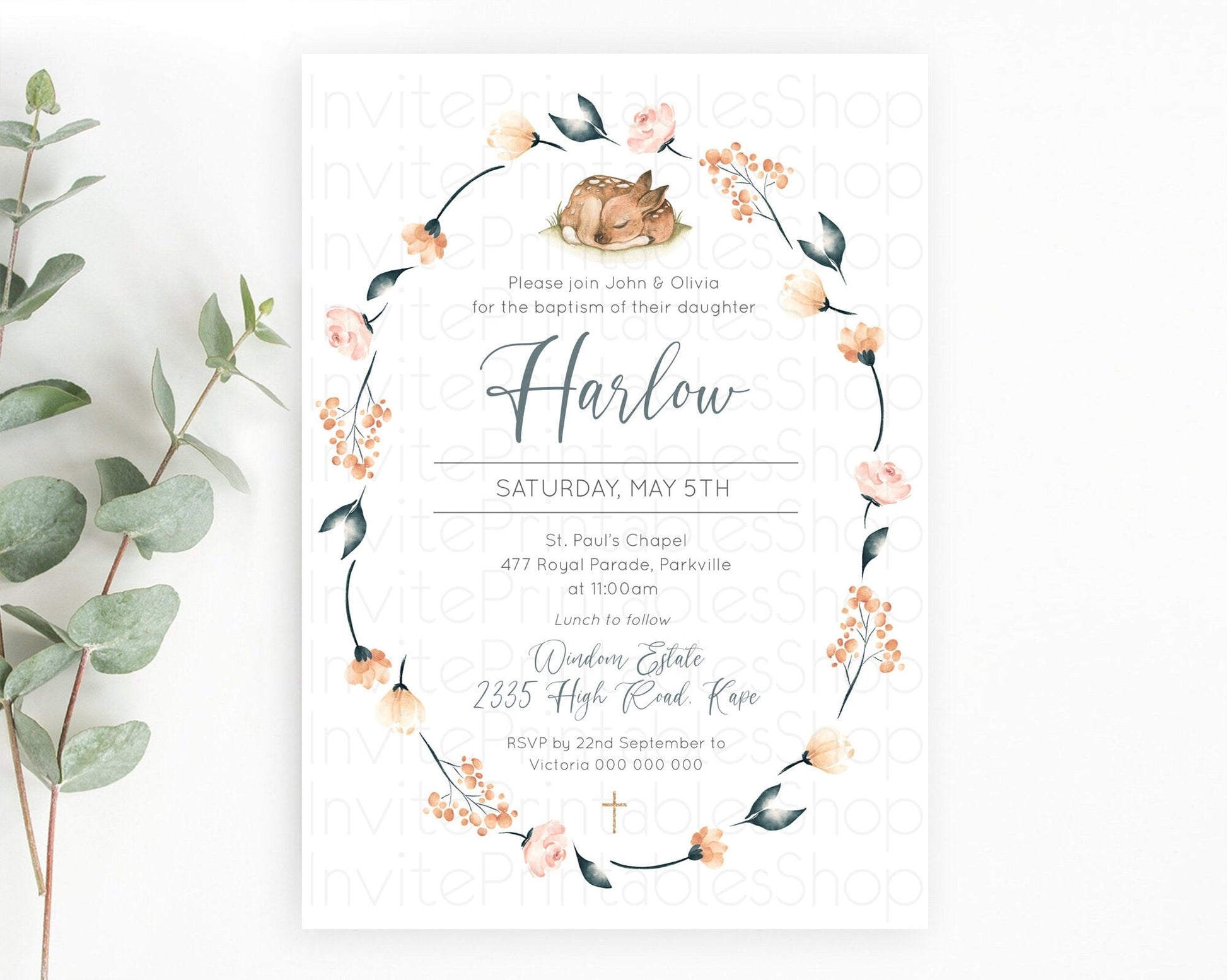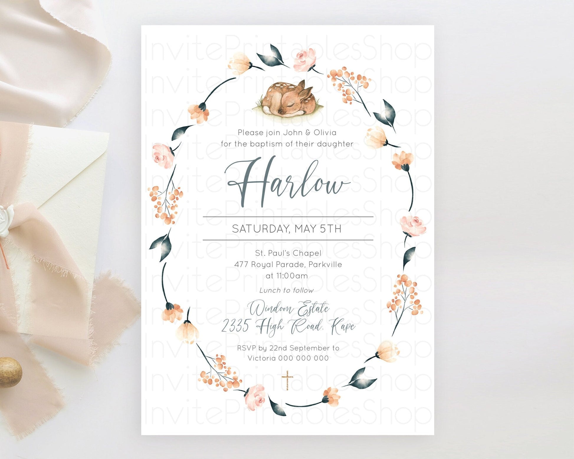Fawn Baptism Invitation Deer Baptism 1st Birthday Invitation Enchanted Forest Christening Invitation Pastel Garden Butterfly Floral D10790