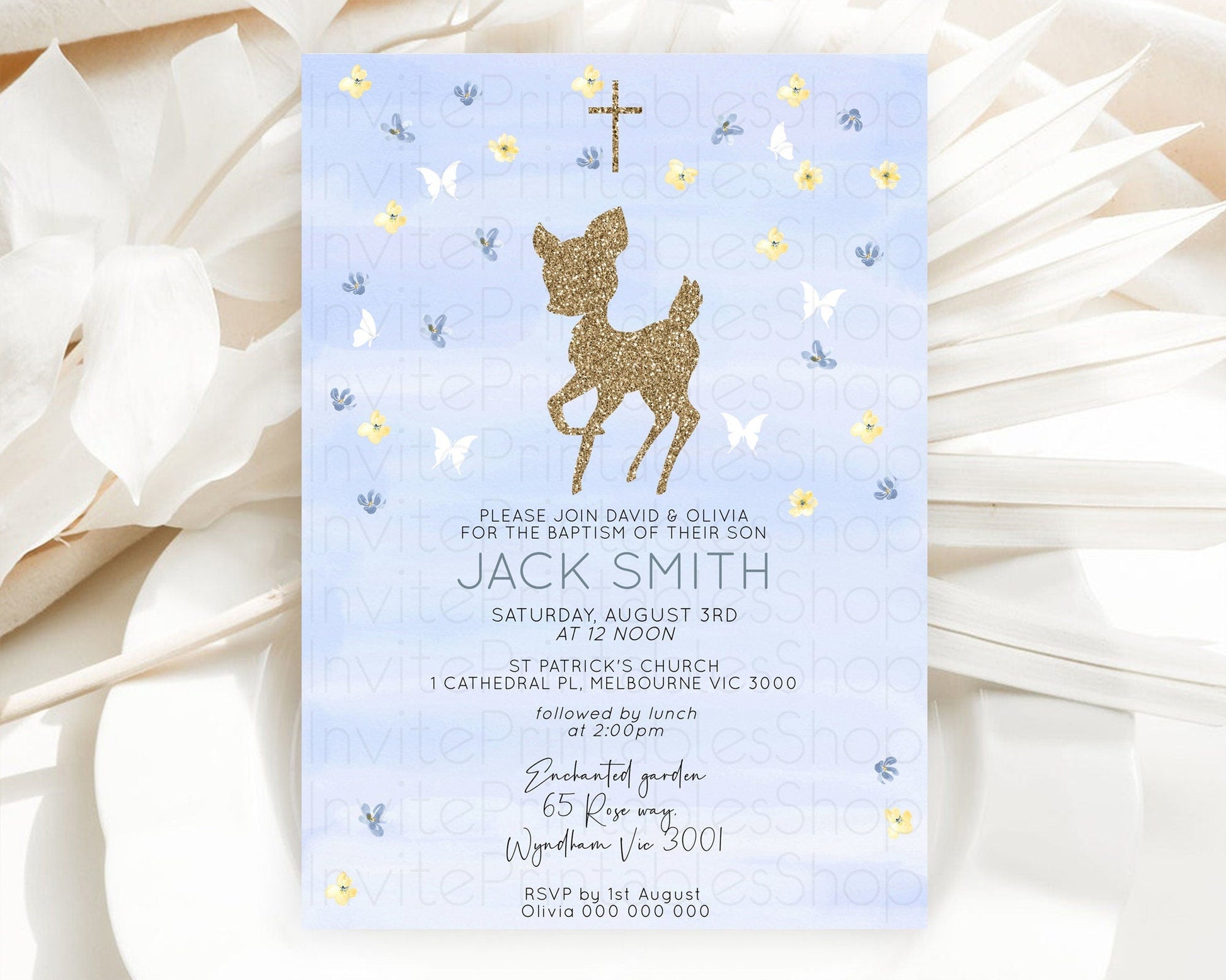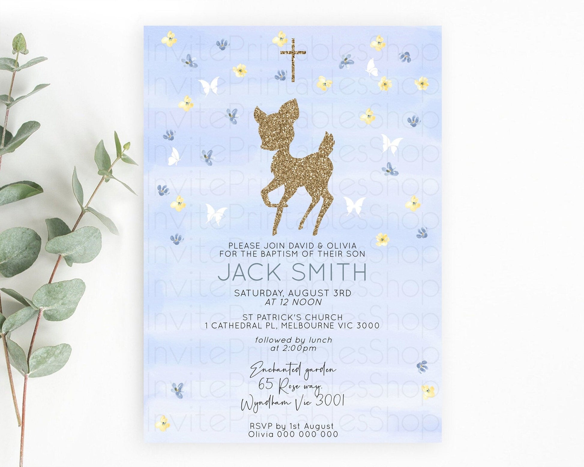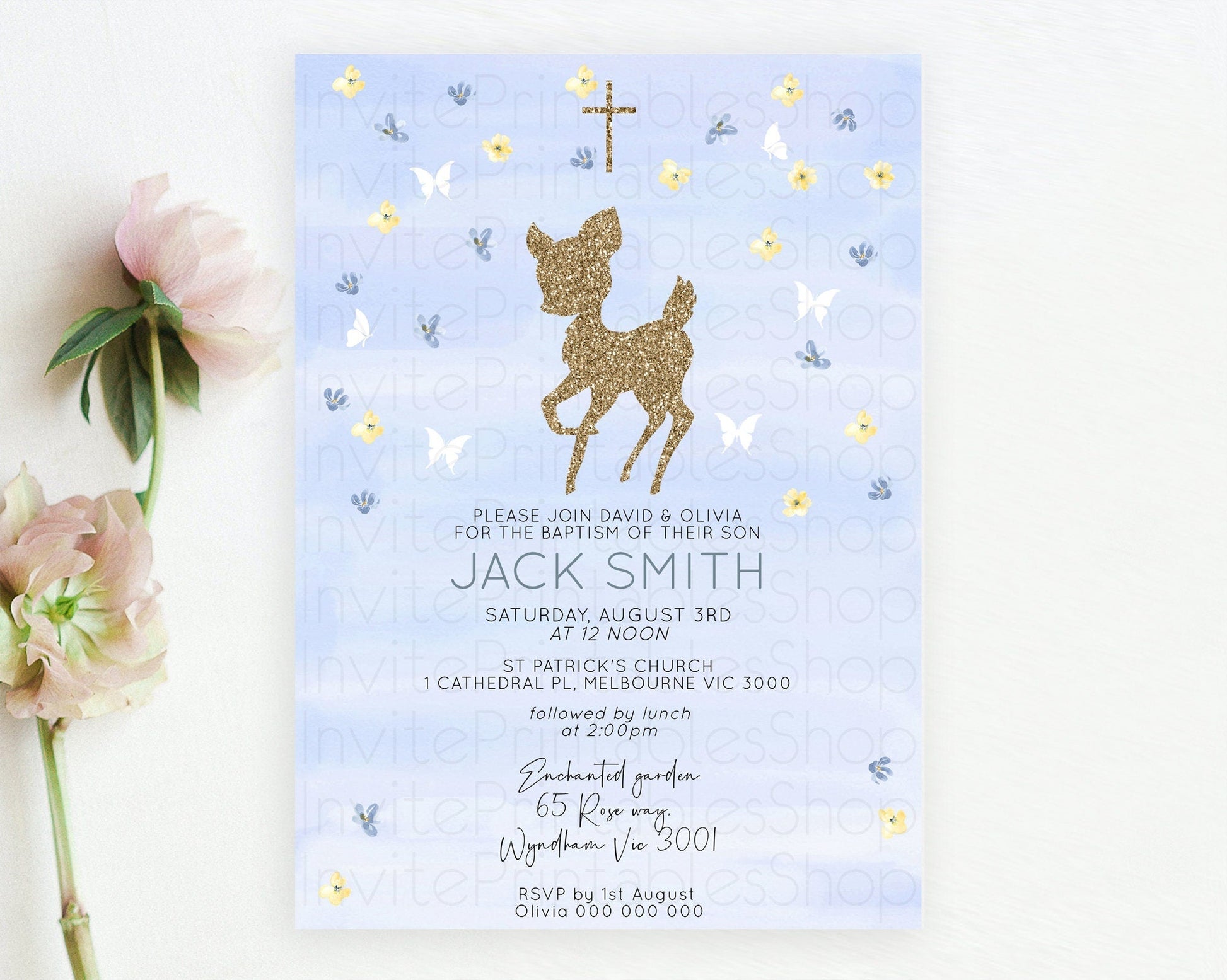 Fawn Baptism Invitation Deer Baptism 1st Birthday Invitation Enchanted Forest Christening Invitation Pastel Garden Butterfly Floral D10863